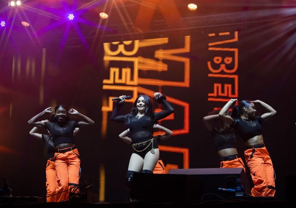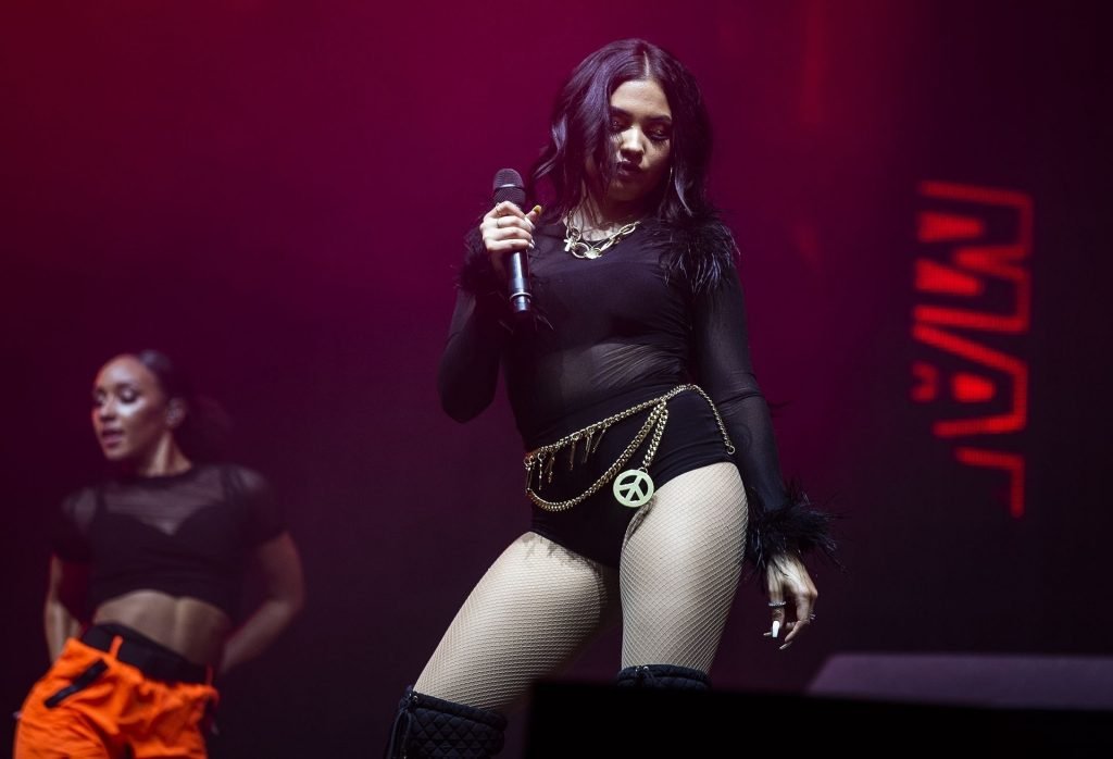 La cantante y compositora inglesa Mabel Alabama Pearl McVey fue vista mientras actuaba en vivo en el Reading Festival 2019 en Reading, 24/08/2019.