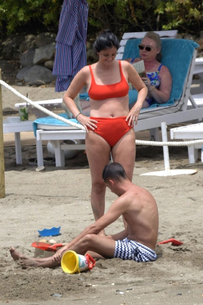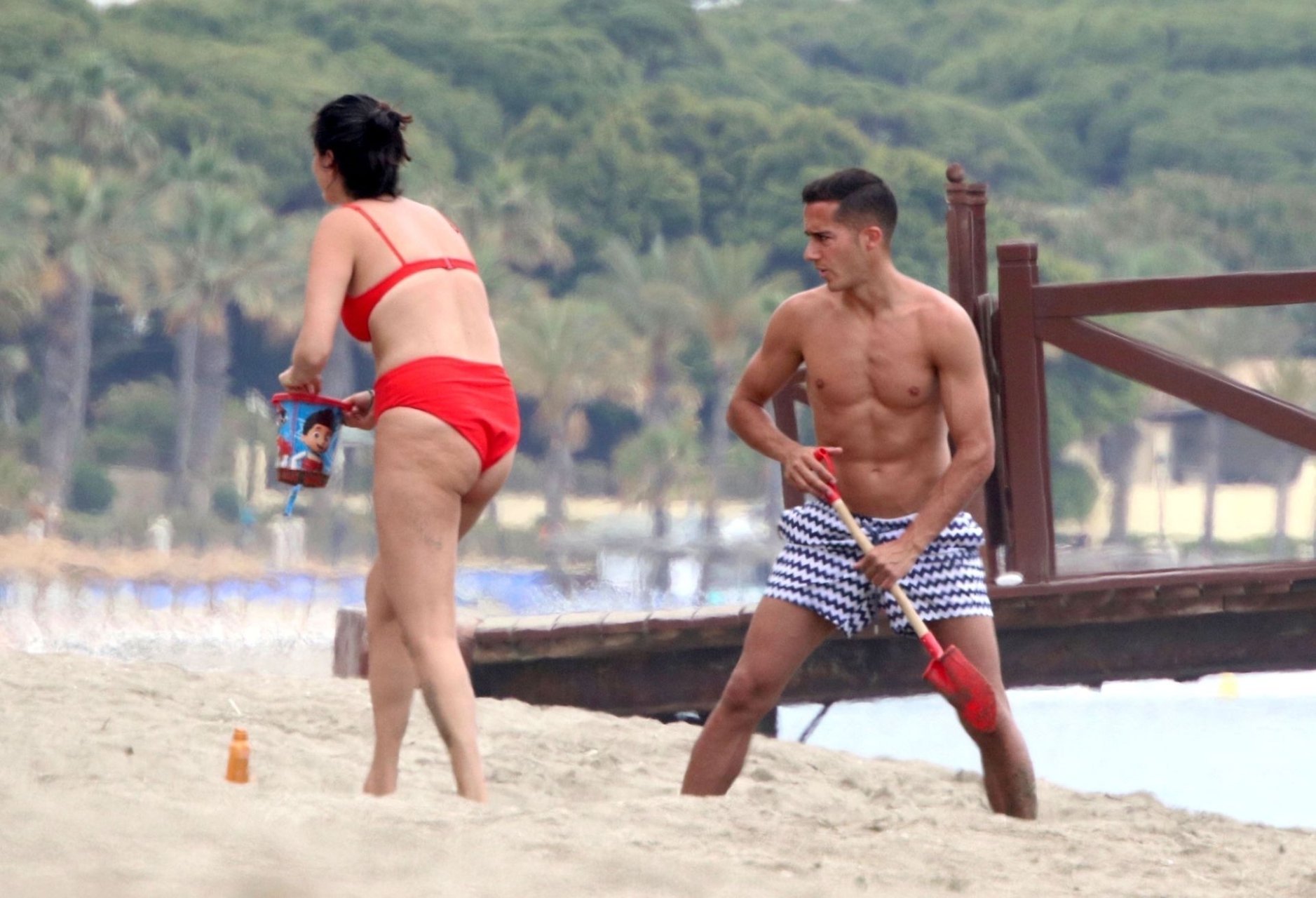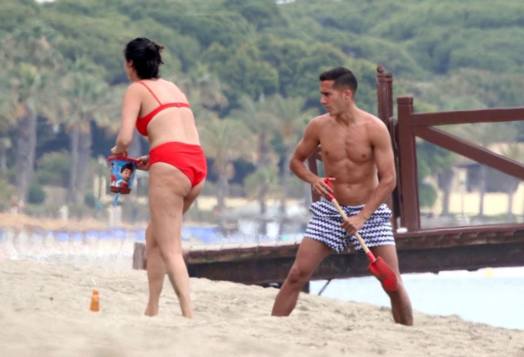 El futbolista internacional español Lucas Vázquez, que juega para el gigante español Real Madrid, es visto durante sus vacaciones de temporada con su esposa Macarena Rodriguez y su familia en las playas de Marbella, 14/06/2019.