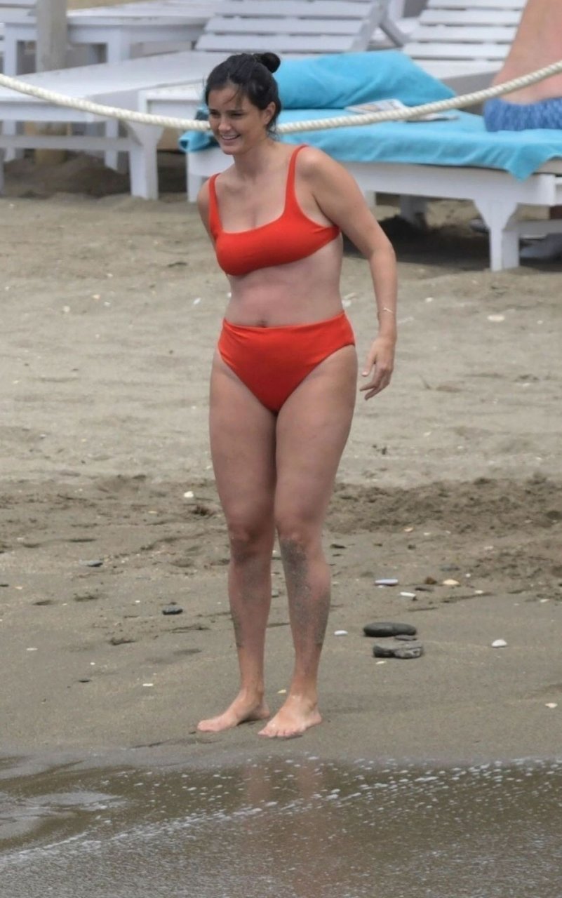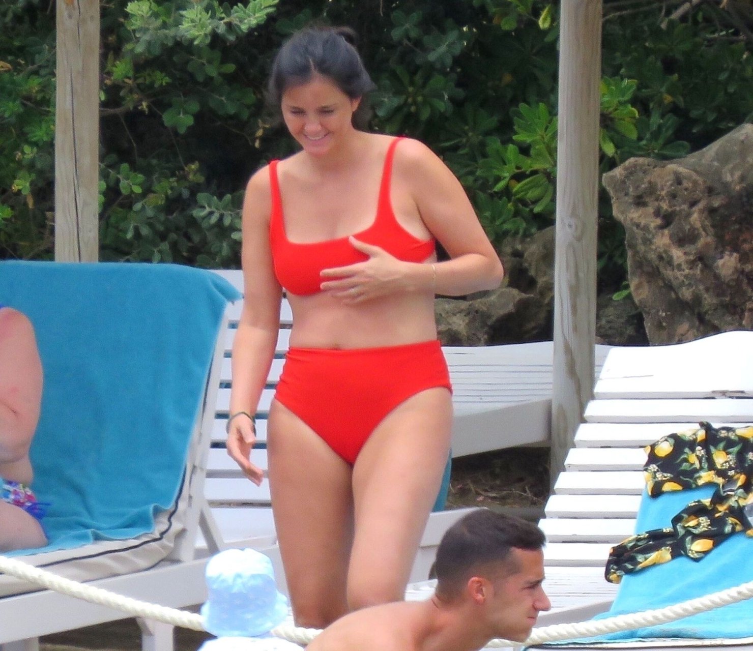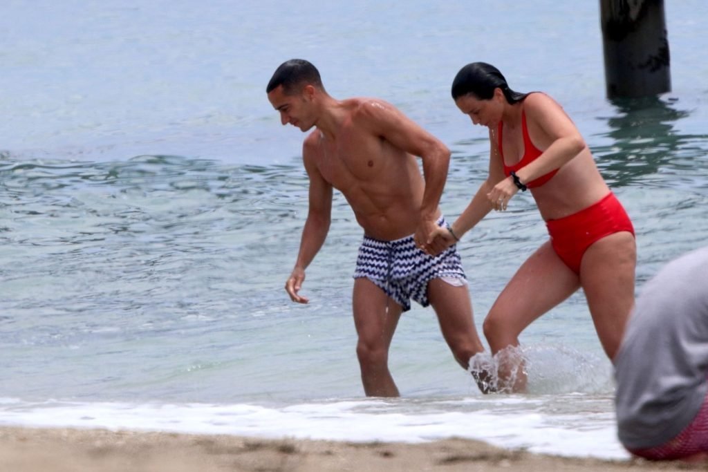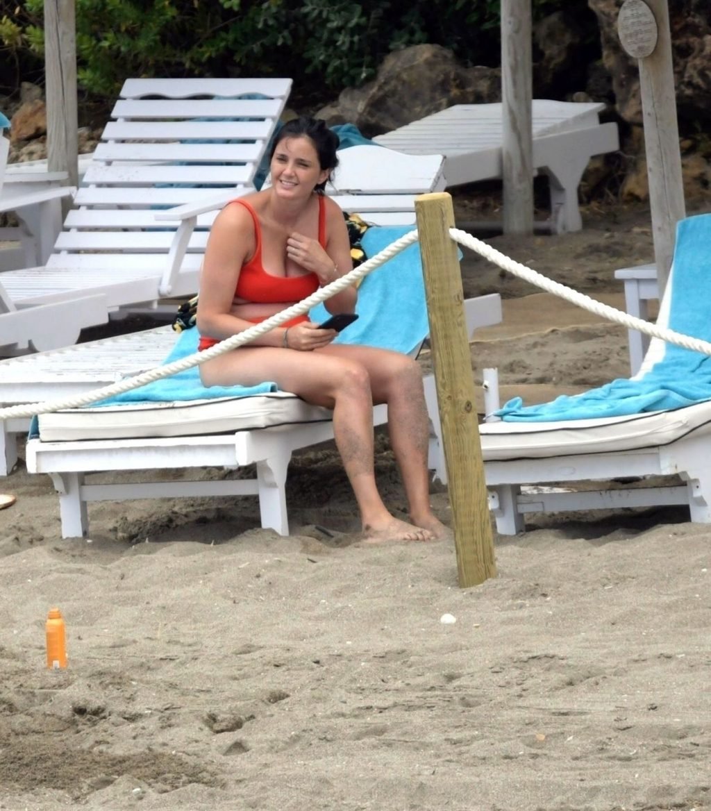 El futbolista internacional español Lucas Vázquez, que juega para el gigante español Real Madrid, es visto durante sus vacaciones de temporada con su esposa Macarena Rodriguez y su familia en las playas de Marbella, 14/06/2019.