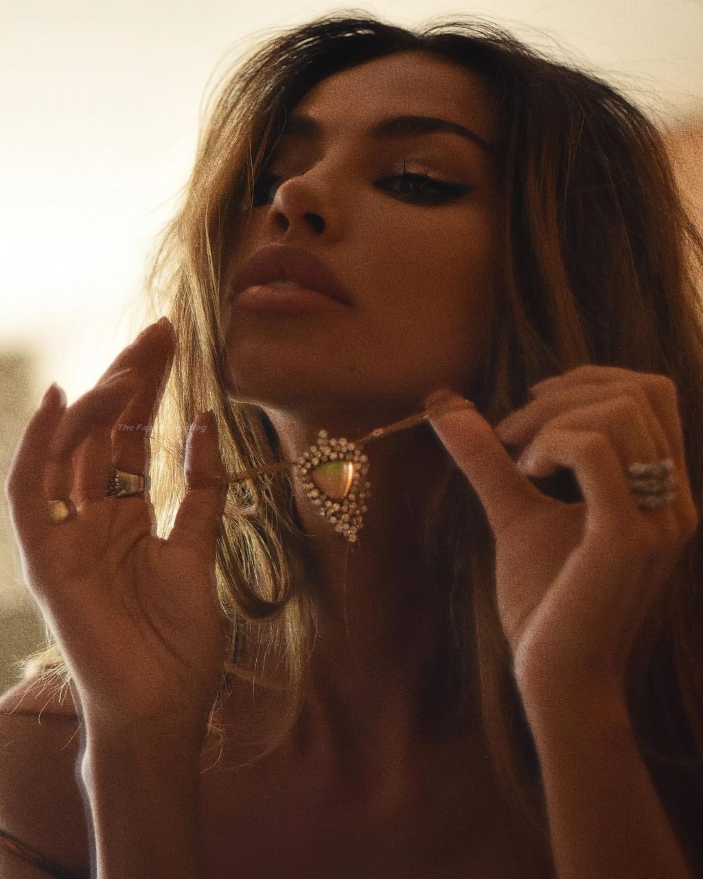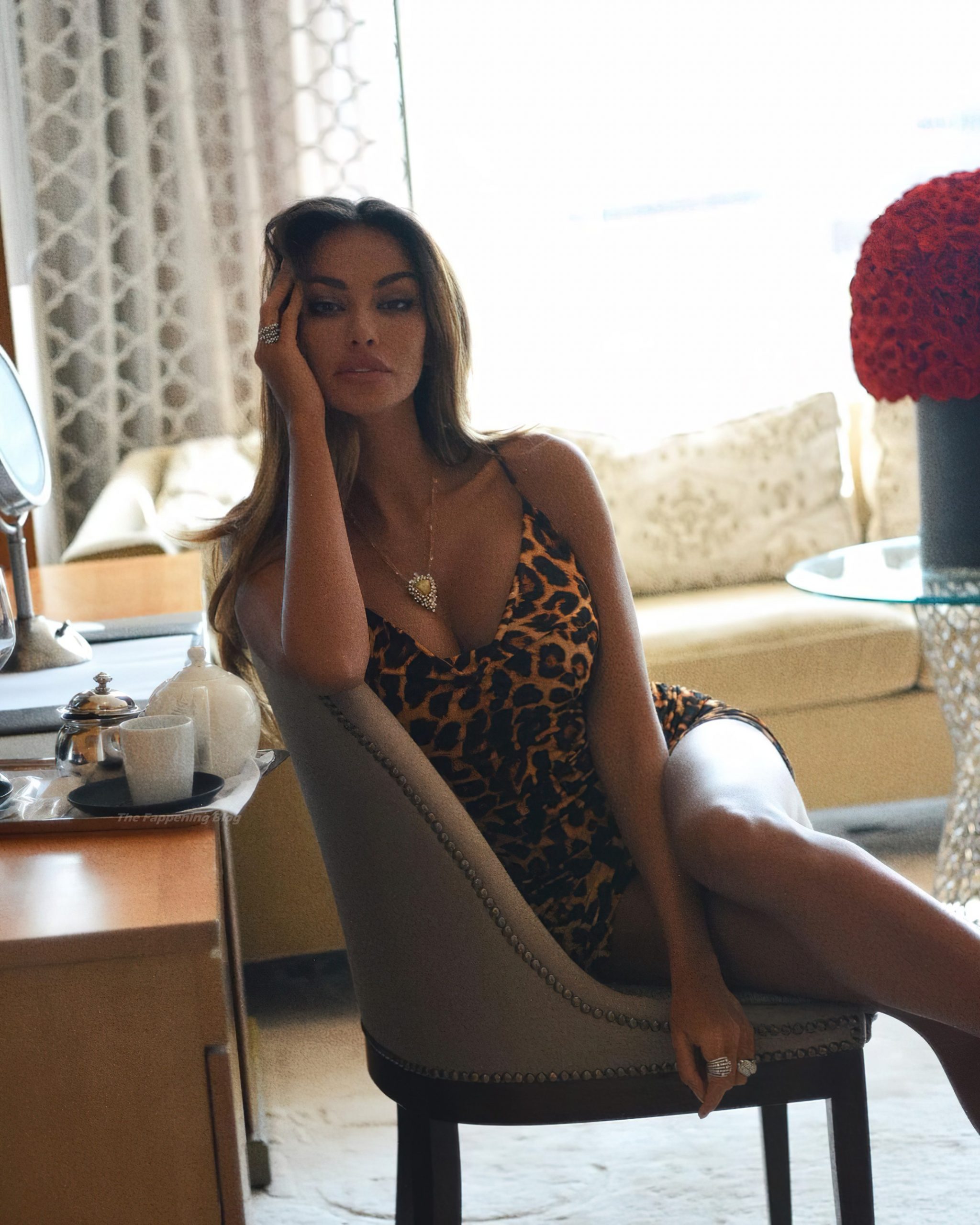 Actriz y modelo Madalina Diana Ghenea muestra su cuerpo sexy y un bonito escote mientras posa con lencería negra y un vestido de estampado de leopardo en una nueva sesión de fotos de Melissa Cartagena (2021).