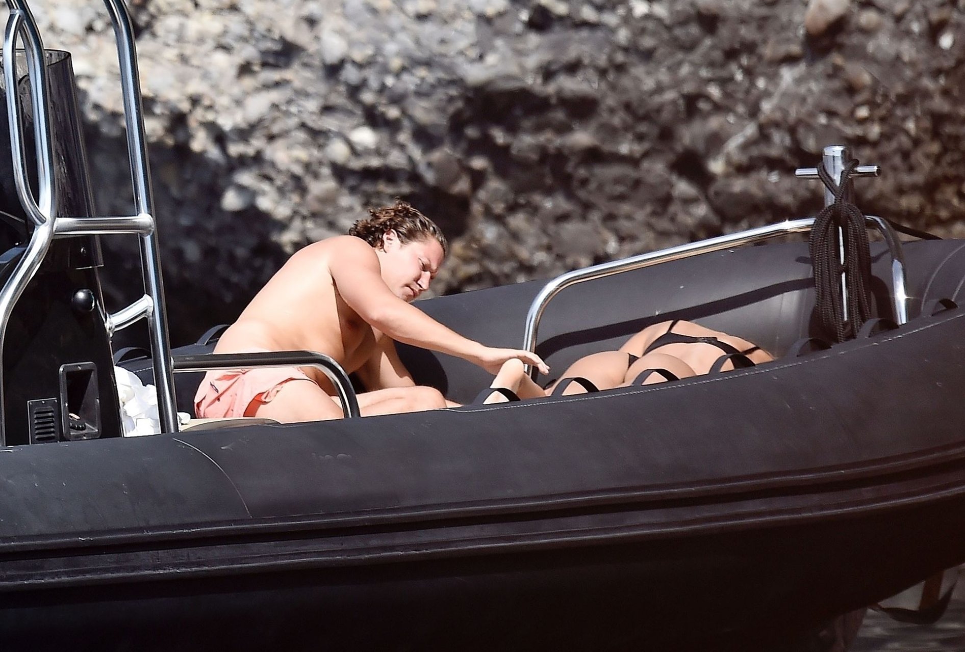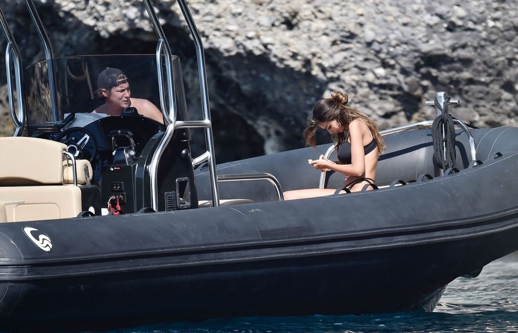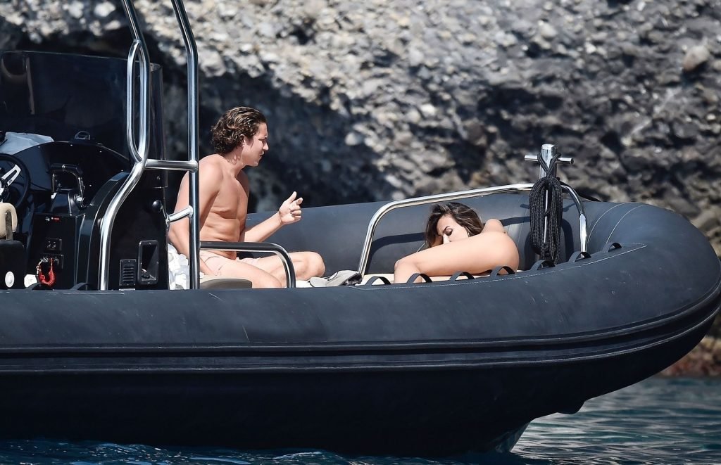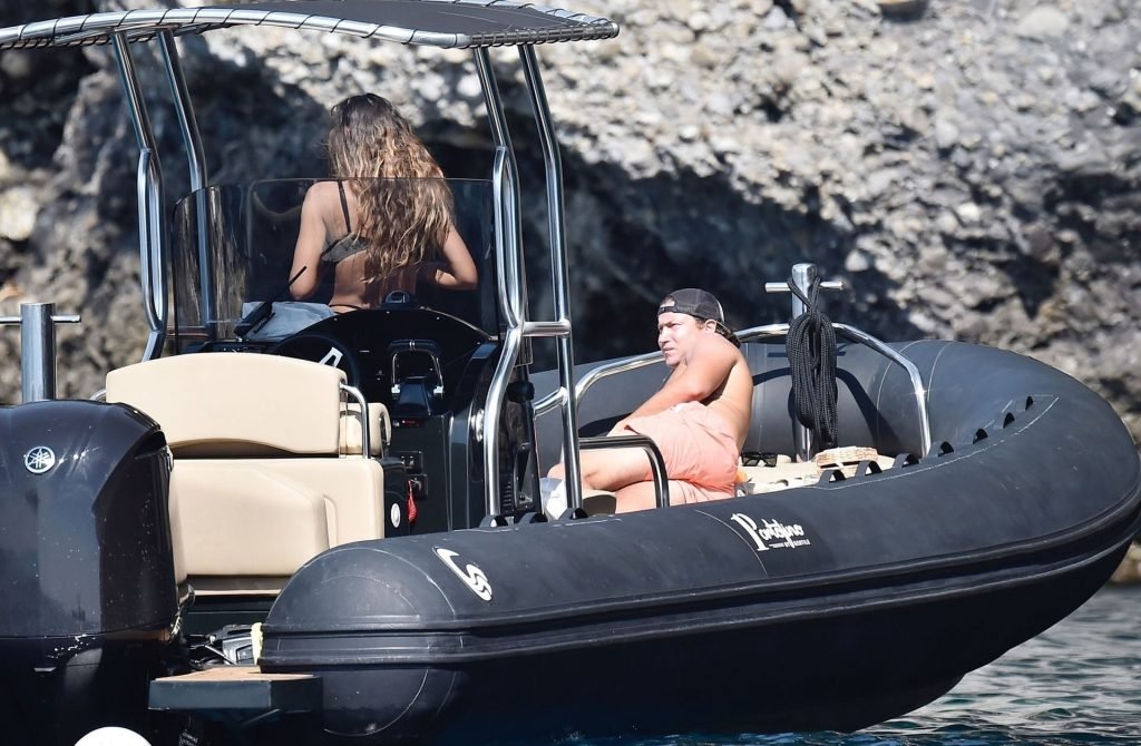 La pareja disfruta del sol italiano abrasador tomando el sol en su barco en el mar. La sexy Madalina mostró su cuerpo bien tonificado en la playa con su pequeño y escaso bikini negro, mientras que Vito estuvo sin camiseta, ambos bronceándose.