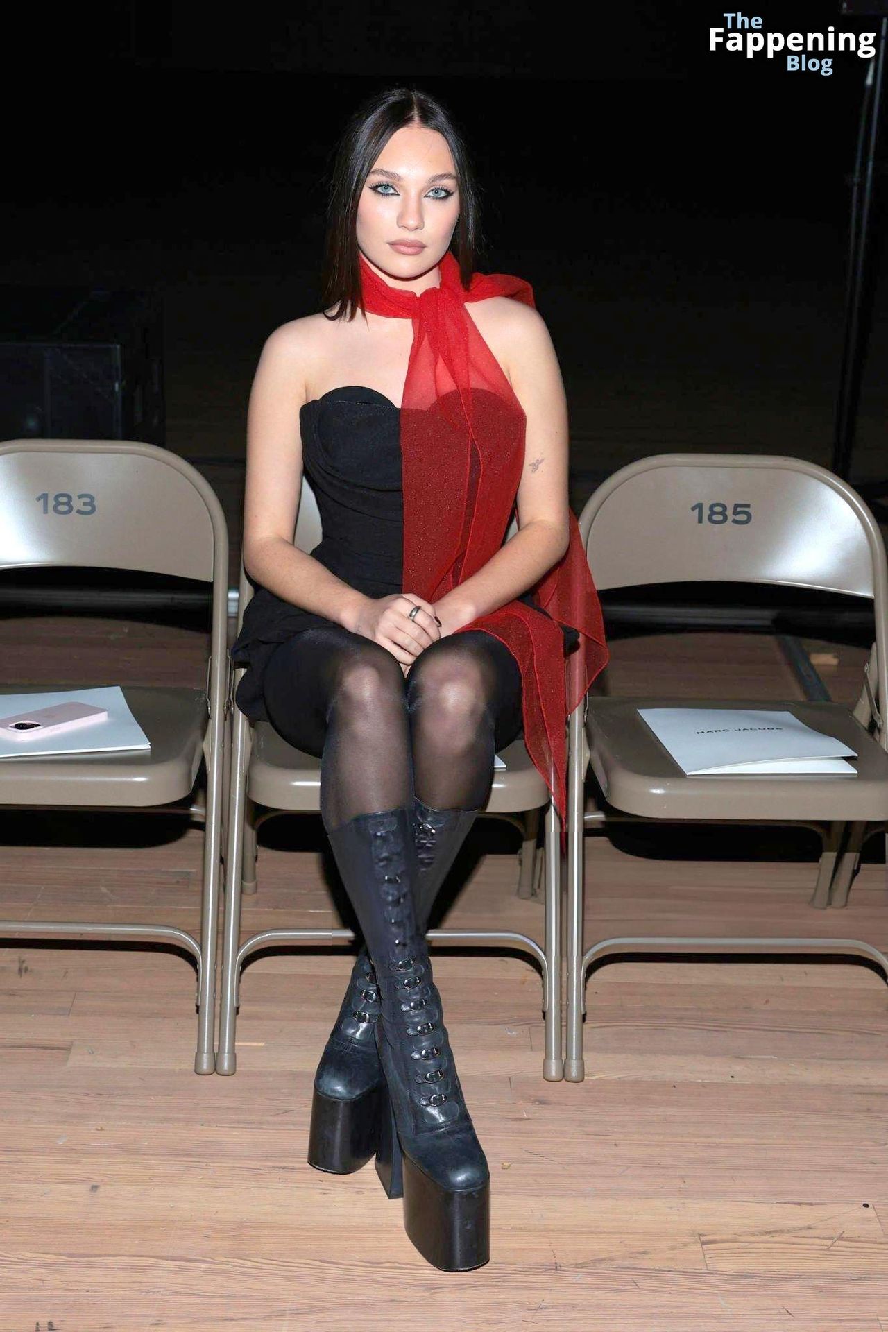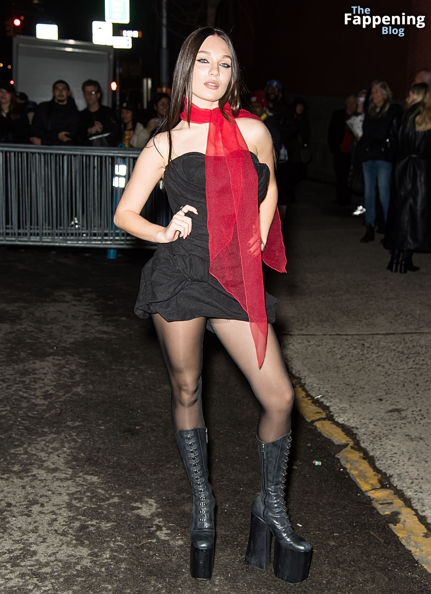 ¡Disfruta el estilo sexy y de piernas largas de Maddie Ziegler después del desfile de Marc Jacobs! Con un mini vestido ardiente, pantimedias negras y un toque de sensualidad, aquí lo tienes todo para admirar.