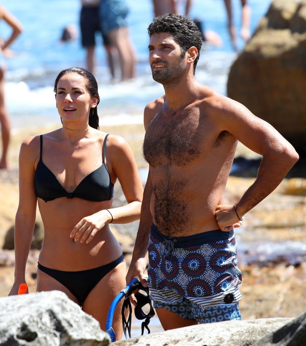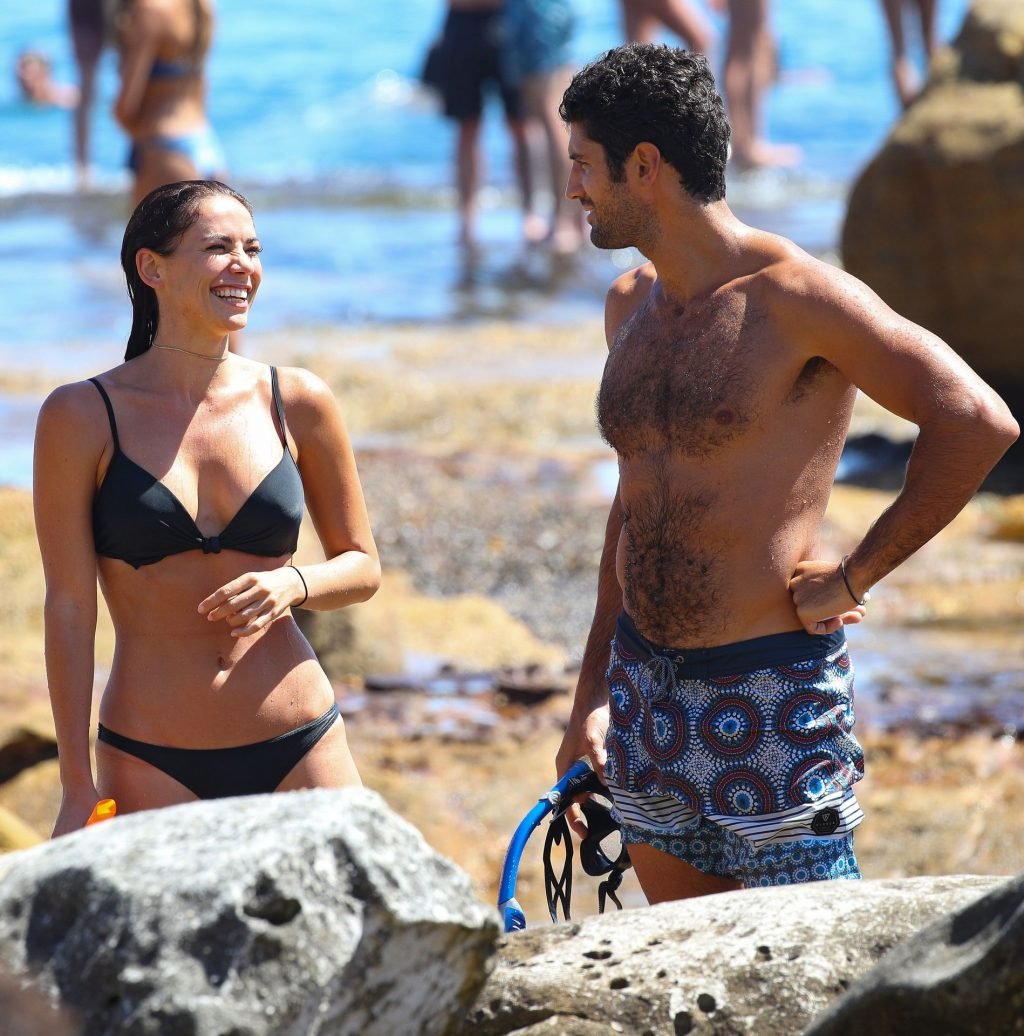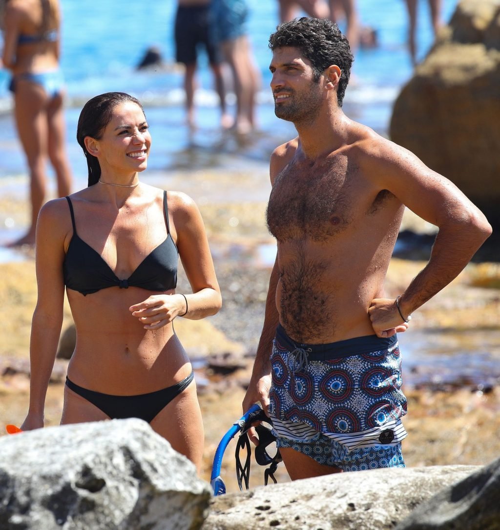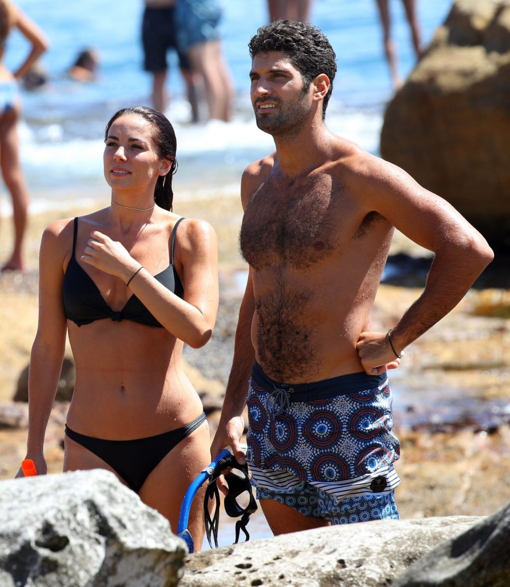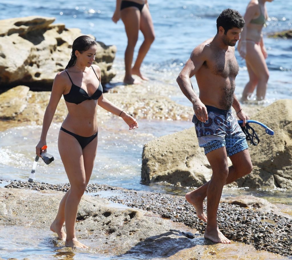 La modelo australiana Maddy King (30) fue vista con su nueva pareja disfrutando de una cita en la playa en Bondi, Sídney, 01/12/2019. La impresionante morena muestra su cuerpo sexy vistiendo un bikini negro.