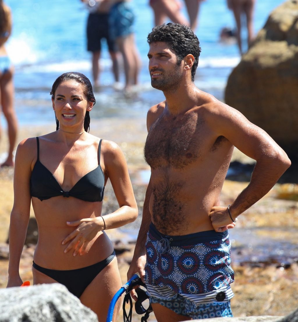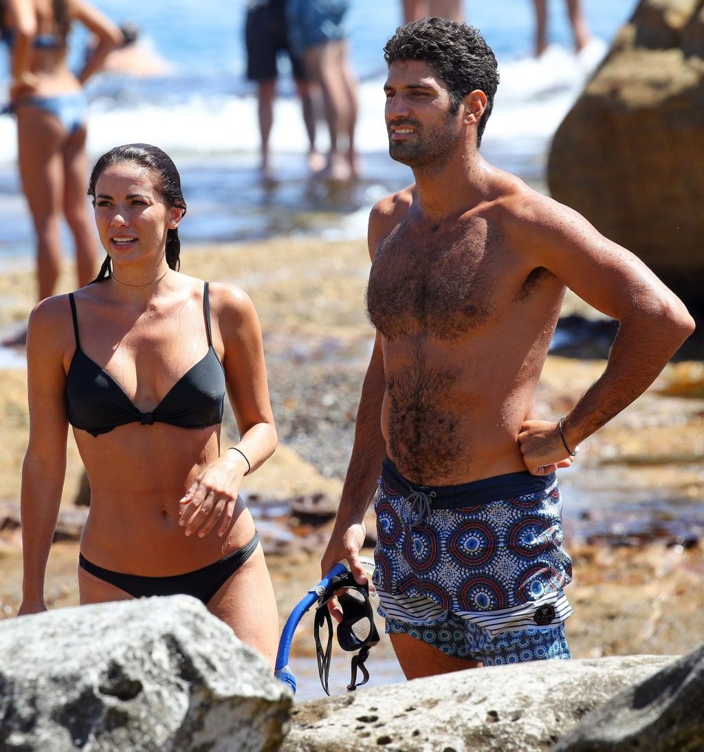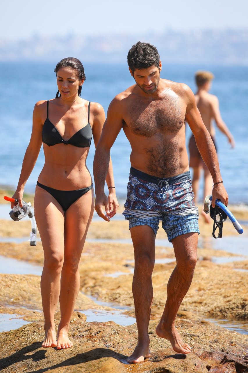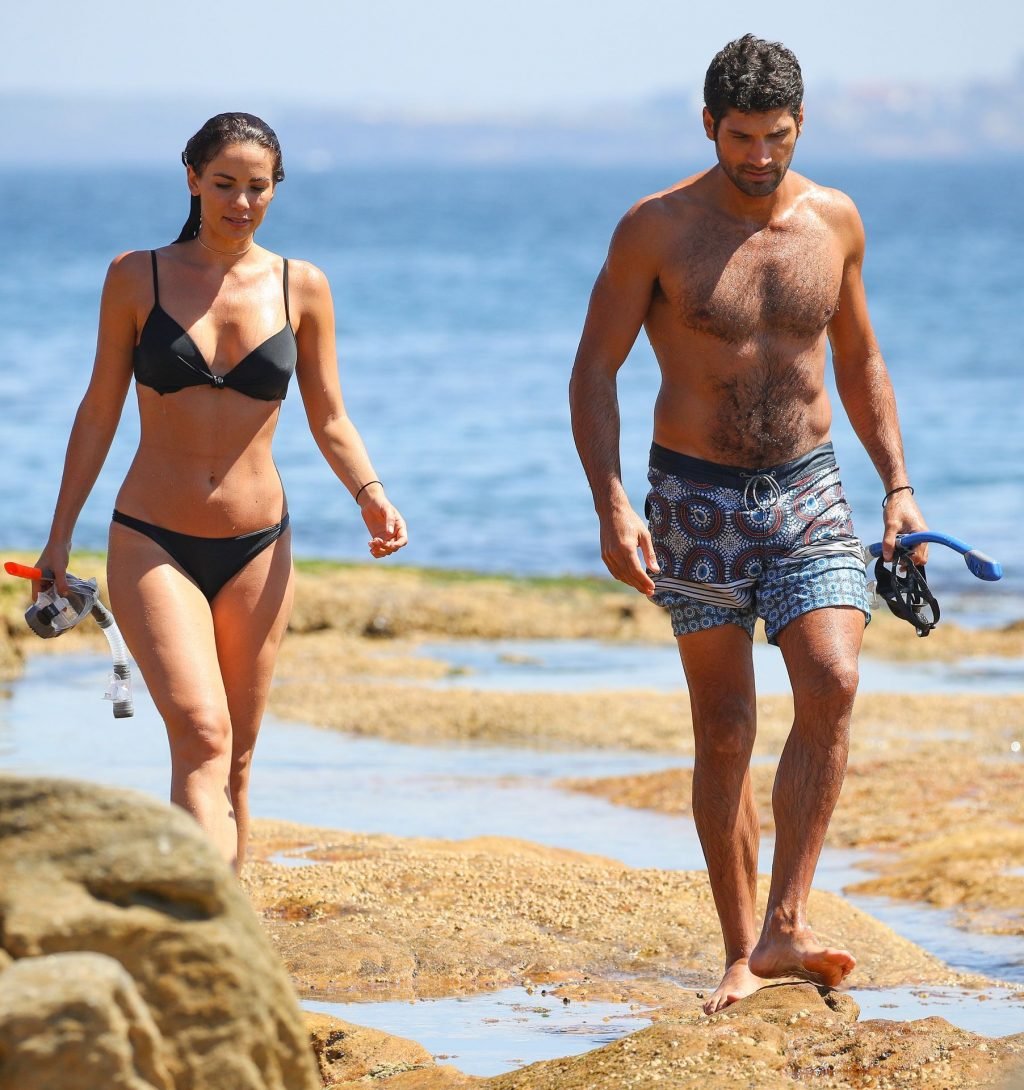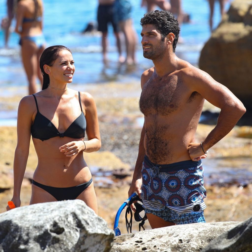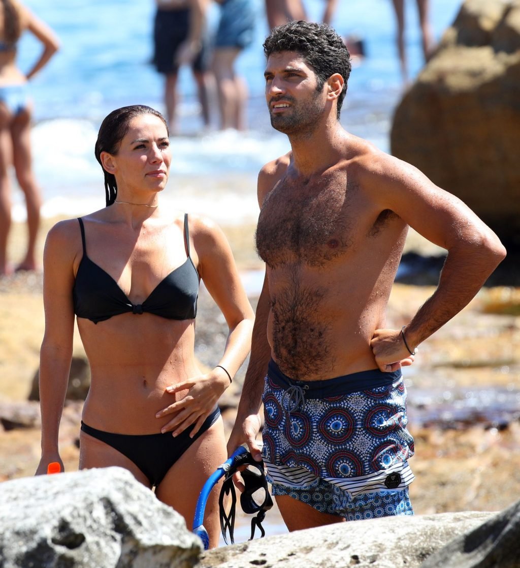La modelo australiana Maddy King (30) fue vista con su nueva pareja disfrutando de una cita en la playa en Bondi, Sídney, 01/12/2019. La impresionante morena muestra su cuerpo sexy vistiendo un bikini negro.