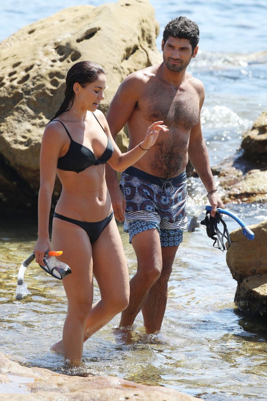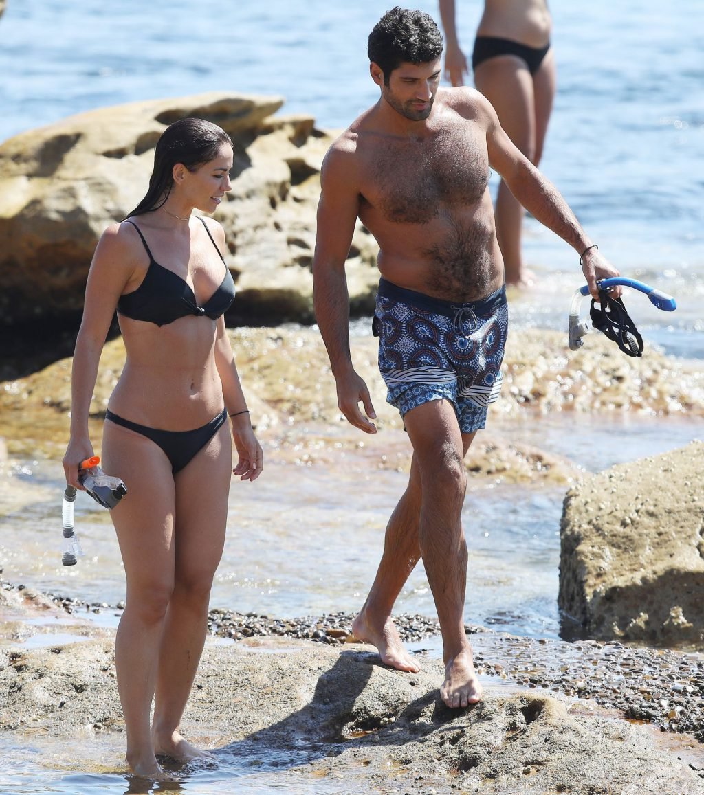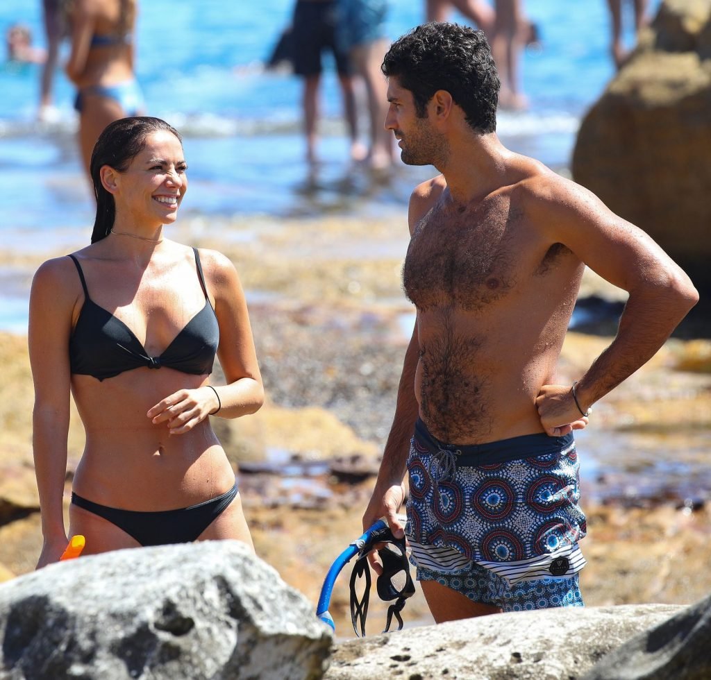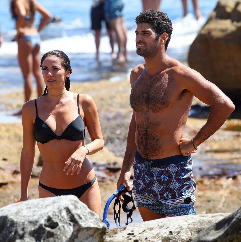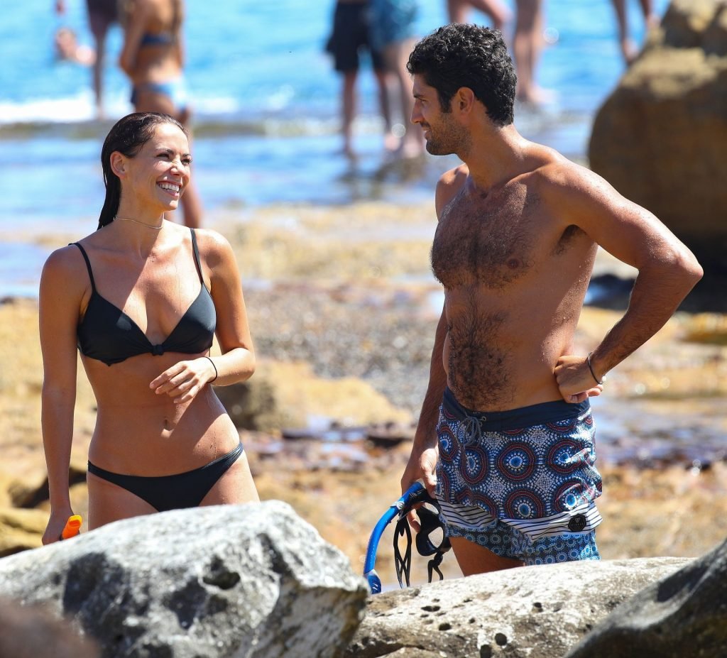 La modelo australiana Maddy King (30) fue vista con su nueva pareja disfrutando de una cita en la playa en Bondi, Sídney, 01/12/2019. La impresionante morena muestra su cuerpo sexy vistiendo un bikini negro.