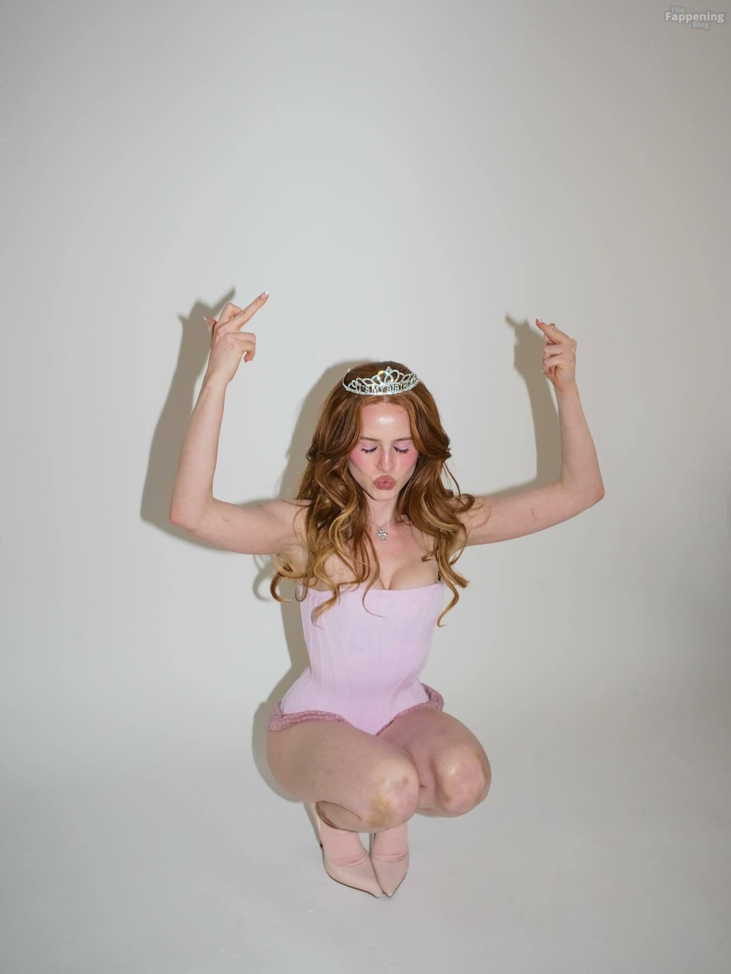 Madelaine Petsch, actriz y YouTuber estadounidense, aparece en lencería, medias y una tiara para su sesión de fotos de cumpleaños.
