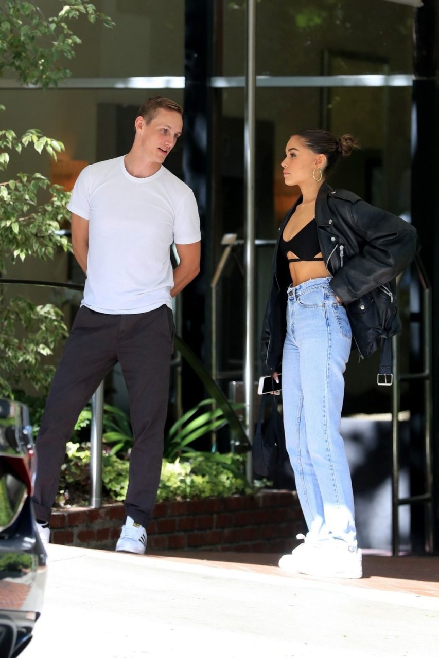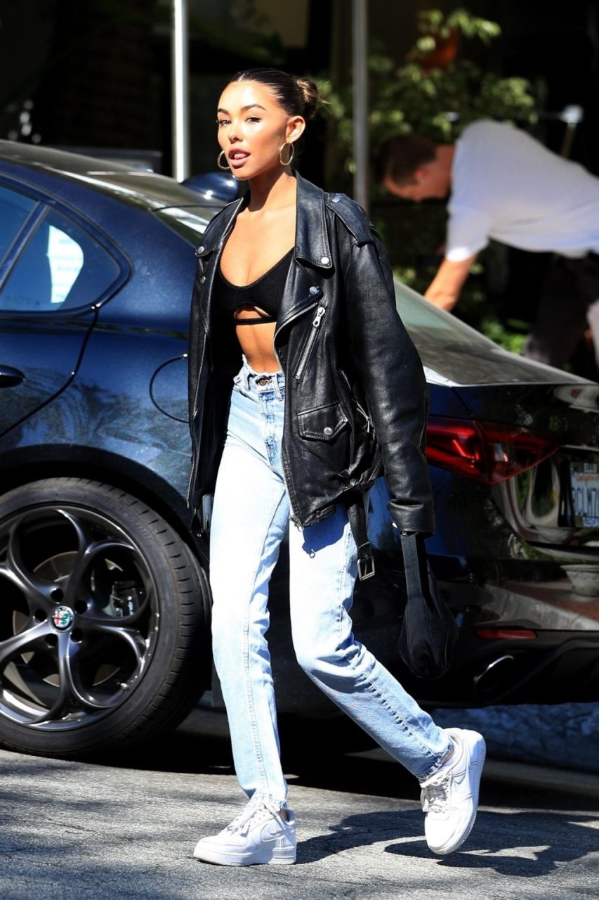 La cantante Madison Beer tiene una conversación animada después de una reunión de negocios fuera del Sunset Marquis en West Hollywood, 19/06/2019. La belleza estaba de buen humor, sacando la lengua mientras se subía a su coche para irse.