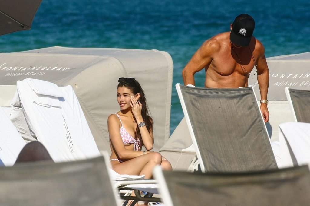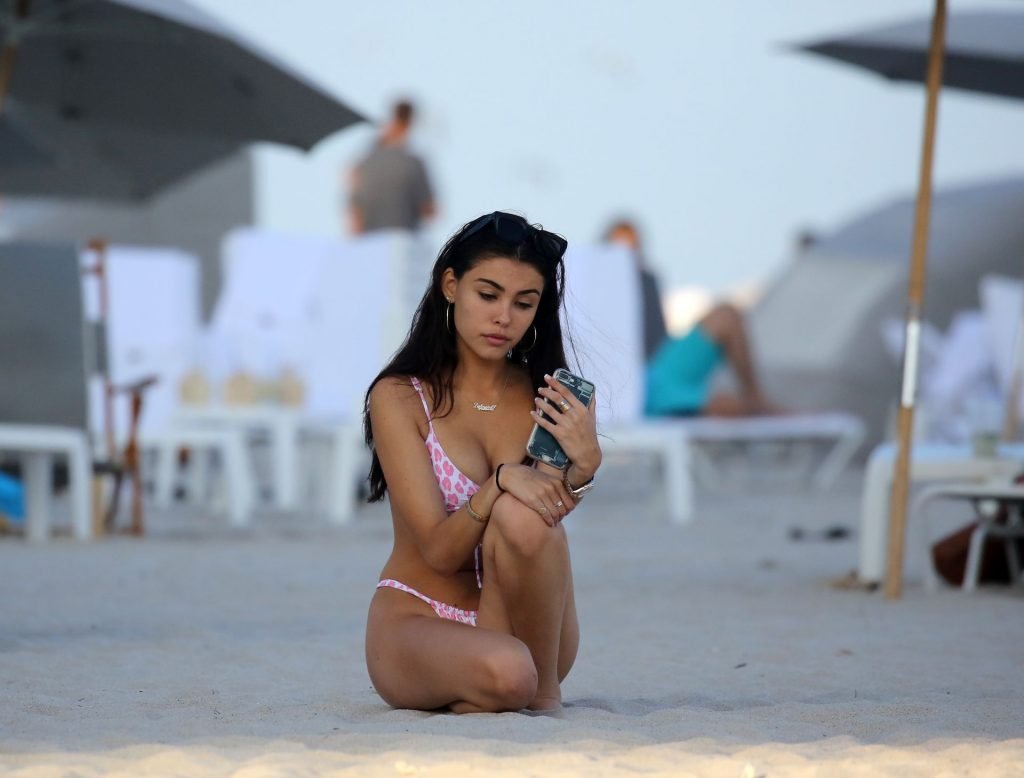 Madison Beer muestra su impresionante cuerpo en la playa de Miami, 21/11/2018. La cantante estadounidense de 19 años llevaba un diminuto bikini blanco-rosado.