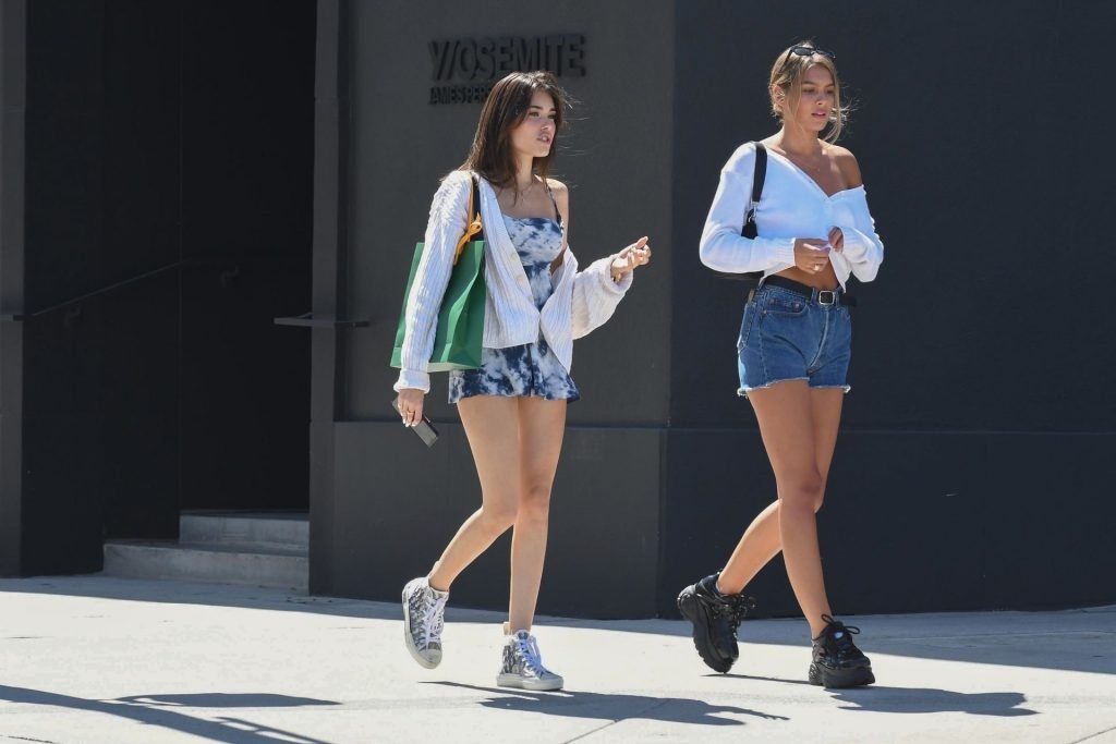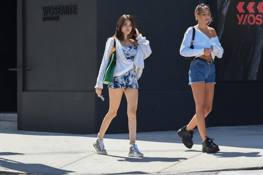 La cantante/modelo de piernas largas Madison Beer regresa al valet después de almorzar con su abuela en Il Pastaio en Beverly Hills, 20/08/2019. Fue fotografiada con un vestido demasiado corto que revelaba su ropa interior.
