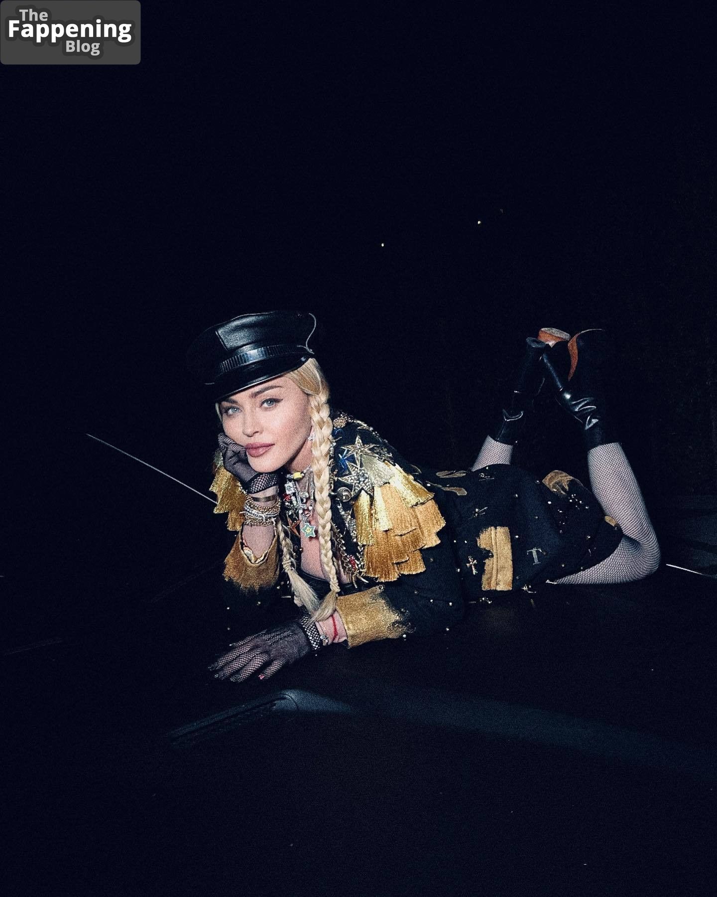 Madonna adopta sus poses explícitas características y muestra con orgullo el vello de moda en su zona púbica y axilas. A pesar de los cambios en las tendencias de moda a lo largo de los años, ¡esta cantante sigue siendo la gata más caliente de Hollywood!