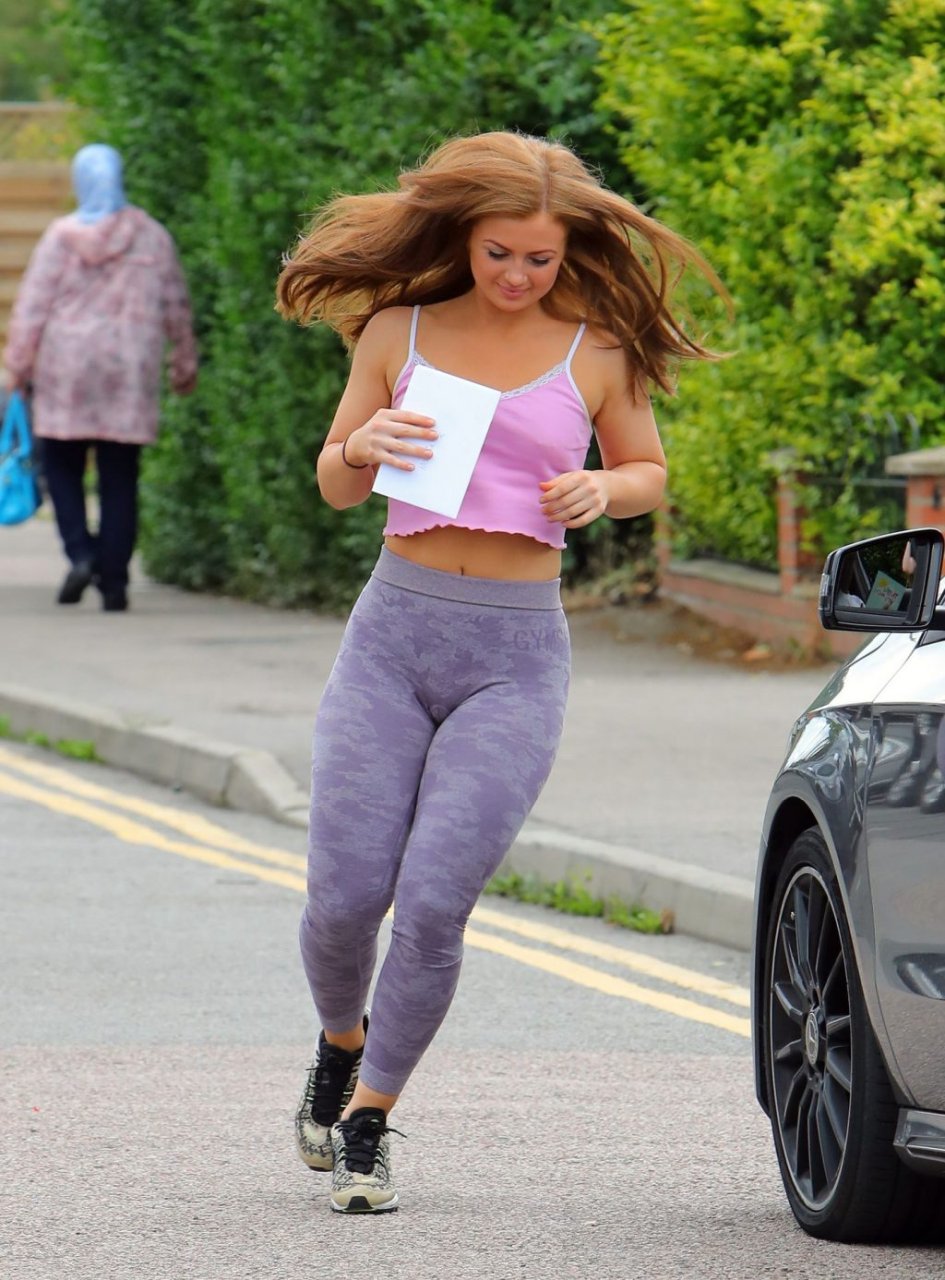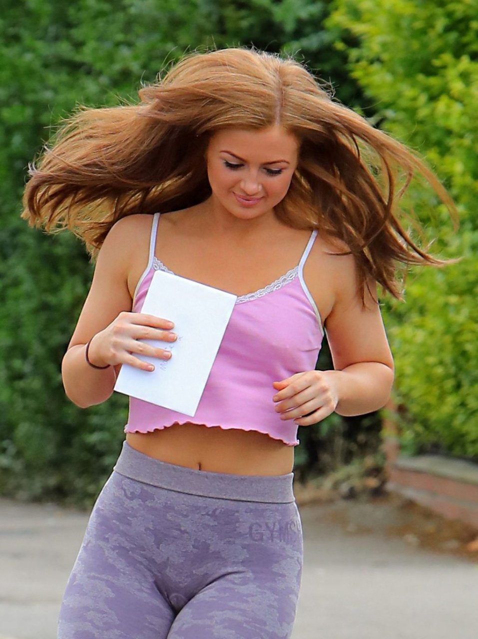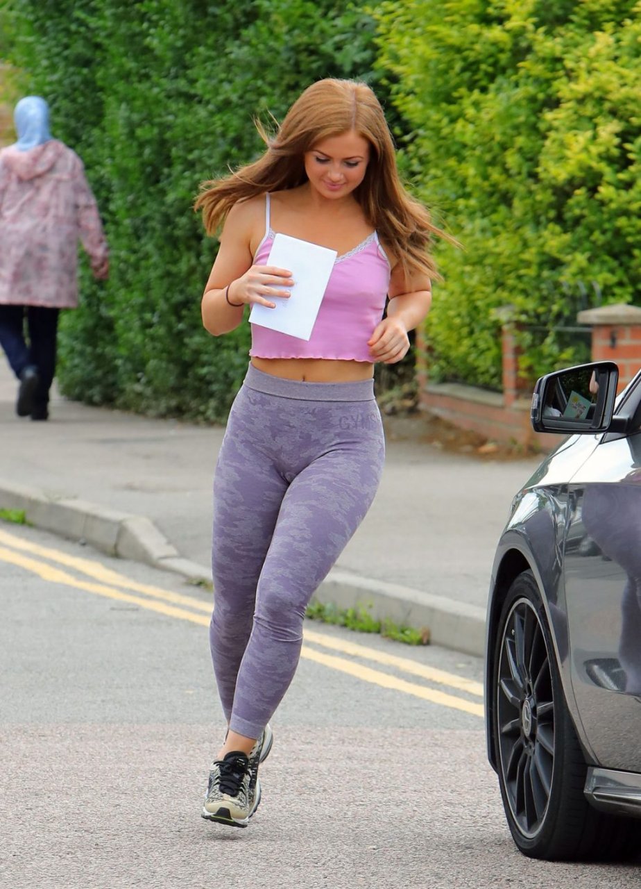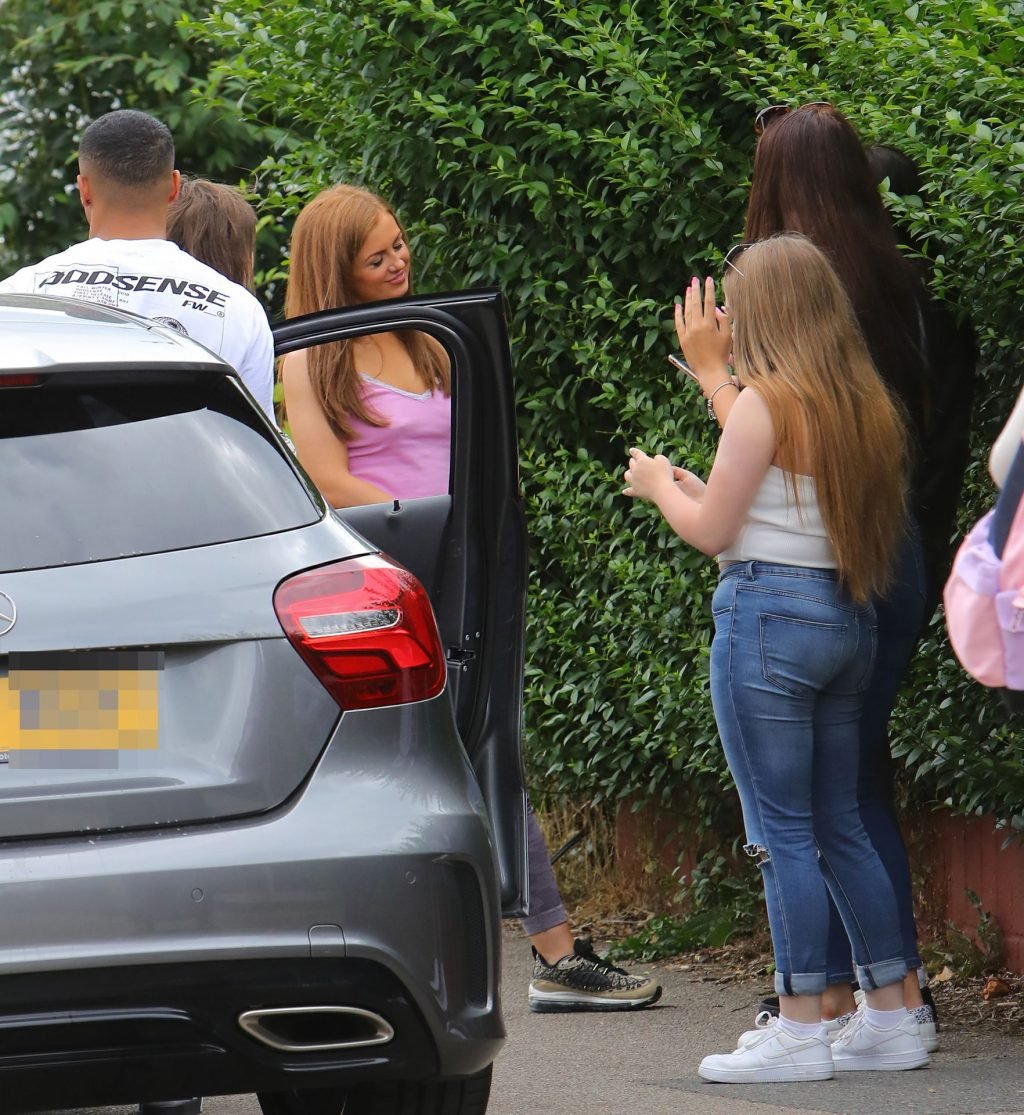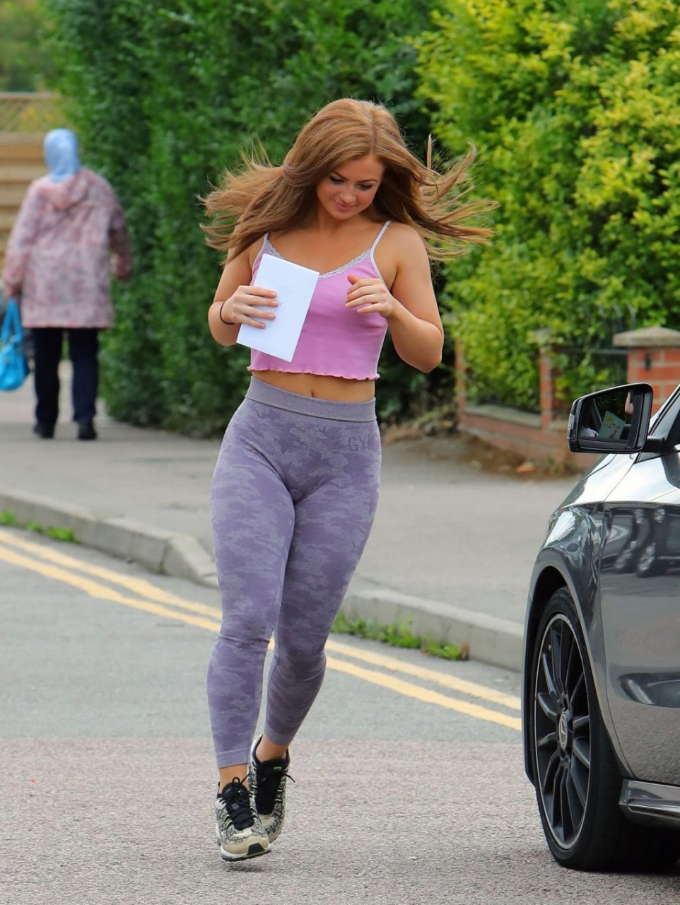 Maisie sale del coche para agradecerles y luego volvió a entrar en el coche. Obviamente no llevaba sujetador ya que sus piercings en los pezones eran visibles a través de su top.