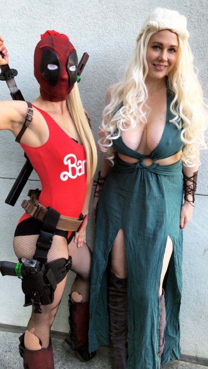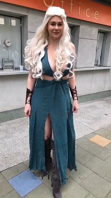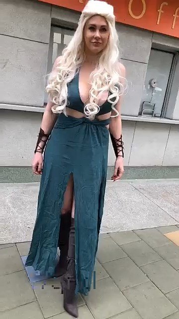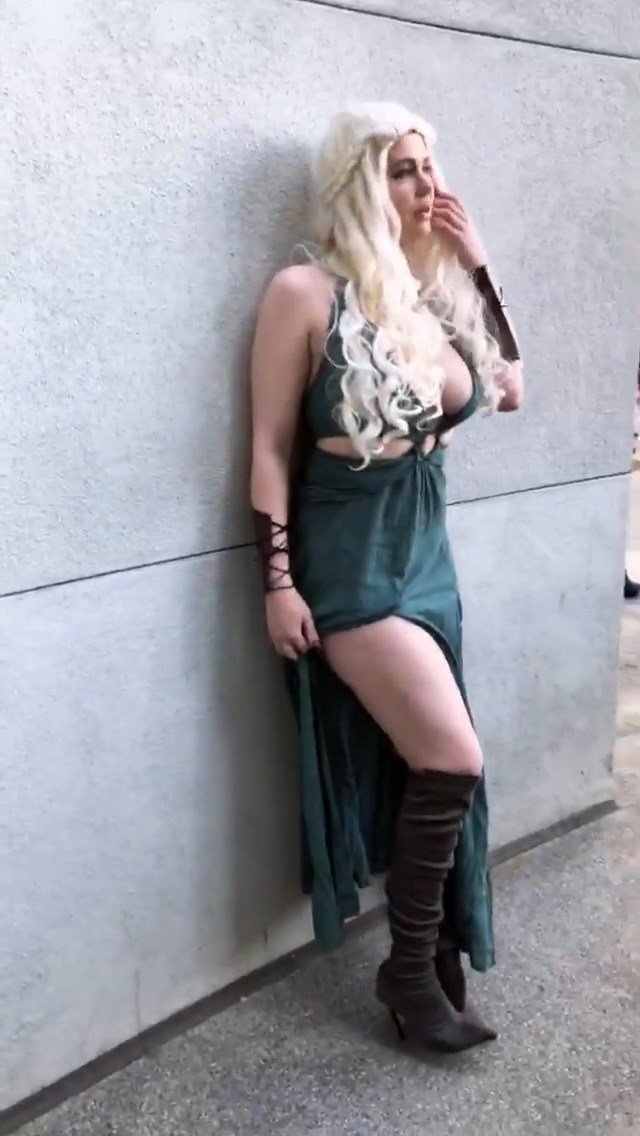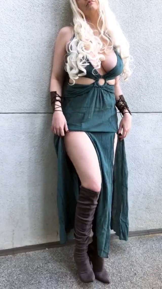 Ahora ella está increíblemente sexy con un look de Juego de Tronos. Más bien Juego de Poned, pero diablos, ciertamente no voy a discutir con ella sobre eso. Todas estas imágenes no han hecho más que darme una enorme espada de cerdo para que ella la pula con saliva. Así que por favor, aléjense, tenemos despegue...