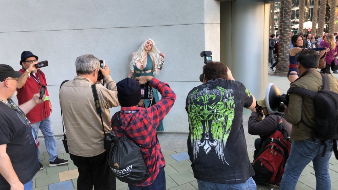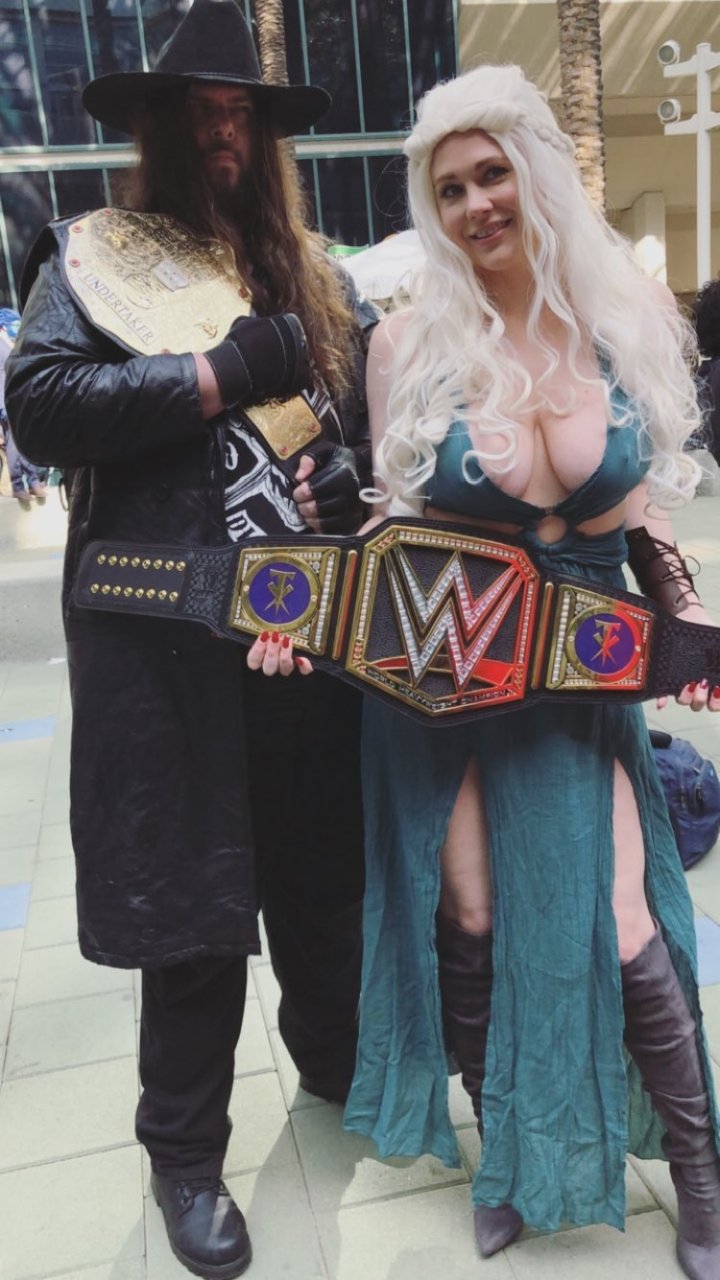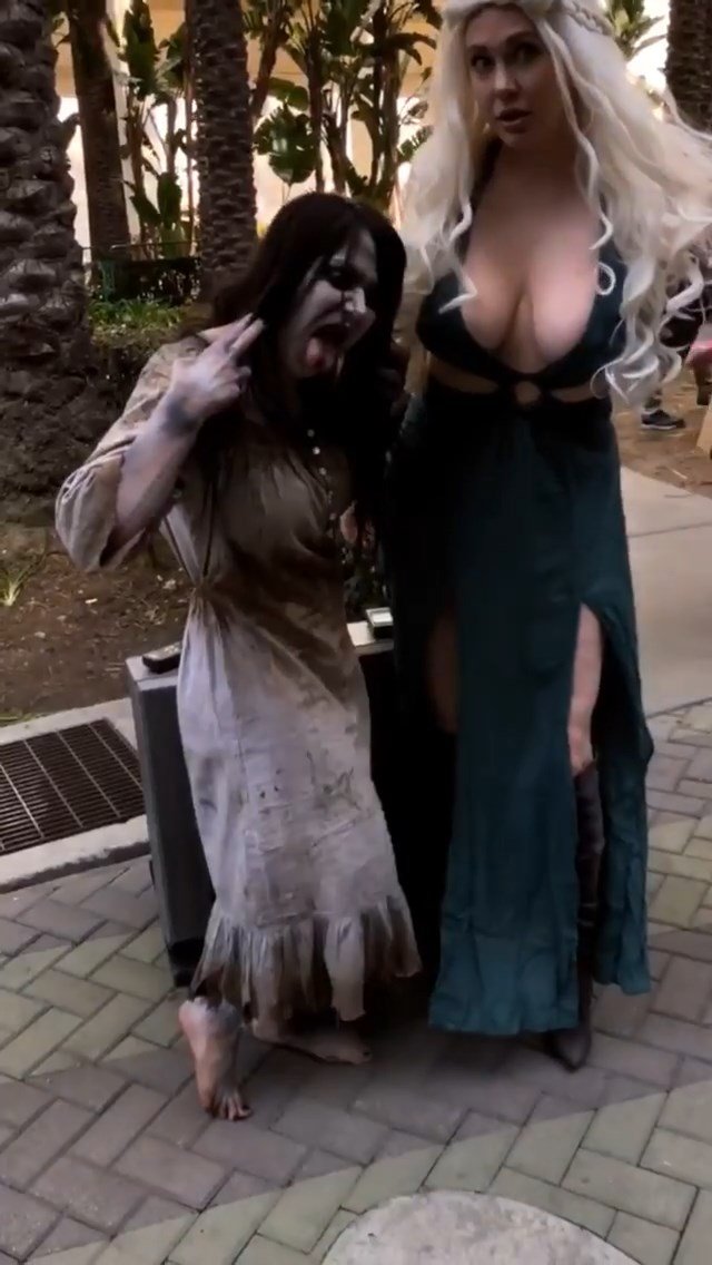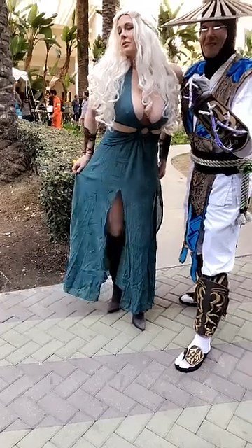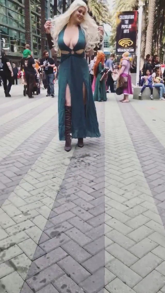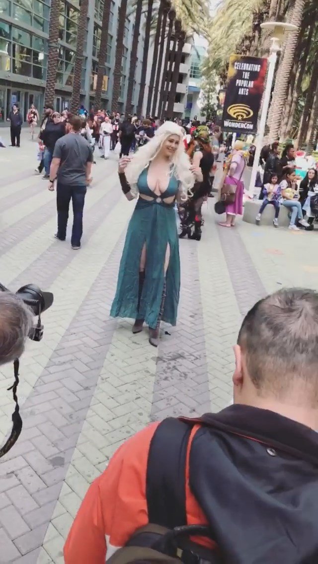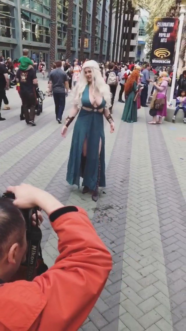 La voluptuosa Maitland Ward posa para los fotógrafos como La Abuela de los Dragones (Maitlandys Wardaryen) en Wondercon en Anaheim, 25/03/2018. ¿Dónde está Khal que la folló?