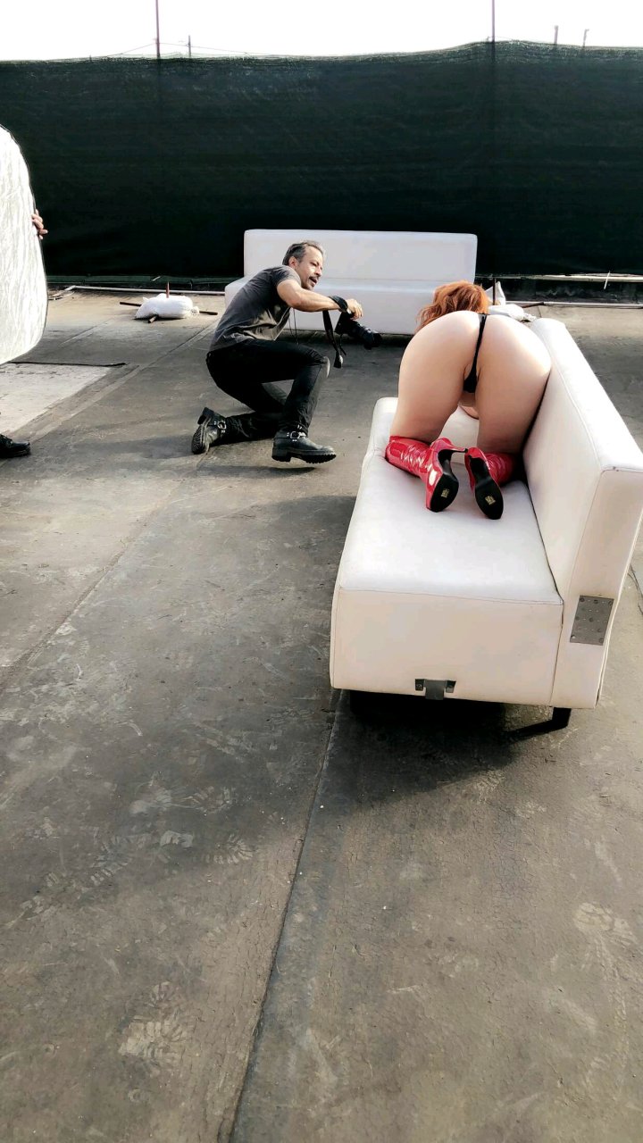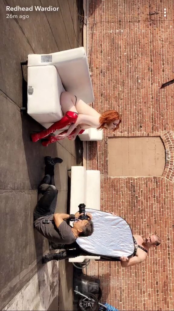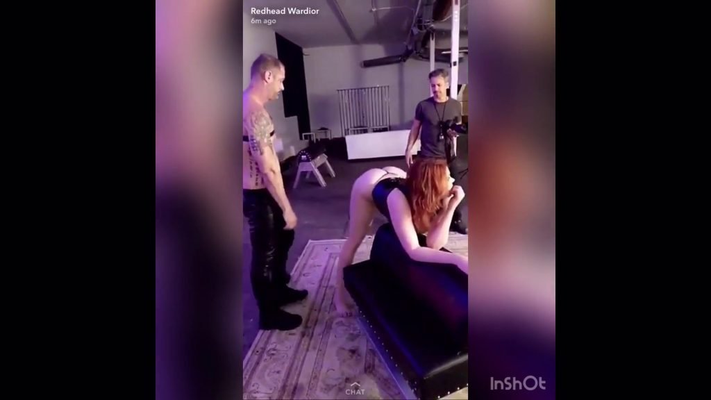 Creo que está filmando porno y ese lugar definitivamente parece el armamento kink. Si es así, me gustaría verla en EverythingButt recibiendo un fisting anal de ArielX o Lea Lexis, por favor.