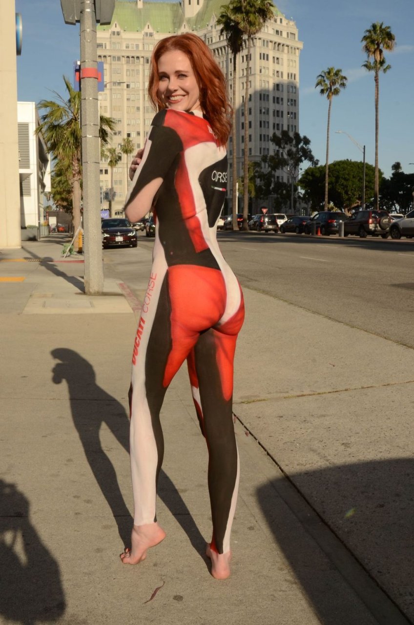 Las que no son cualquiera y hacen pintura corporal usualmente se ponen pasties y un parche de modestia sobre la entrepierna. Pero ella no.
