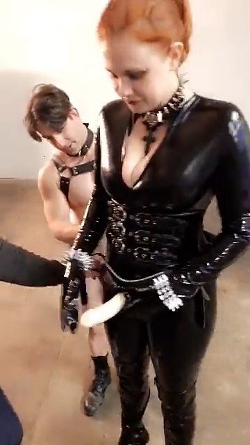 Aparentemente mide 5'10, así que supongo que con los tacones mide 6'4. Nunca me ha interesado el pegging, pero mataría por ver el resto de esto, está un paso más cerca de hacer porno hardcore completo.