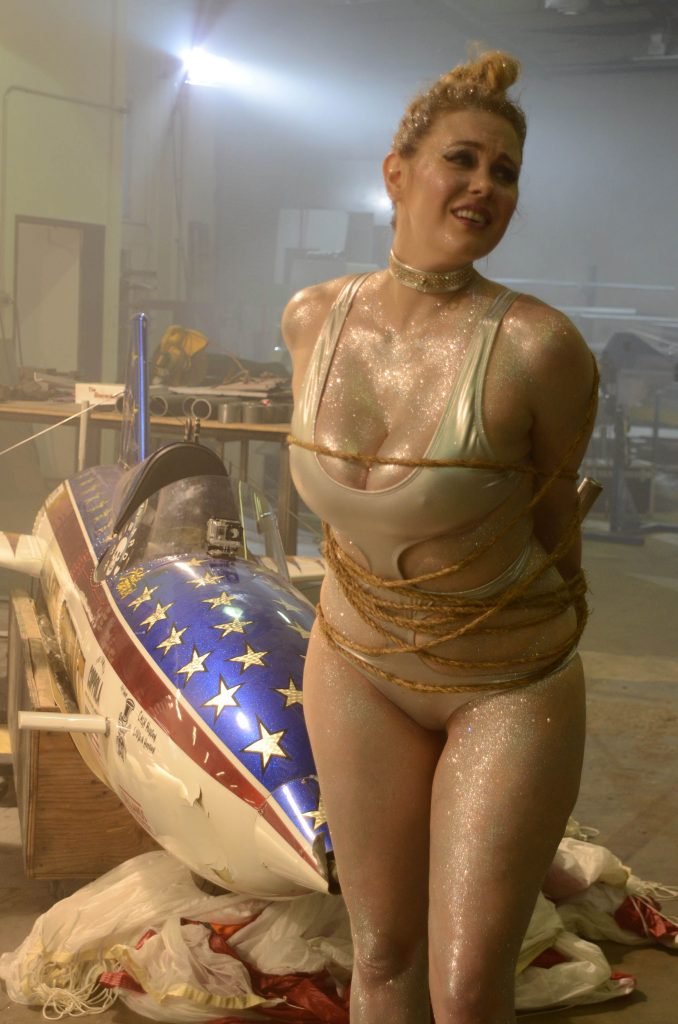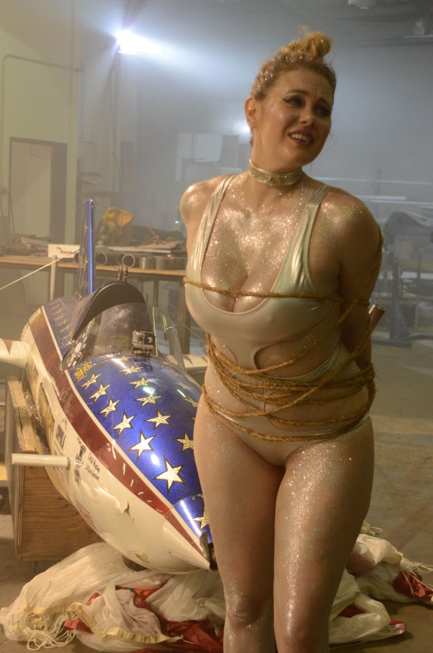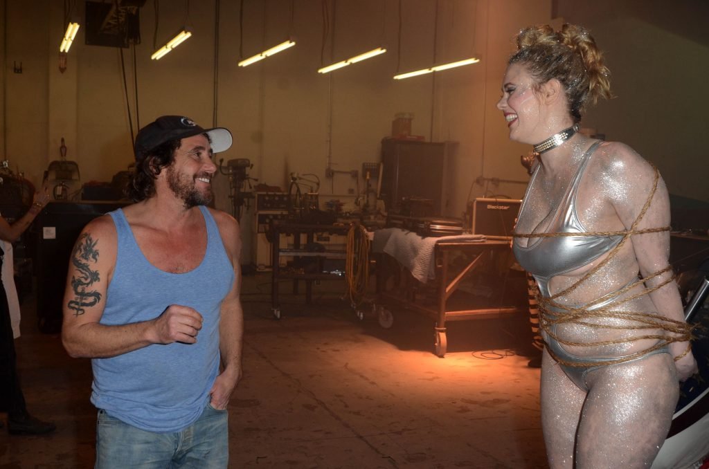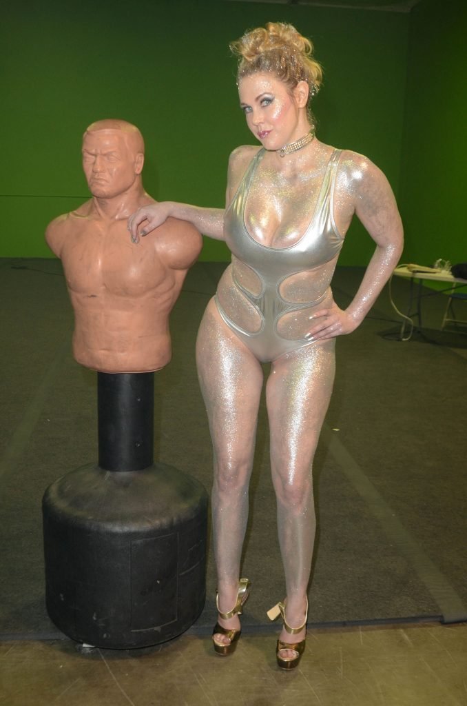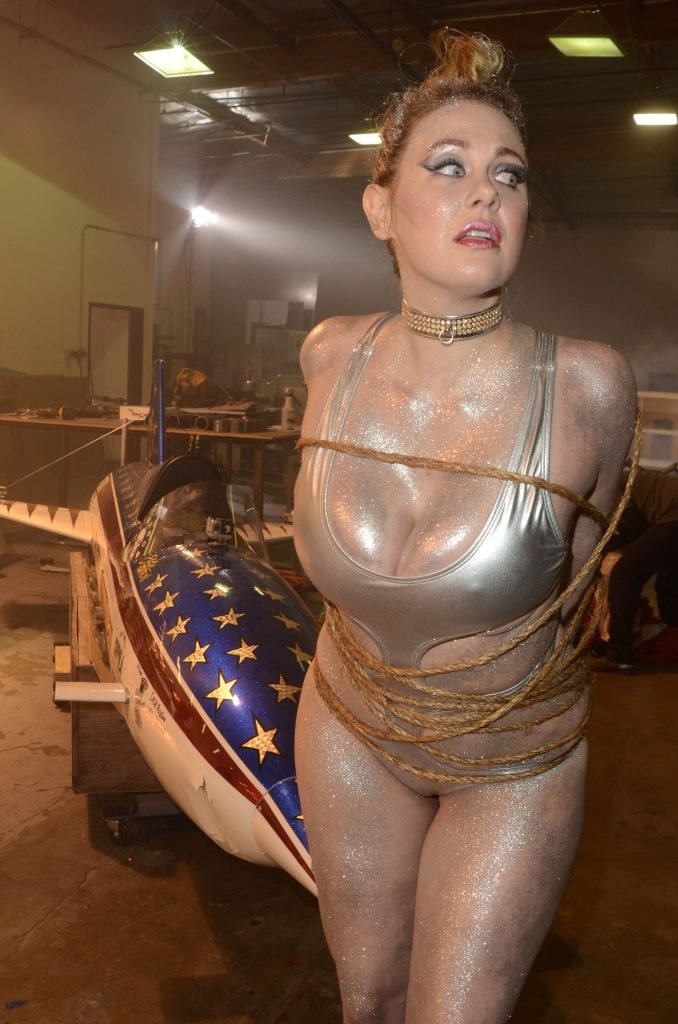 Maitland Ward lleva un sexy traje de baño plateado en el set del nuevo tráiler de ALL TIME COMICS de Samuel Bayer en Chatsworth, California, 05/03/2017. Maitland Ward Baxter es una actriz de Long Beach, EE.UU.. Edad – 40 (3 de febrero de 1977).