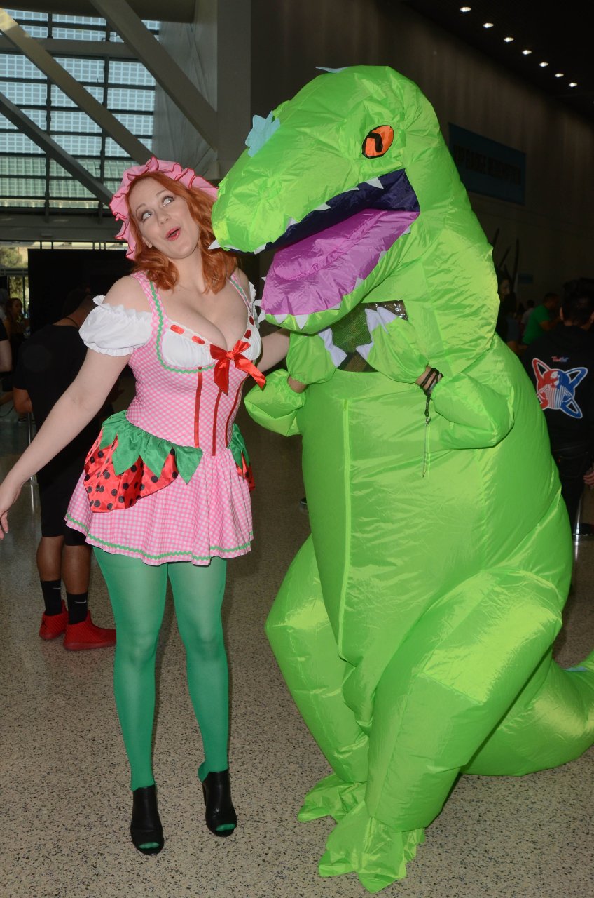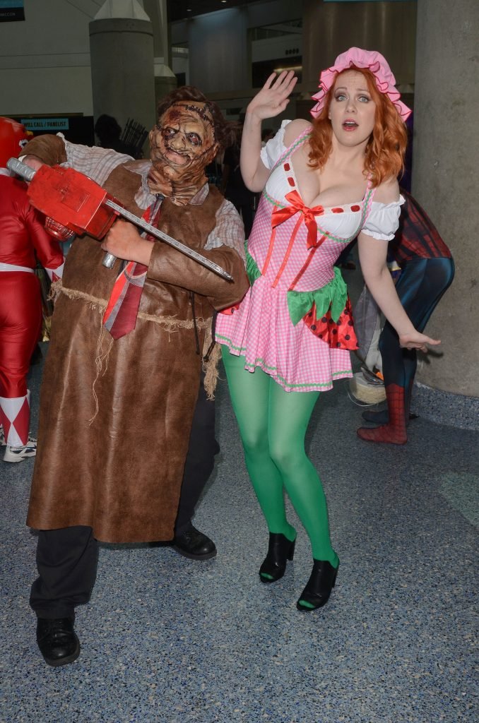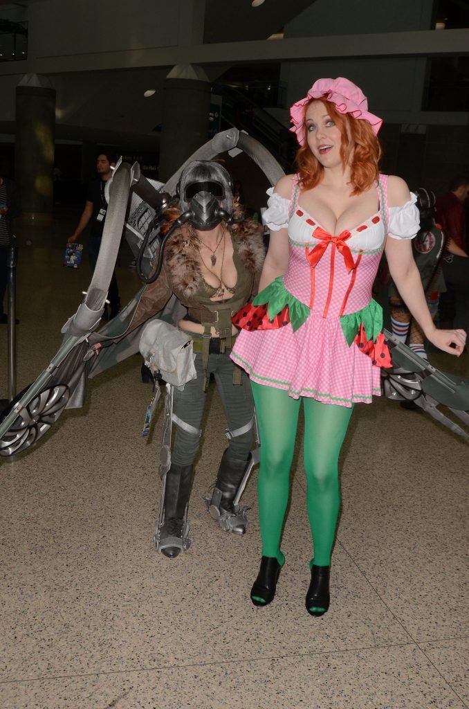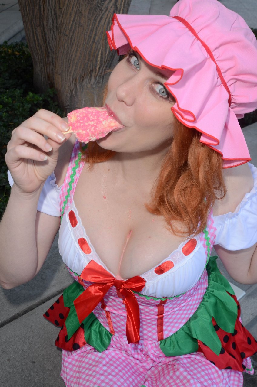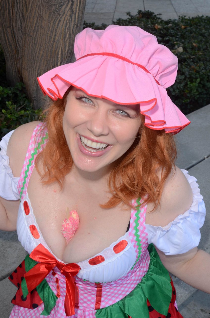 “Boy Meets World” la guapa Maitland Ward, vestida como “Strawberry Shortcake” en el Comic-Con de Los Ángeles de Stan Lee, se ensucia mientras come un helado de Strawberry Shortcake, 28/10/2017.