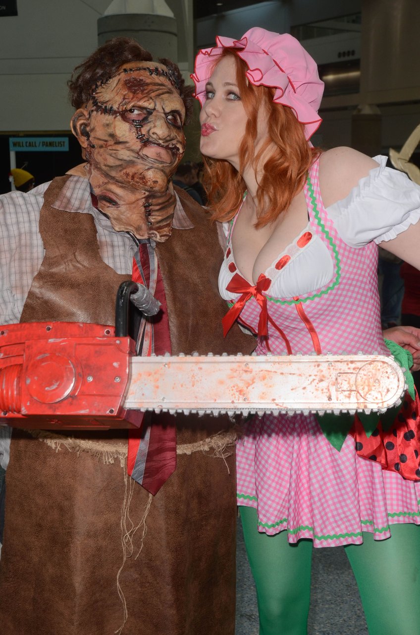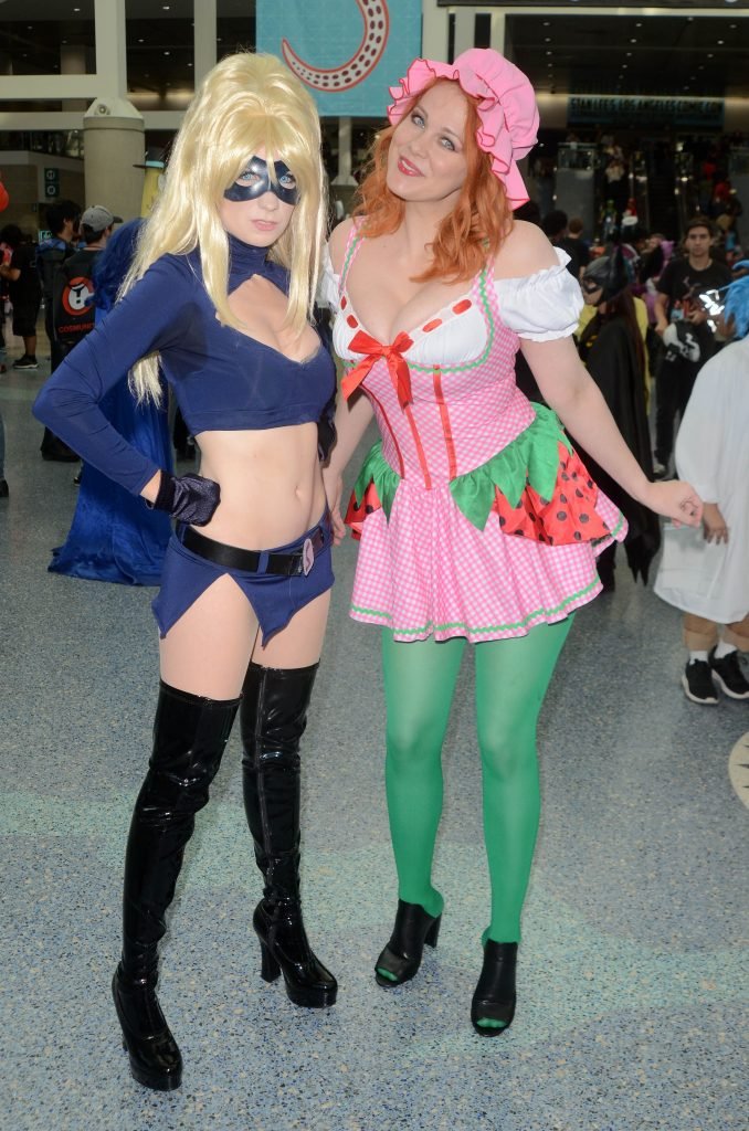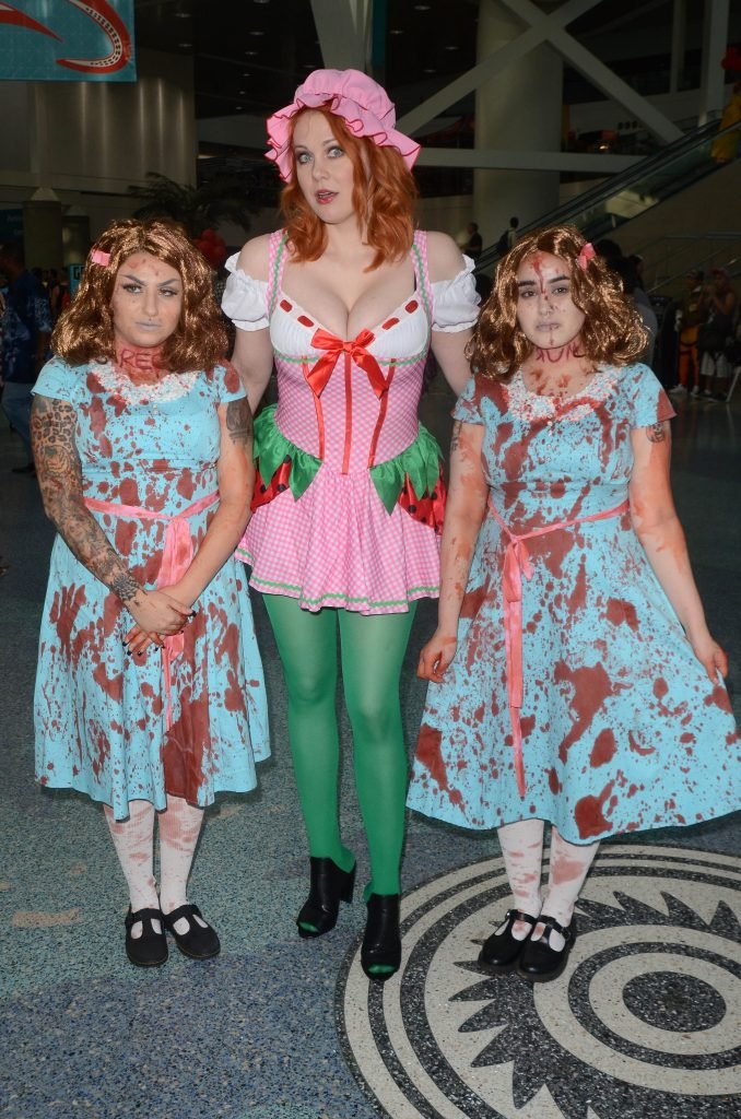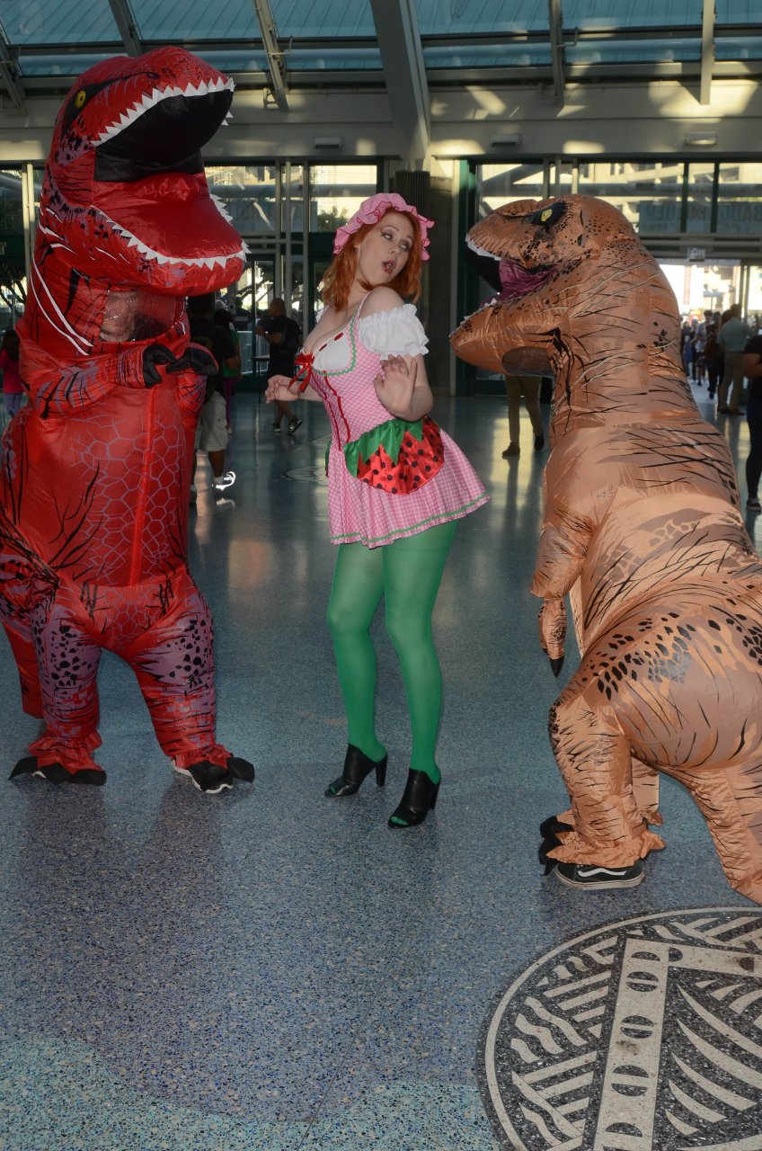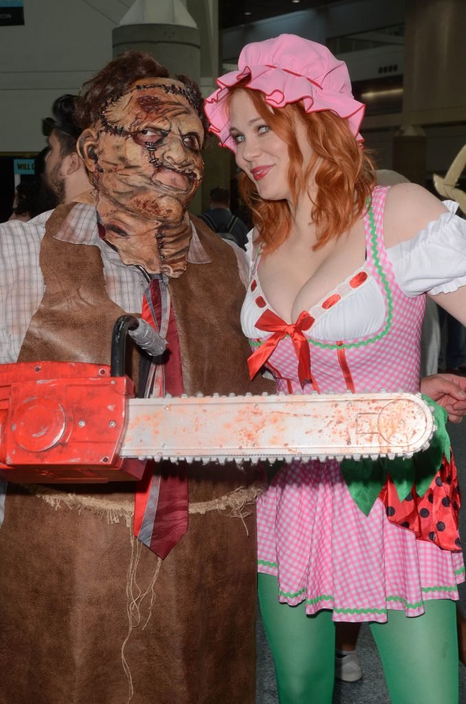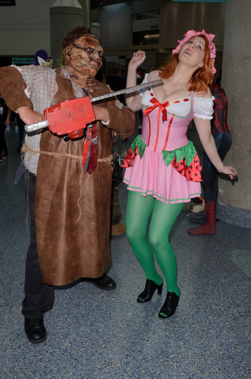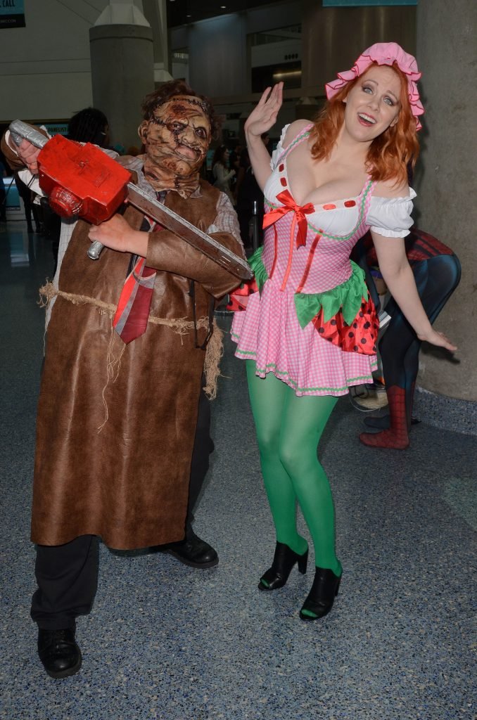 “Boy Meets World” la guapa Maitland Ward, vestida como “Strawberry Shortcake” en el Comic-Con de Los Ángeles de Stan Lee, se ensucia mientras come un helado de Strawberry Shortcake, 28/10/2017.