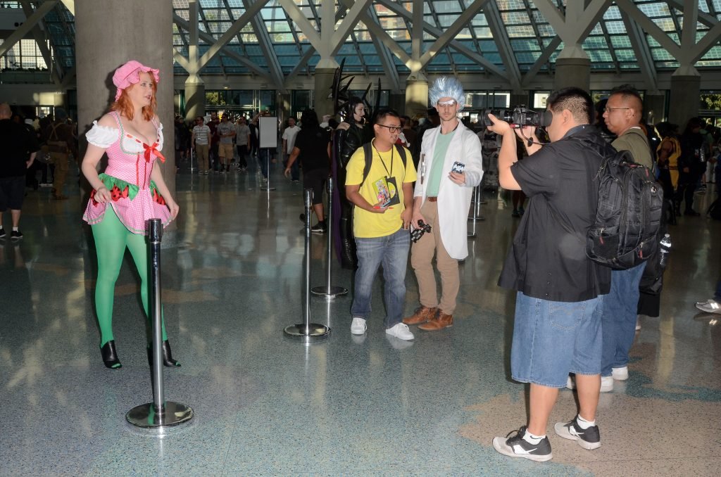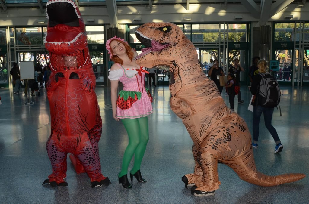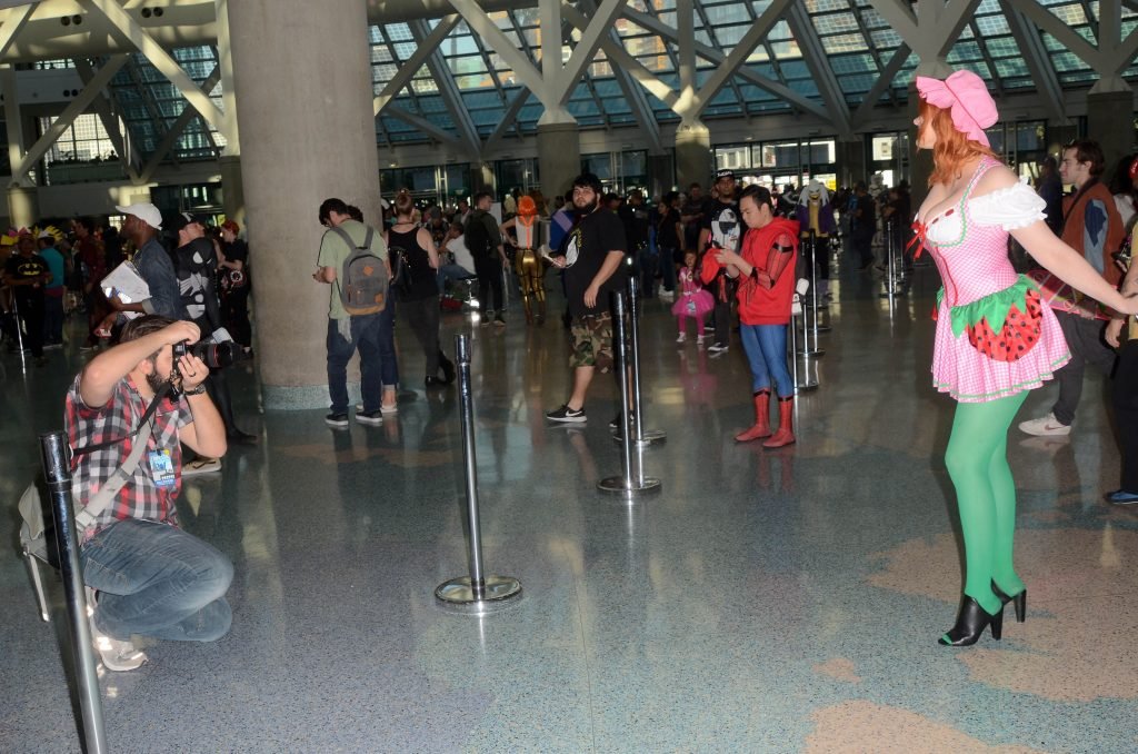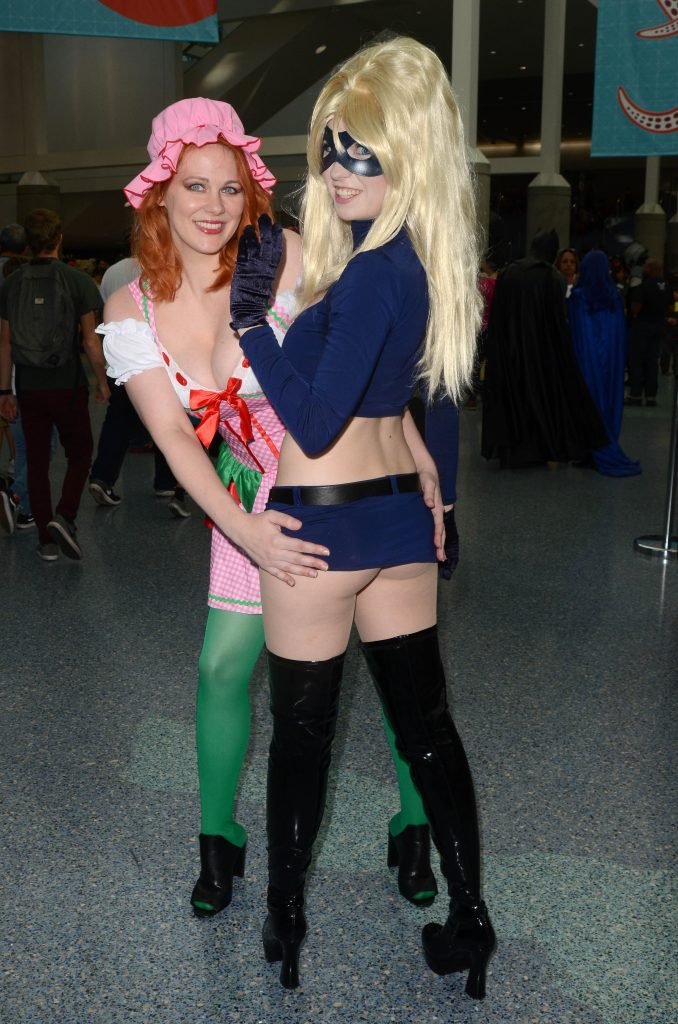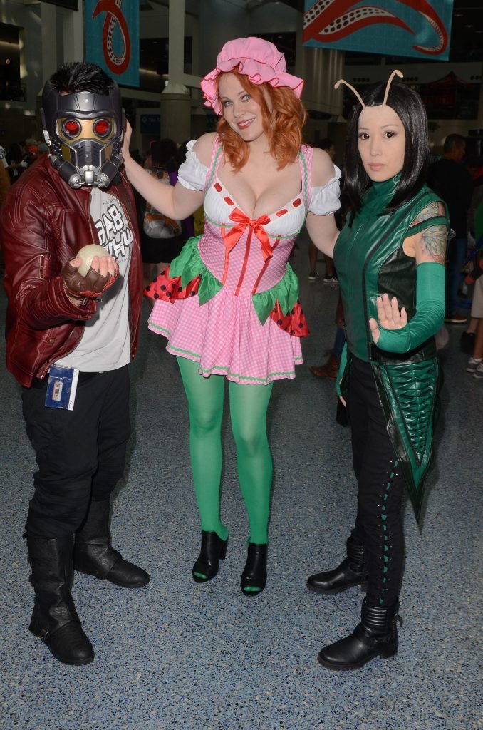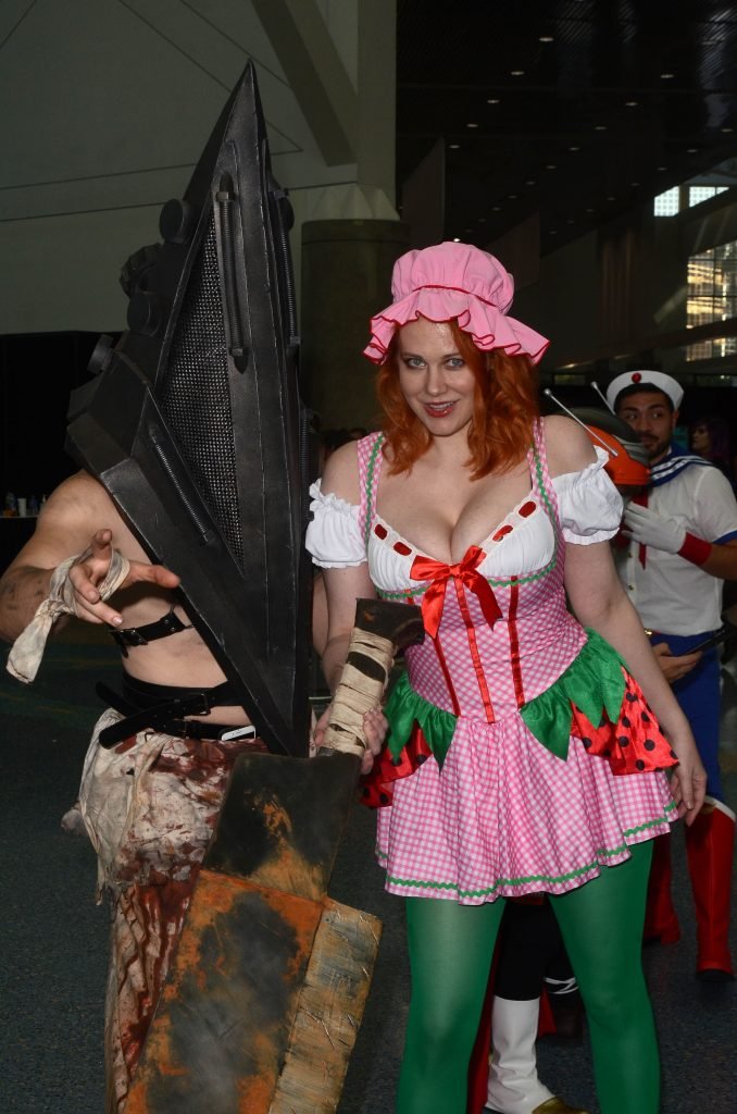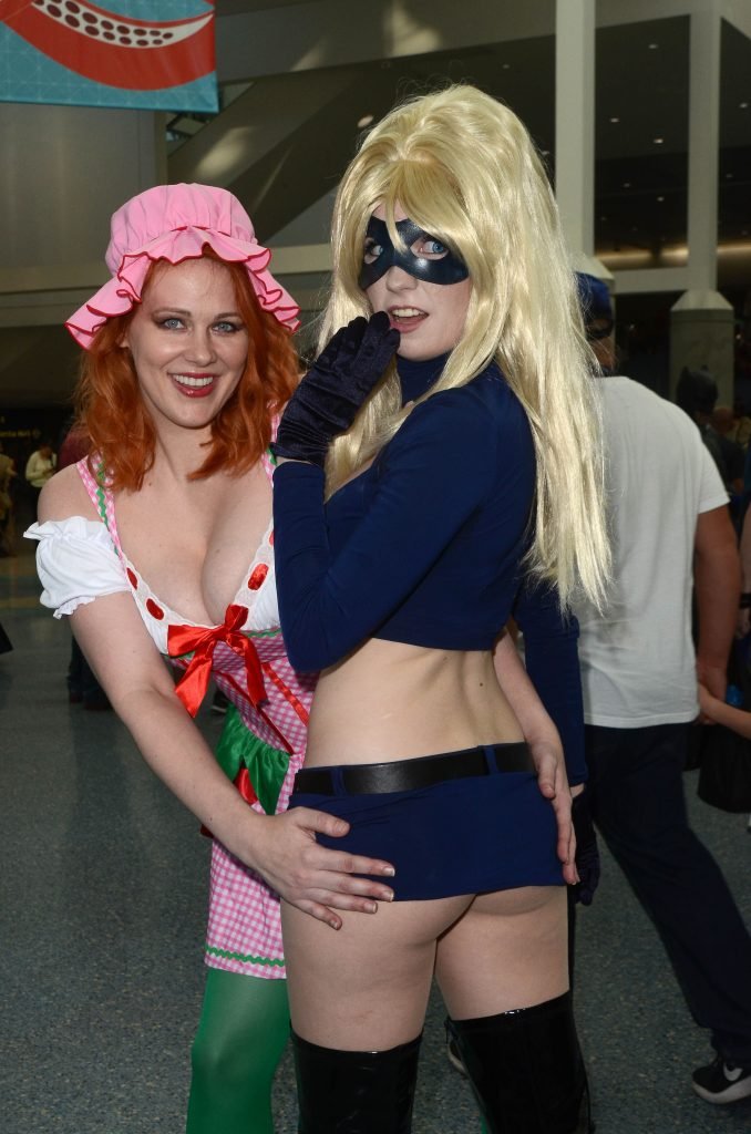 “Boy Meets World” la guapa Maitland Ward, vestida como “Strawberry Shortcake” en el Comic-Con de Los Ángeles de Stan Lee, se ensucia mientras come un helado de Strawberry Shortcake, 28/10/2017.