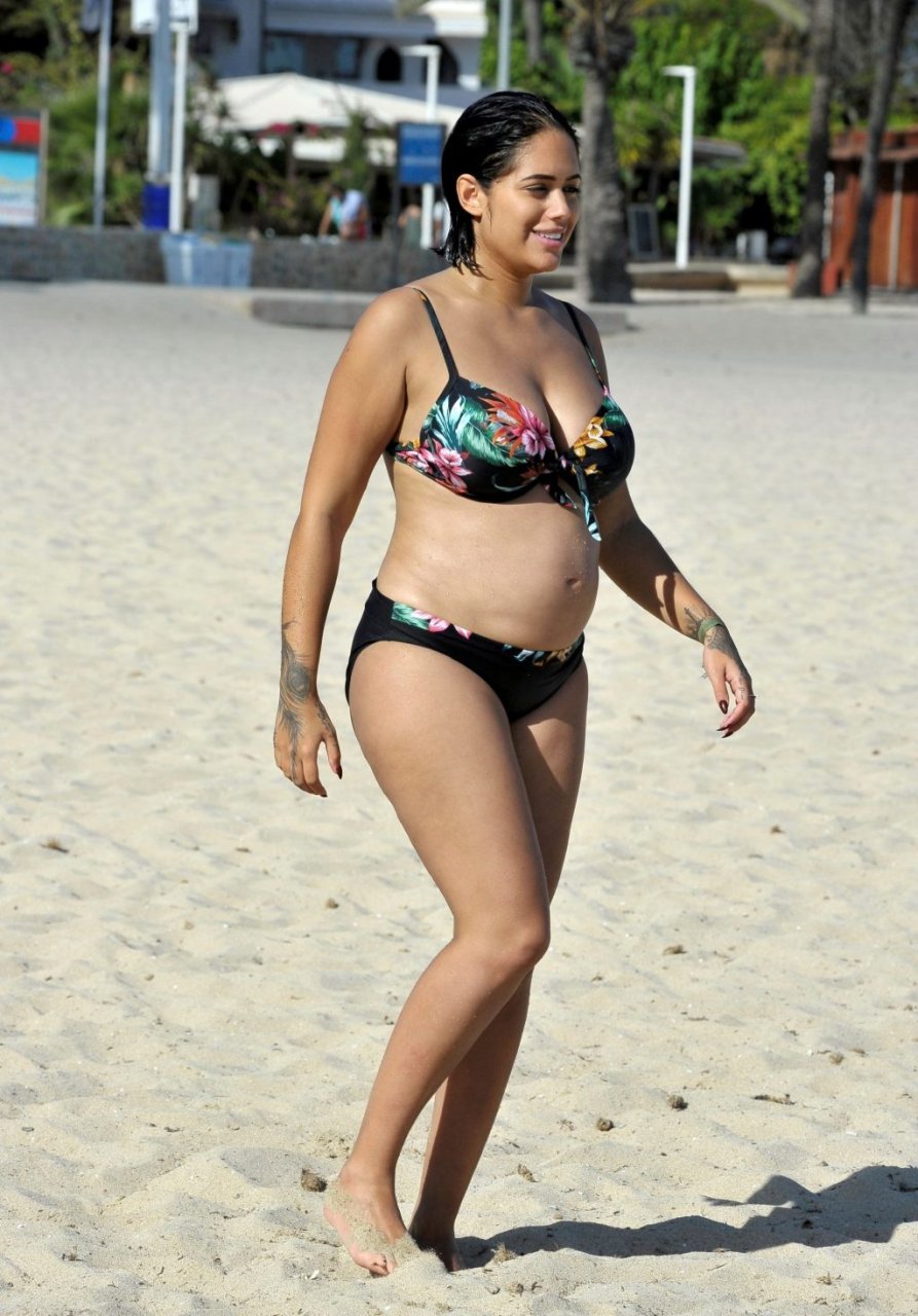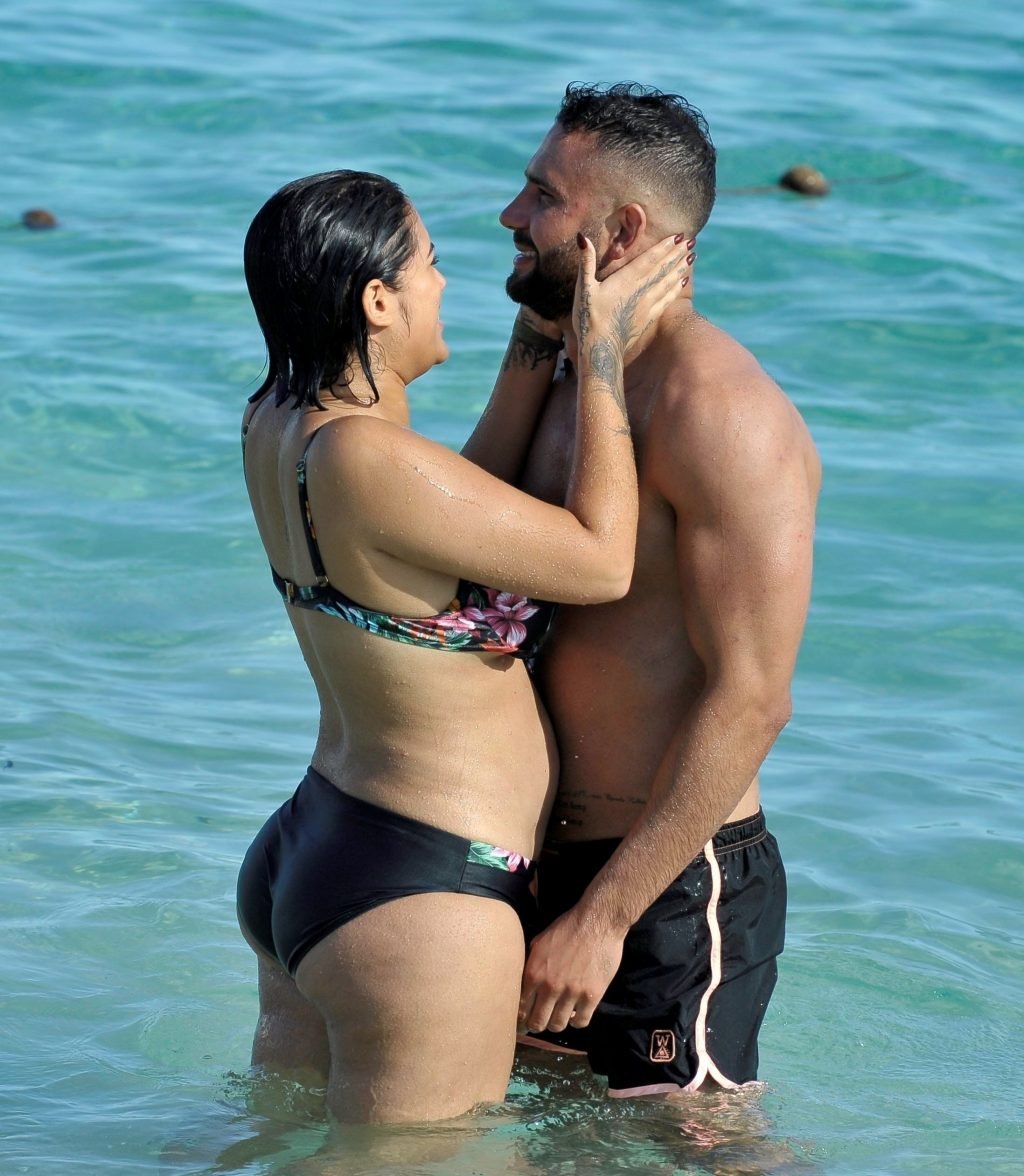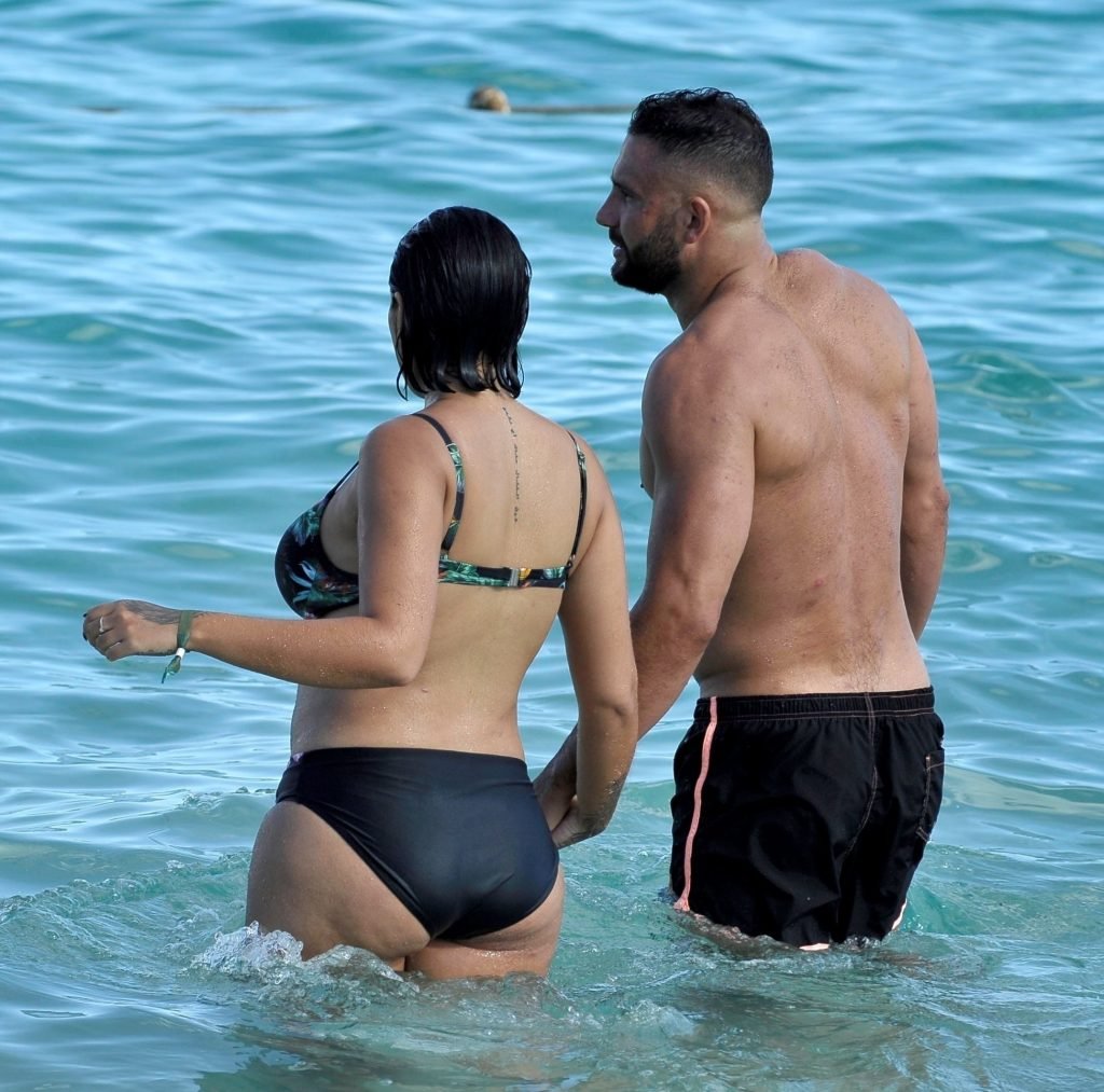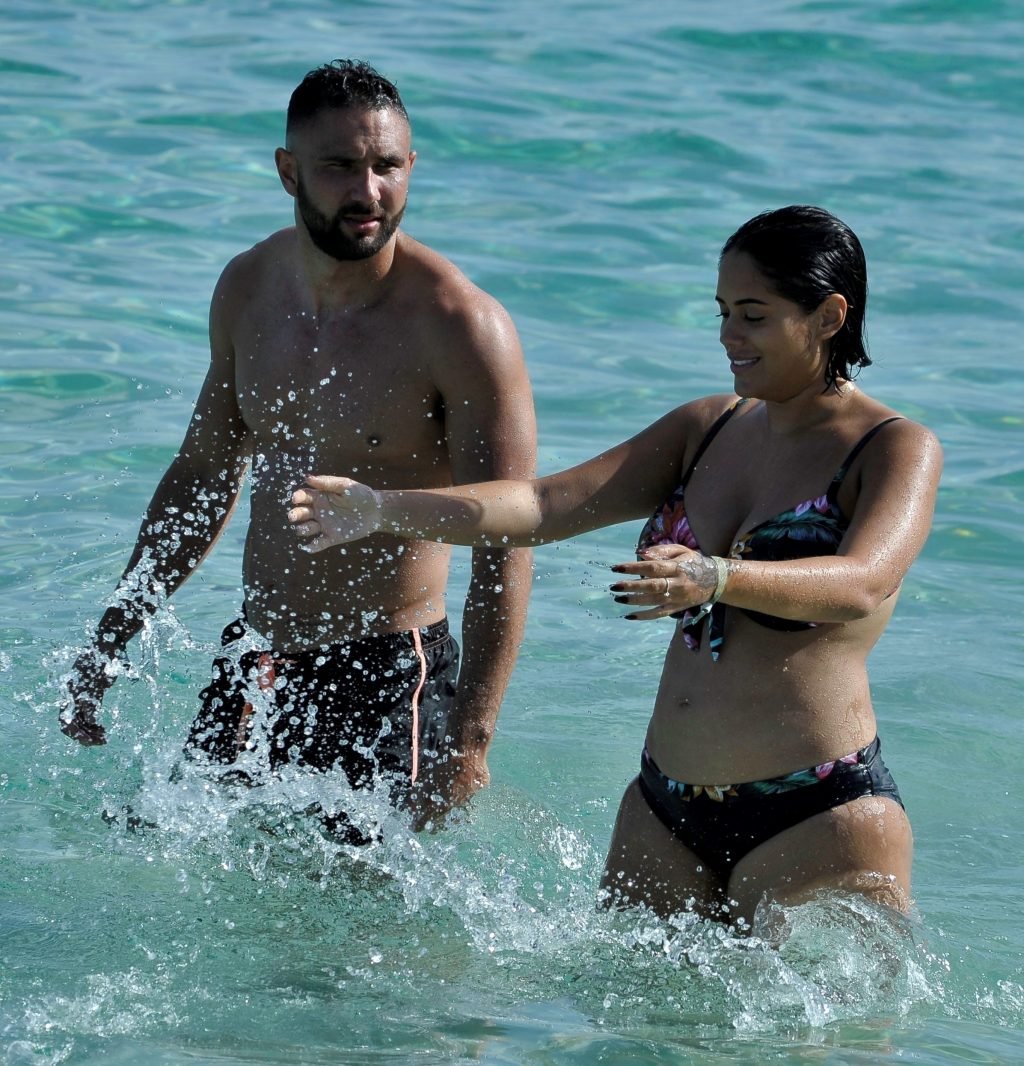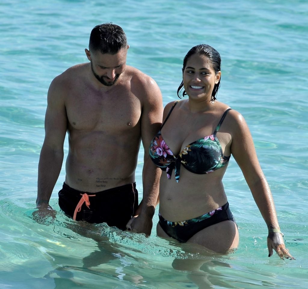 La estrella de “Love Island” Malin Andersson y su novio infiel Tom Kemp muestran afecto en público durante una escapada a España, mientras ella exhibe su barriga de embarazada y recibe un masaje en la playa, 10/06/2018.