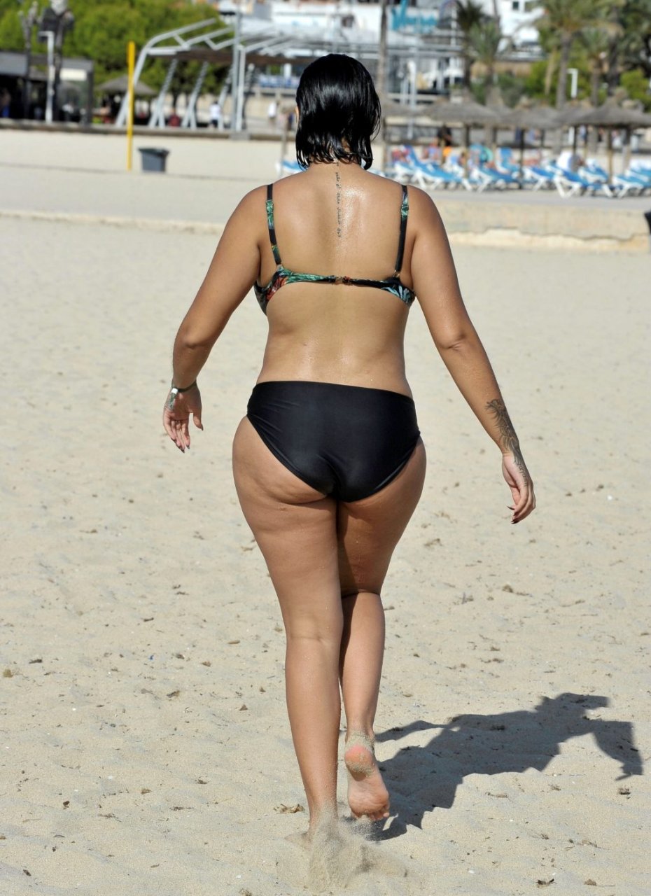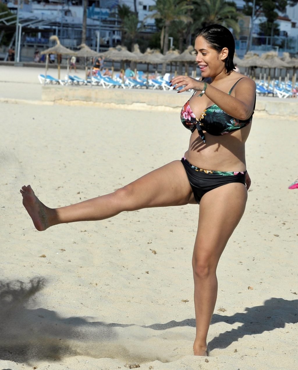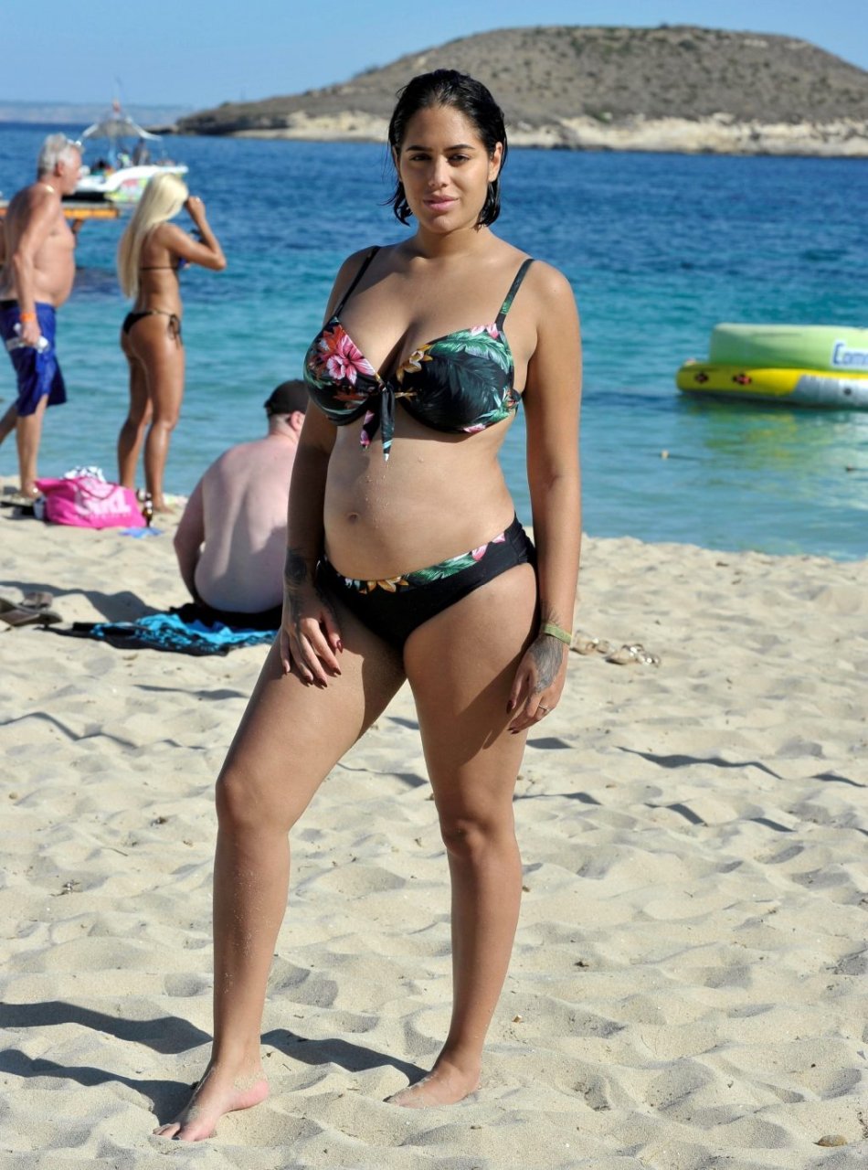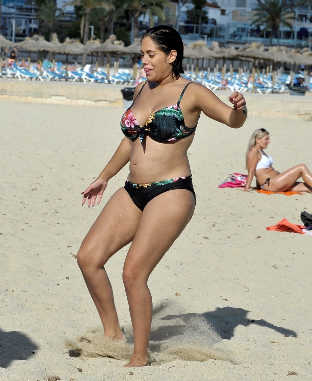 La estrella de “Love Island” Malin Andersson y su novio infiel Tom Kemp muestran afecto en público durante una escapada a España, mientras ella exhibe su barriga de embarazada y recibe un masaje en la playa, 10/06/2018.