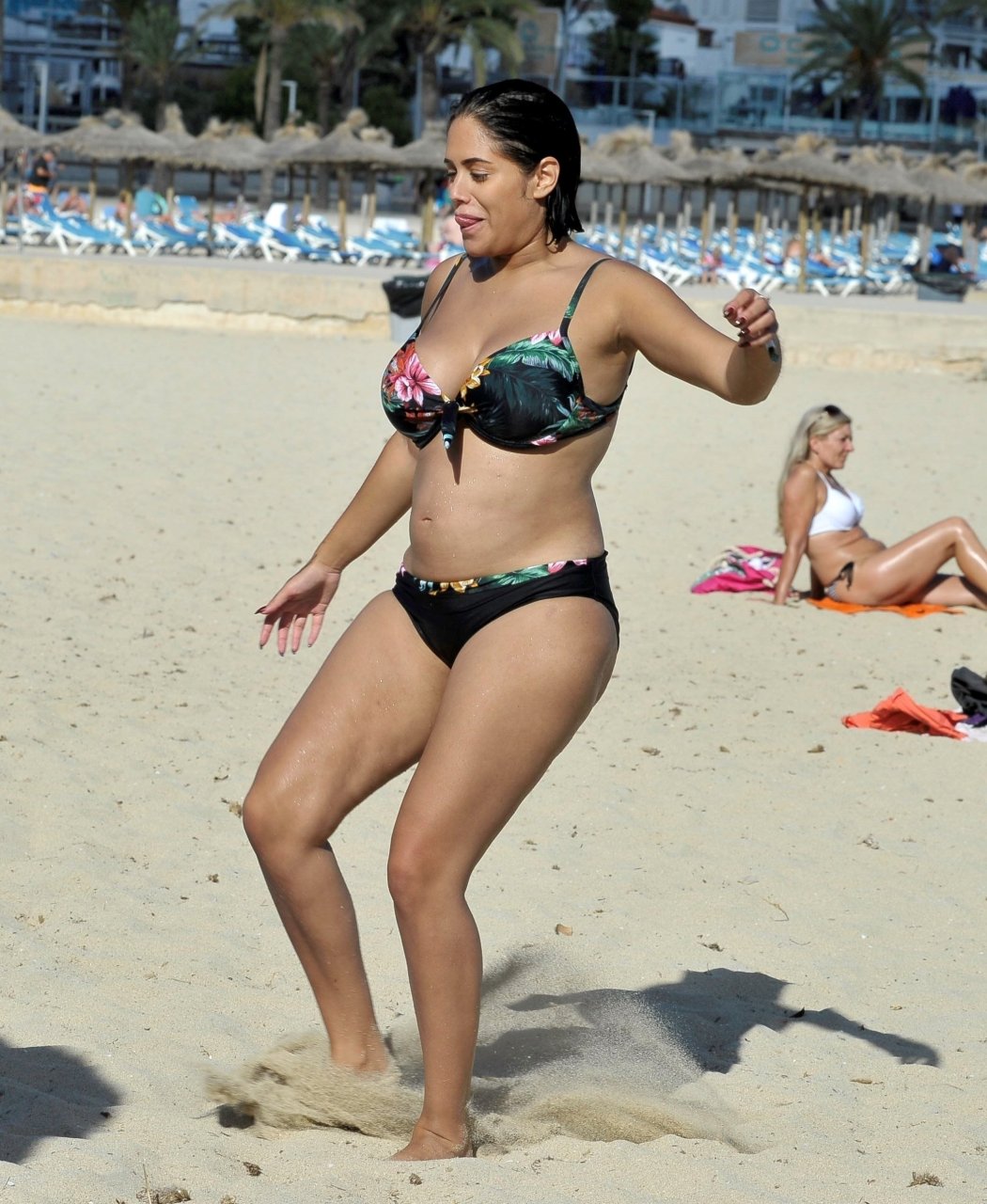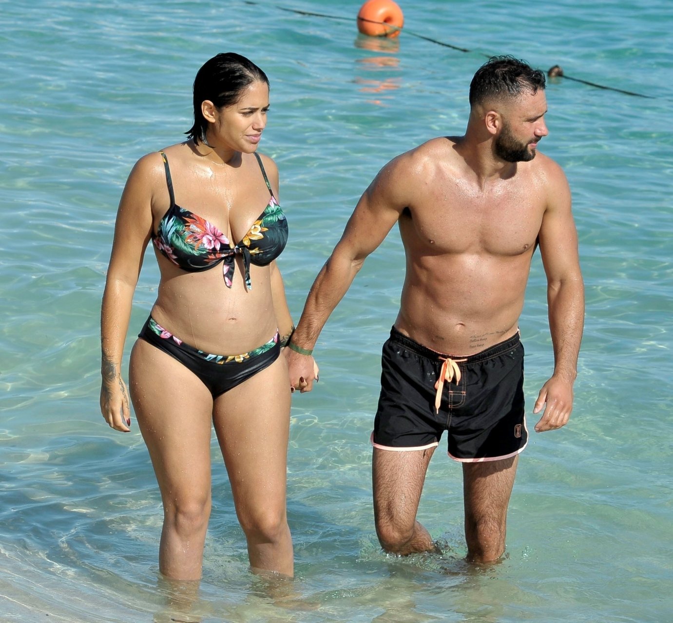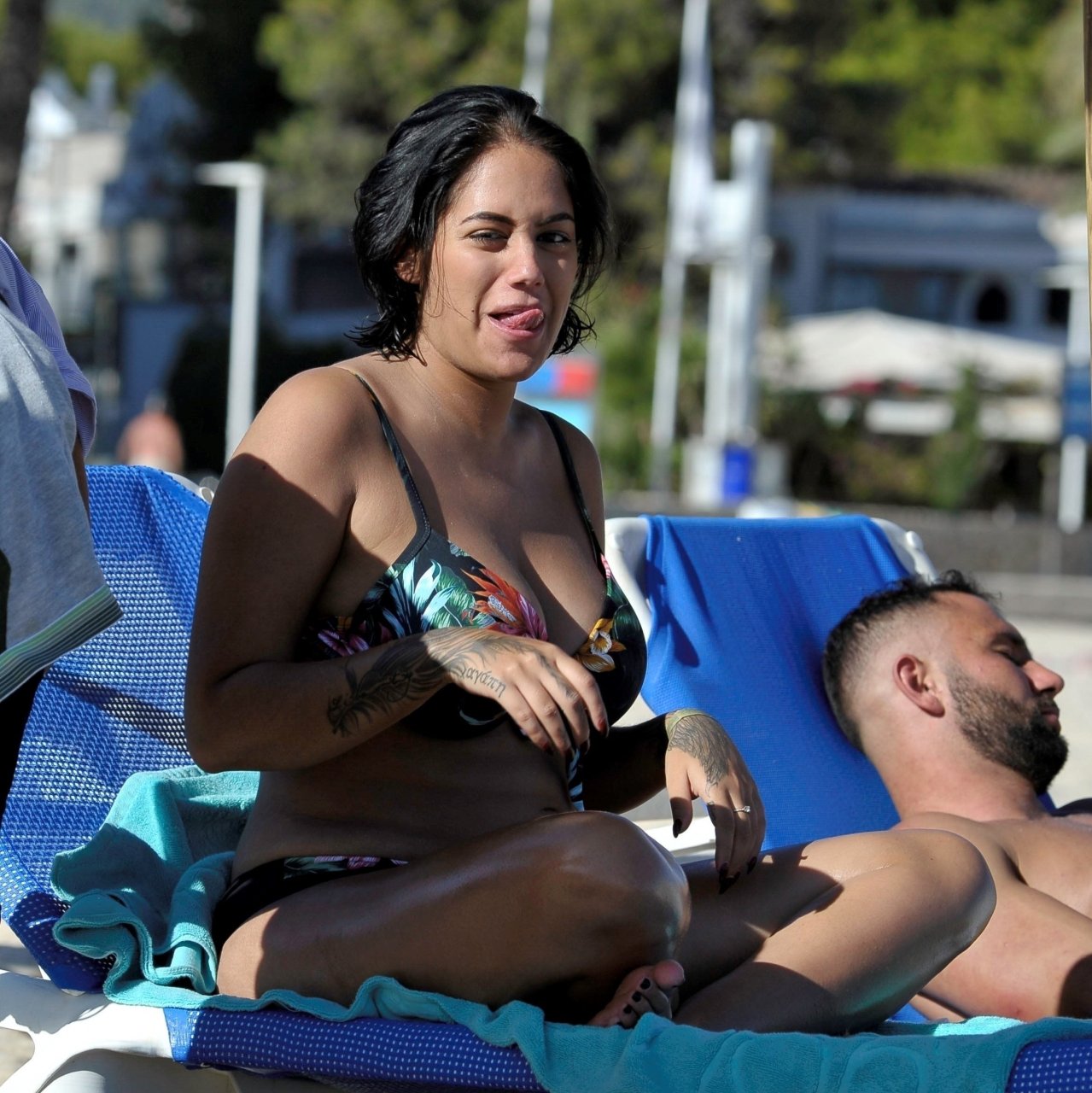 La estrella de “Love Island” Malin Andersson y su novio infiel Tom Kemp muestran afecto en público durante una escapada a España, mientras ella exhibe su barriga de embarazada y recibe un masaje en la playa, 10/06/2018.