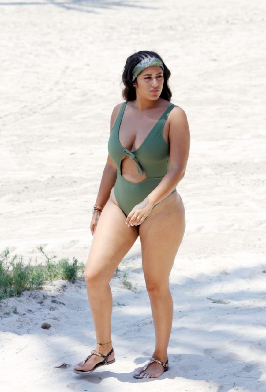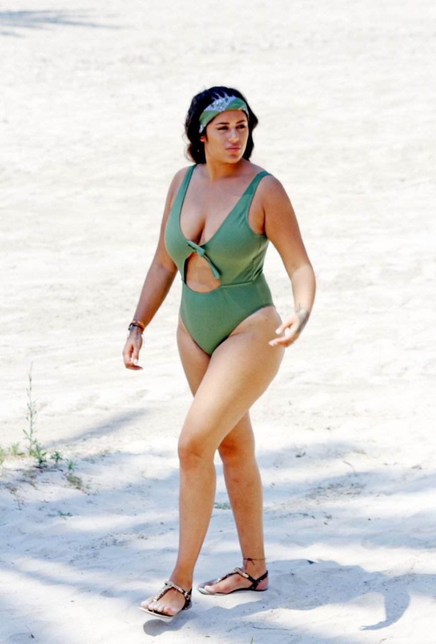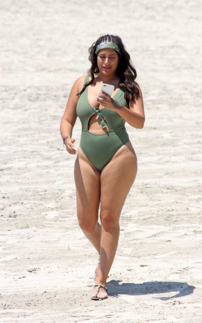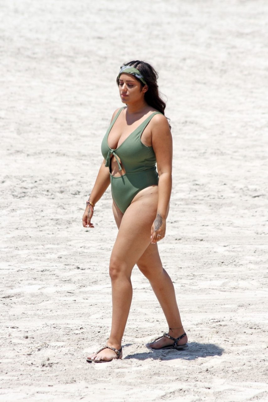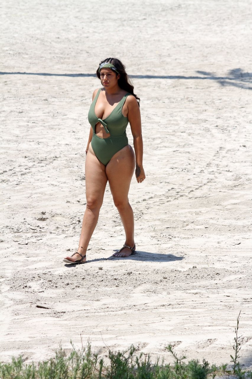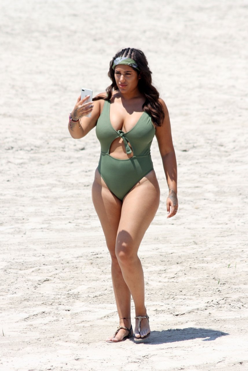 Malin llevaba un bikini de una pieza color verde oliva y se la vio sosteniendo su estómago (mano sobre la barriga de embarazada) y tomando selfies junto a una palmera durante su paseo. Malin, que recientemente anunció que está embarazada, muestra su barriga de embarazada y su levantamiento de pecho y glúteos 7k mientras caminaba por la playa de arena blanca.