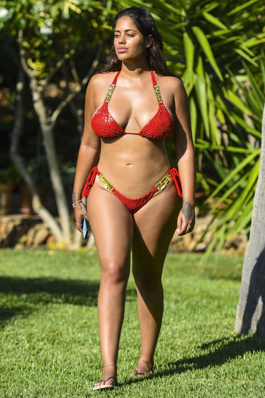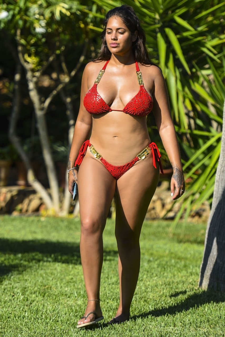 Malin Andersson embarazada fue vista de vacaciones con un bikini rojo después de dejar a su novio que le fue infiel en España, 07/02/2018.