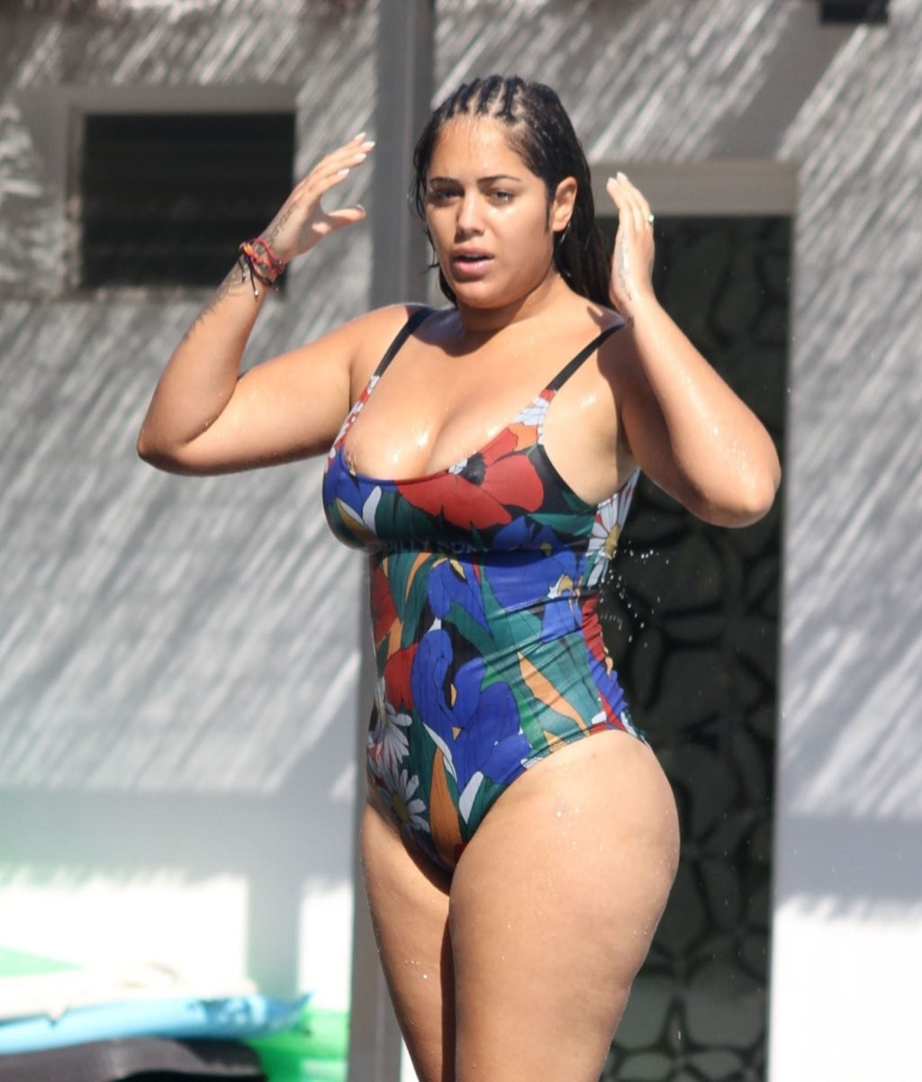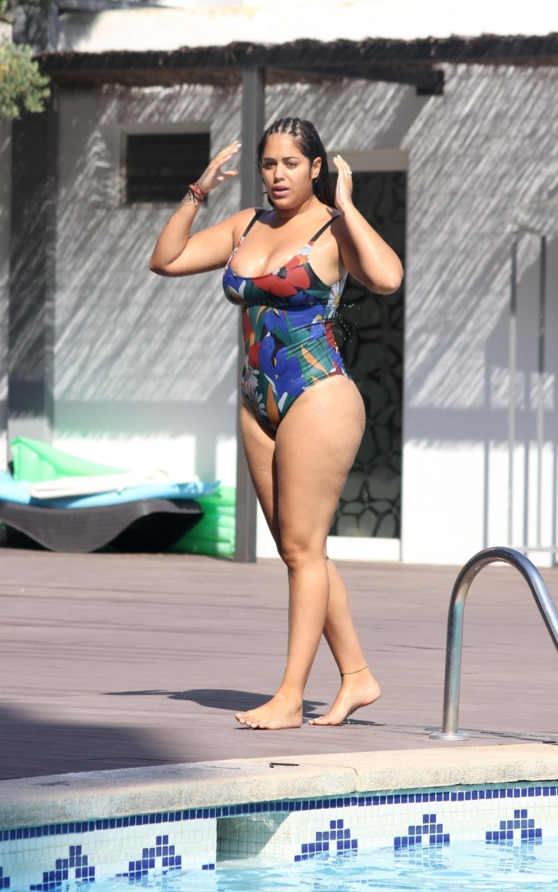 La ex estrella embarazada de “Love Island” Malin Andersson (25) luce genial con su traje de baño floral en Palma, España, 05/09/2018. Malin, quien reveló su embarazo sorpresa a principios de año, se tomó un poco de R&R (descanso y relajación) durante sus vacaciones y fue vista junto a la piscina en su resort español bañado por el sol.