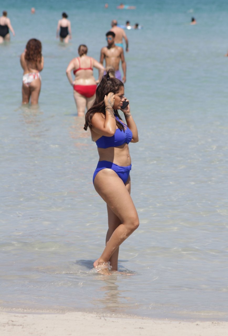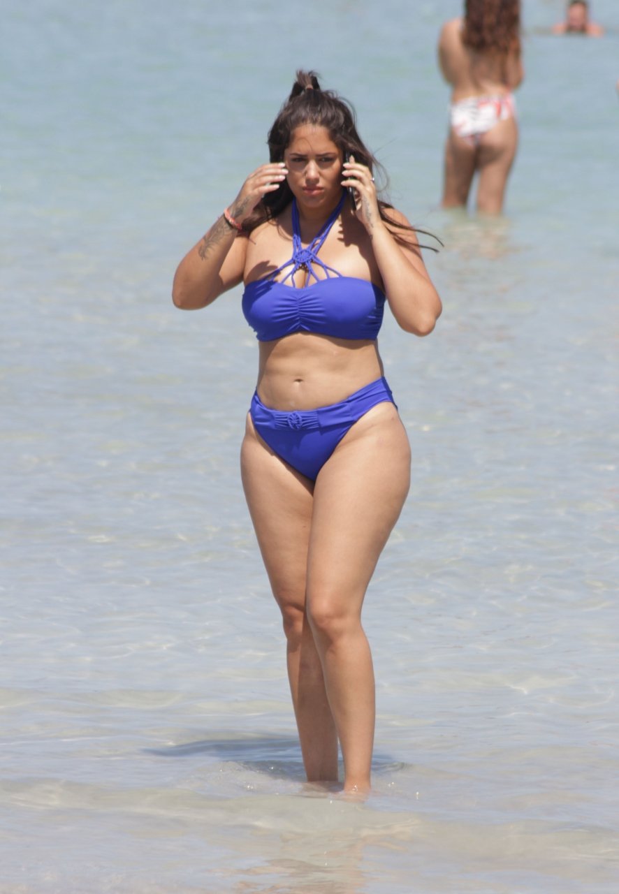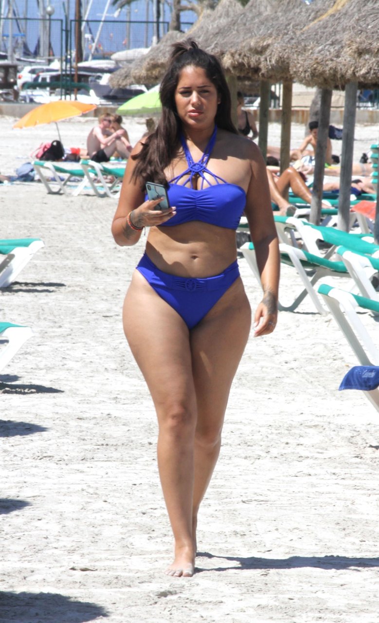 La ex estrella de Love Island Malin Andersson, de 25 años, estaba tomando el sol con su bikini azul durante sus vacaciones en Mallorca. Malin, quien recientemente anunció que está embarazada, muestra su barriga de embarazada y su levantamiento de pecho y glúteos 7k mientras caminaba por la playa de arena blanca.
