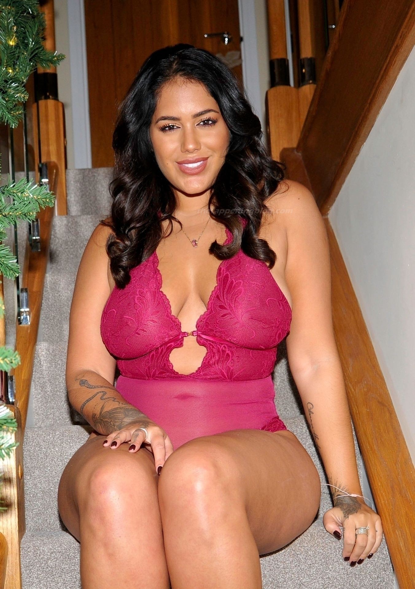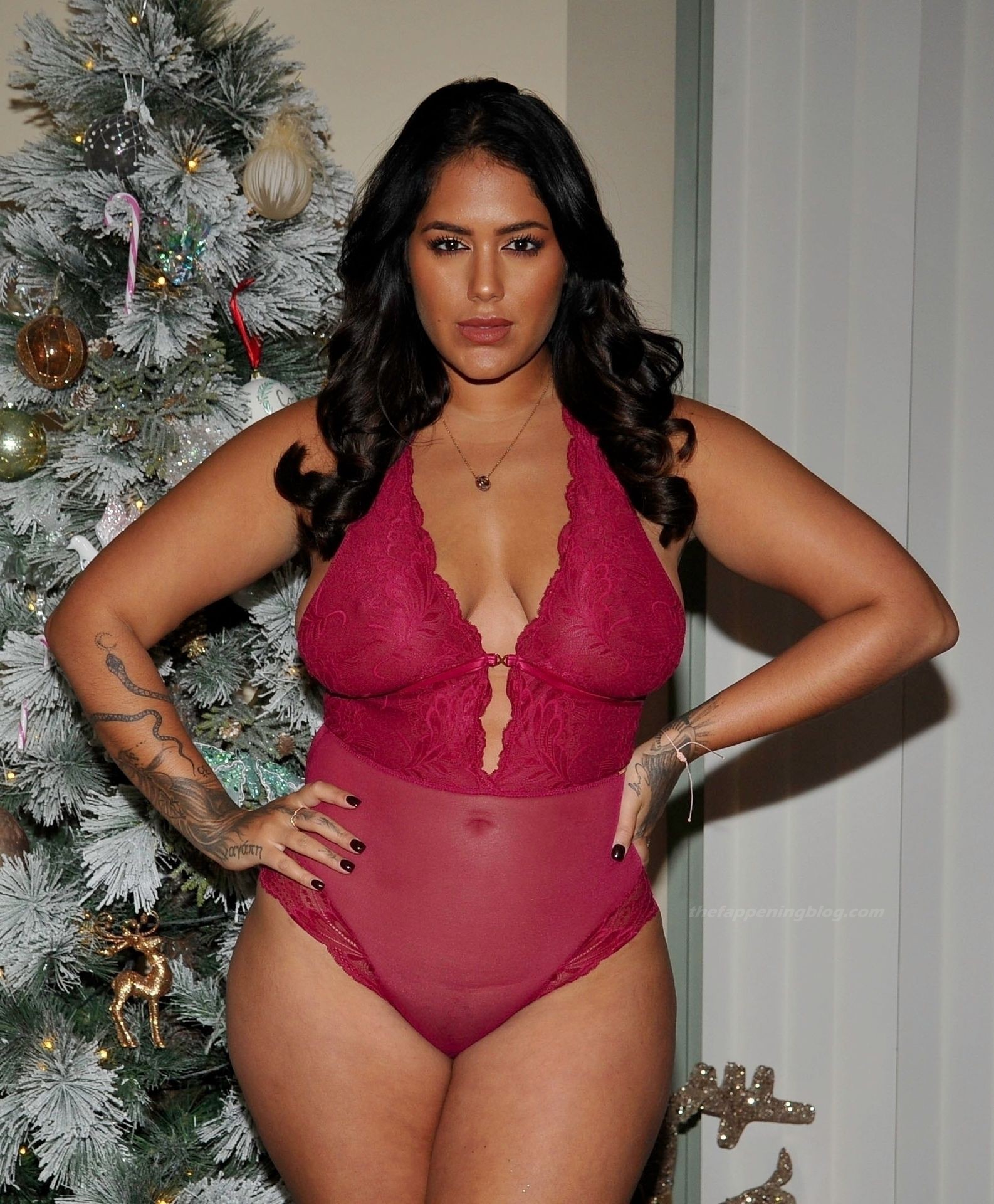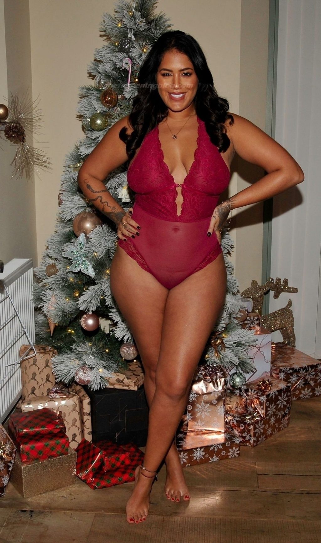 Love Island’s Malin Andersson muestra su figura curvilínea en la sesión de fotos navideña de Mirror Image Style en Londres, 17/12/2020.