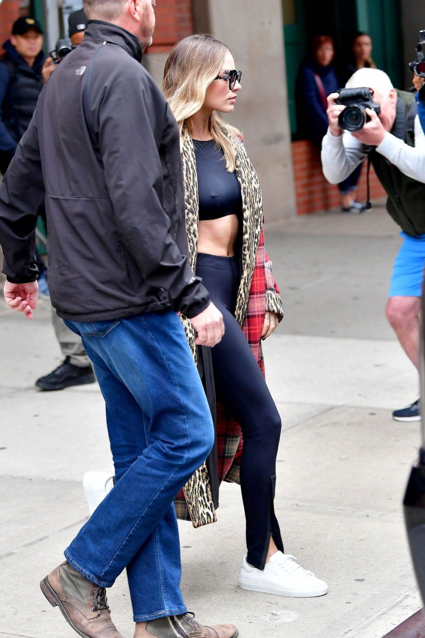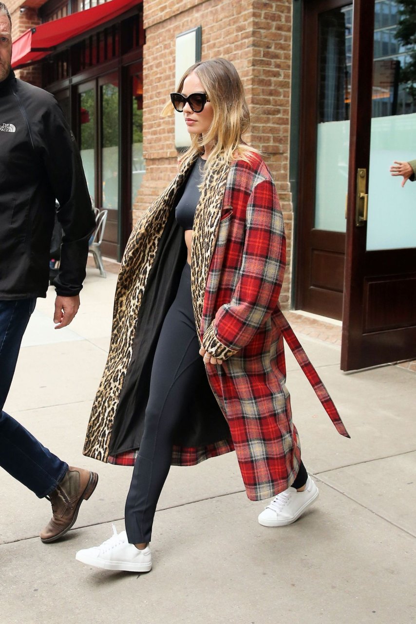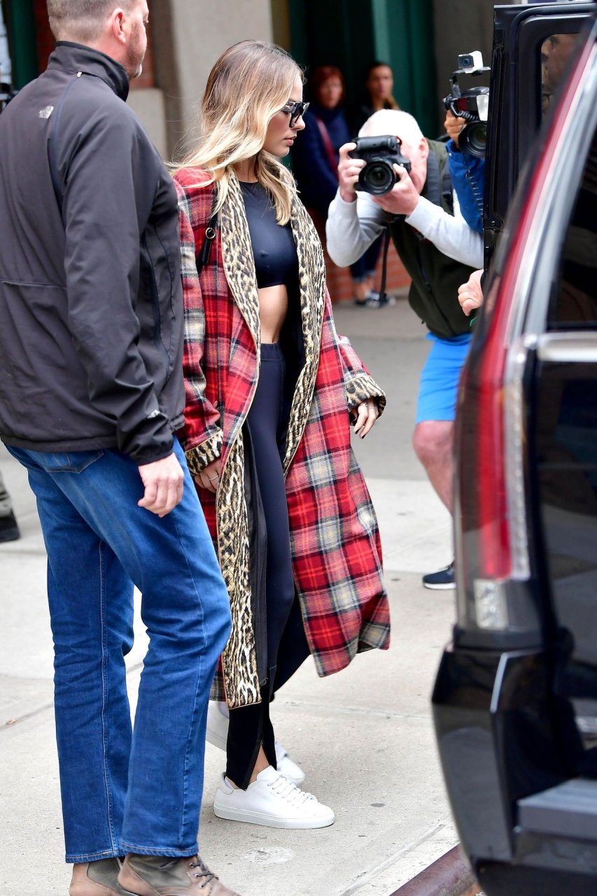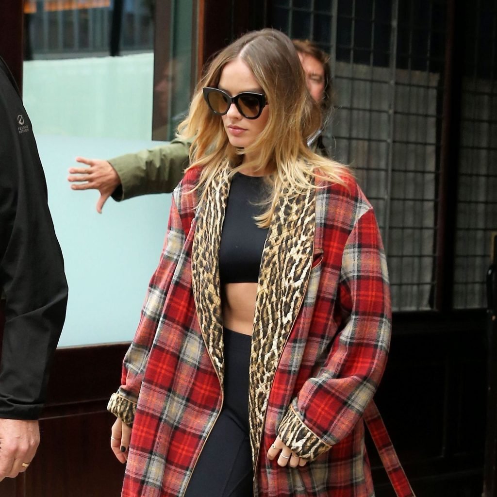 Impresionante Margot Robbie se aventuró por el lado salvaje mientras paseaba por la ciudad de Nueva York, 07/10/2019. La estrella de 29 años de “El lobo de Wall Street” mostró sus abdominales y pezón perforado con un top corto negro junto con un abrigo de franela con estampado de leopardo.