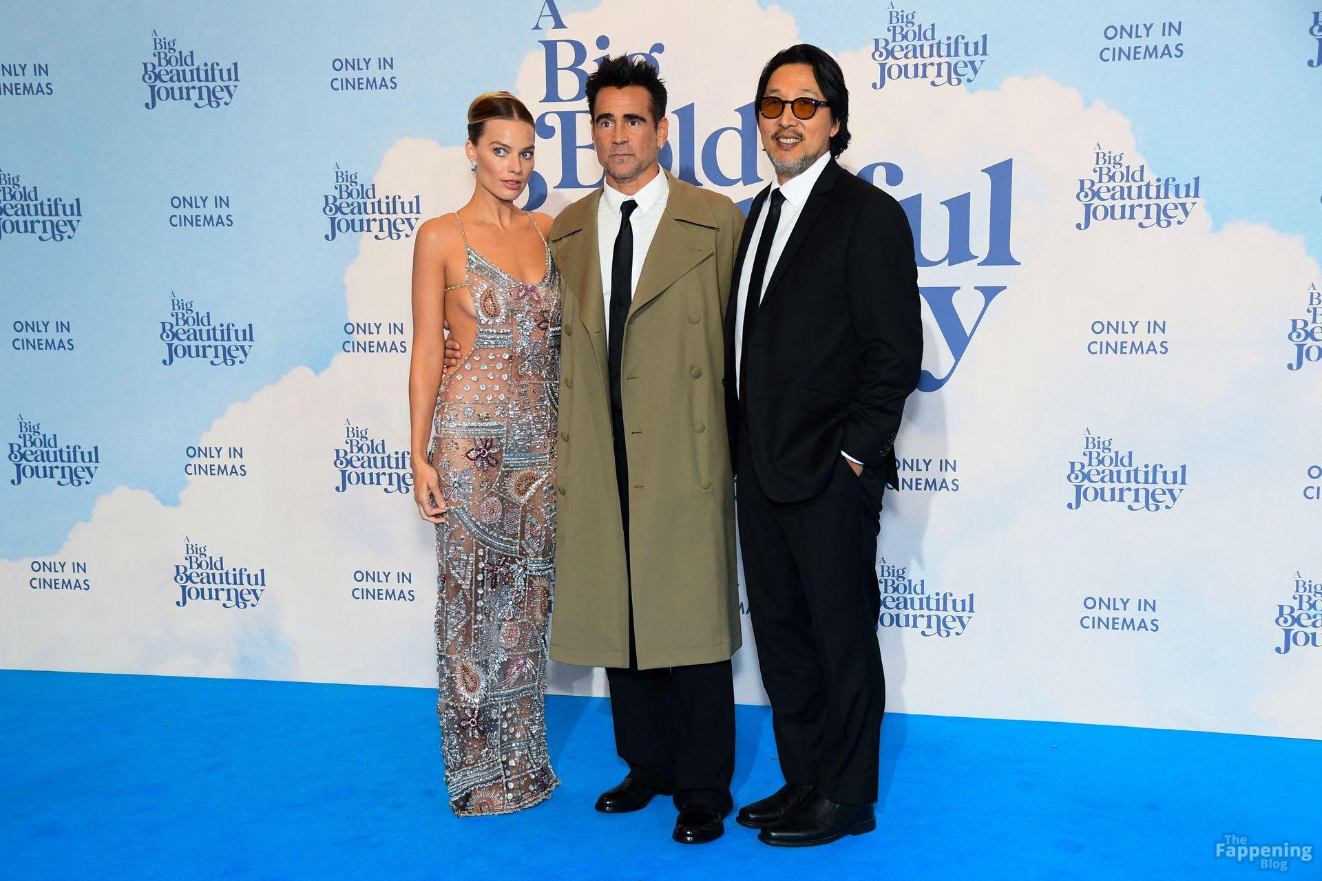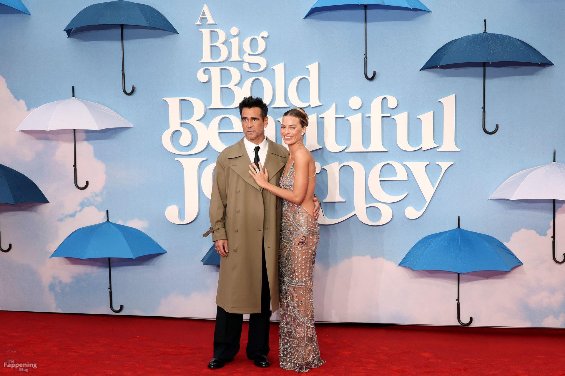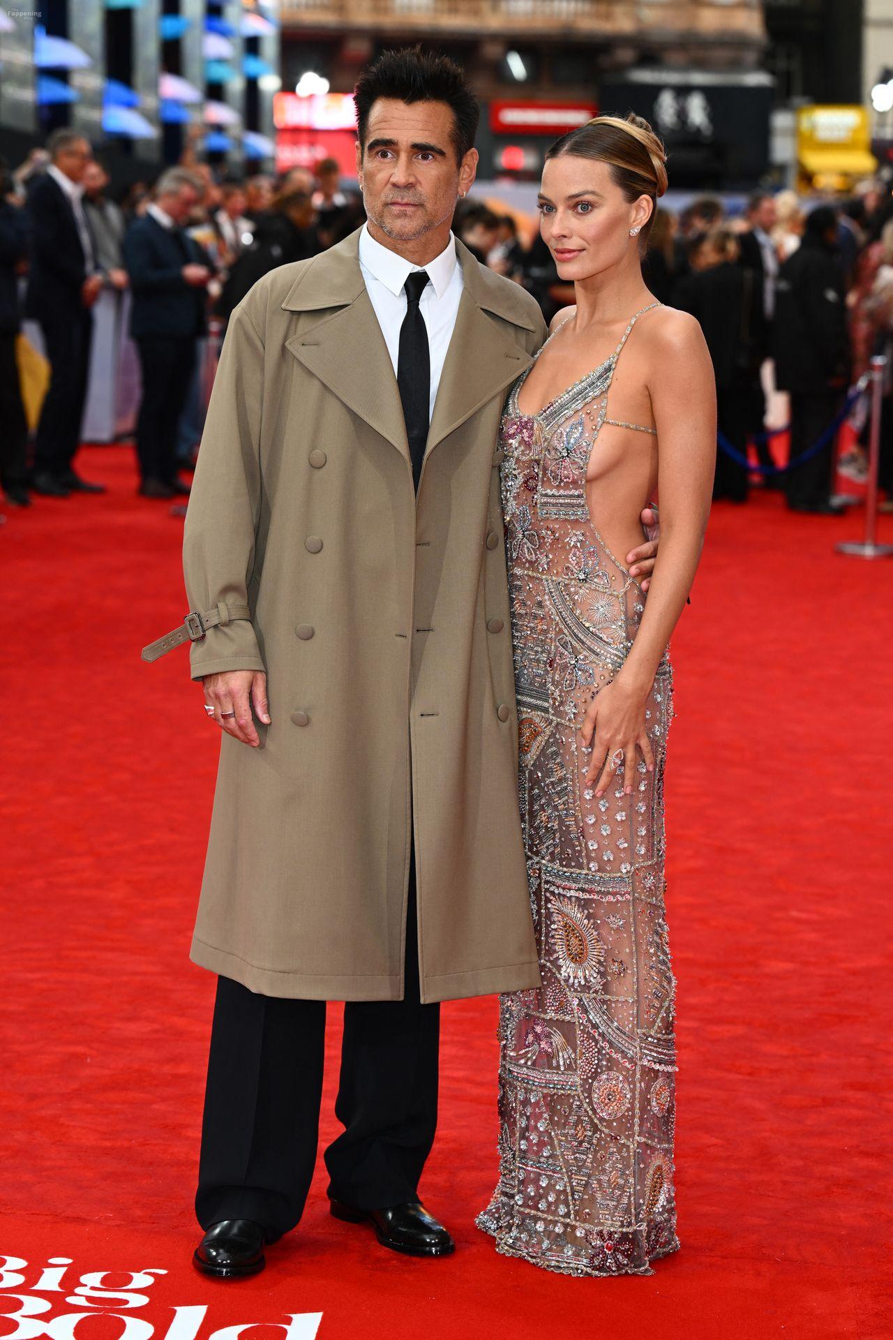 La actriz Margot Robbie lució espectacular con un vestido transparente mientras llegaba a la alfombra roja del estreno de “A Big Bold Beautiful Journey” en Londres.
