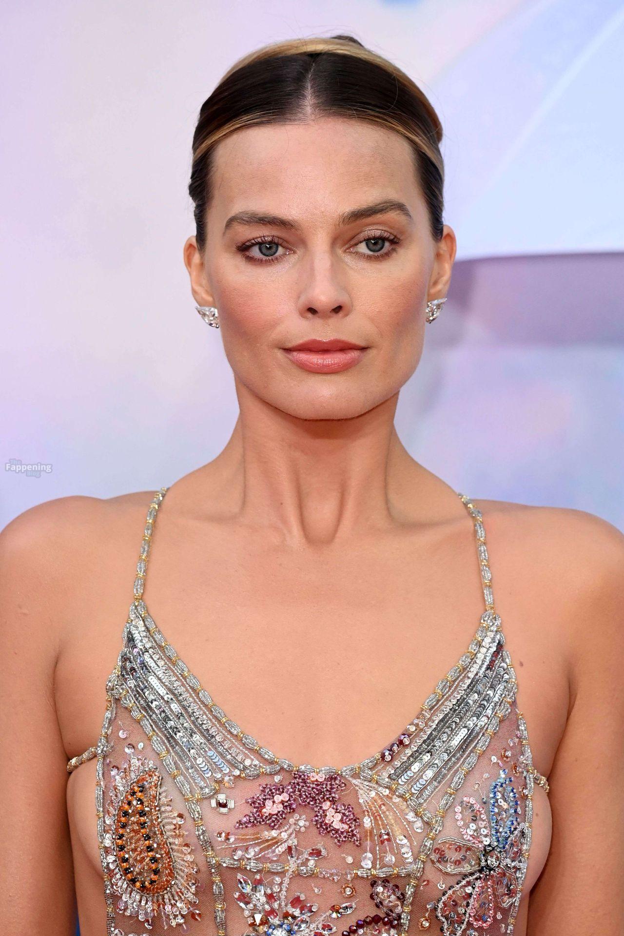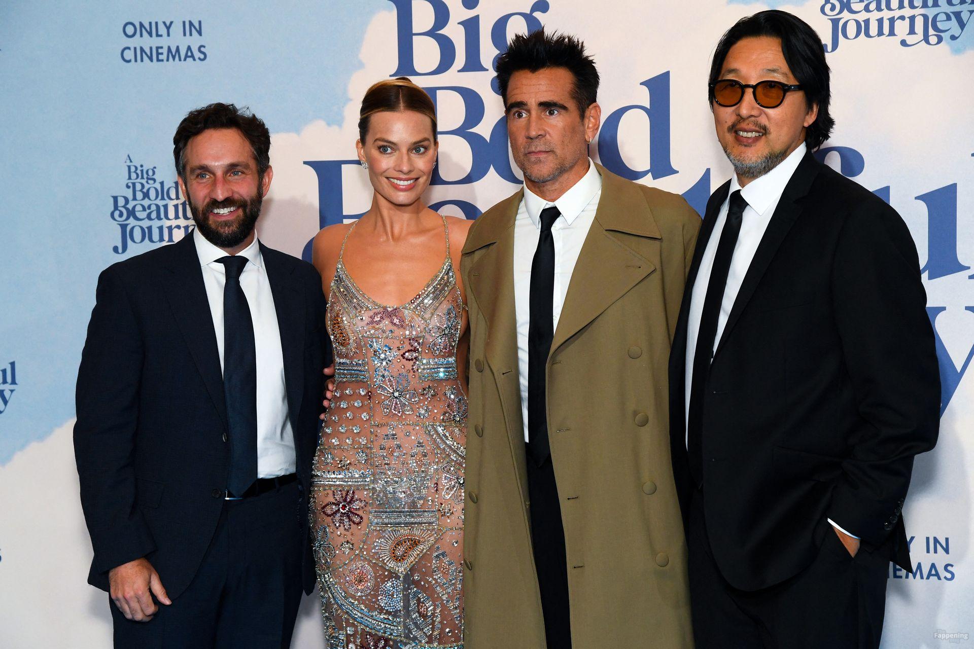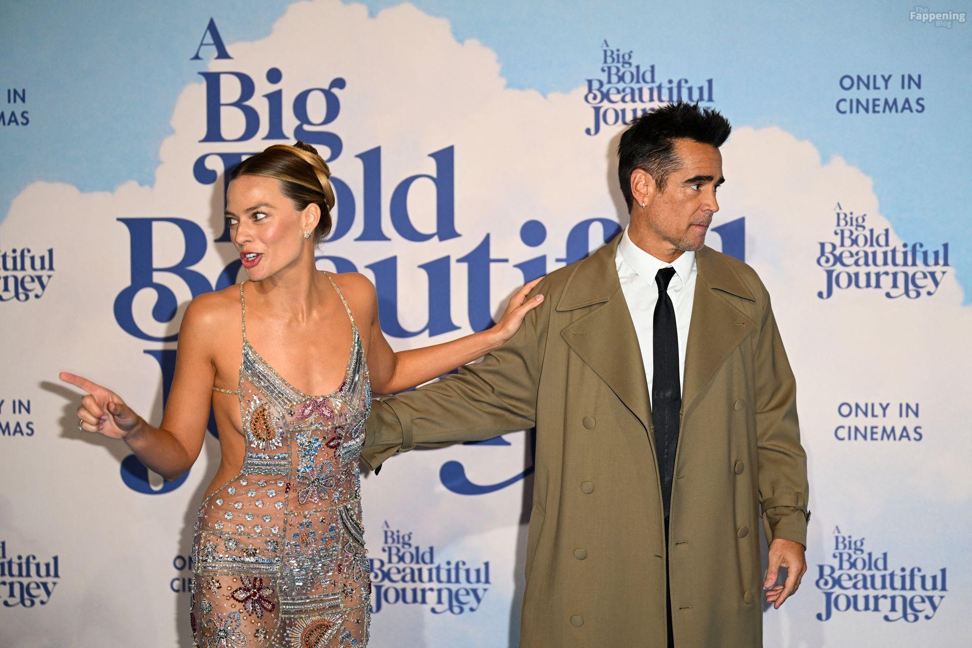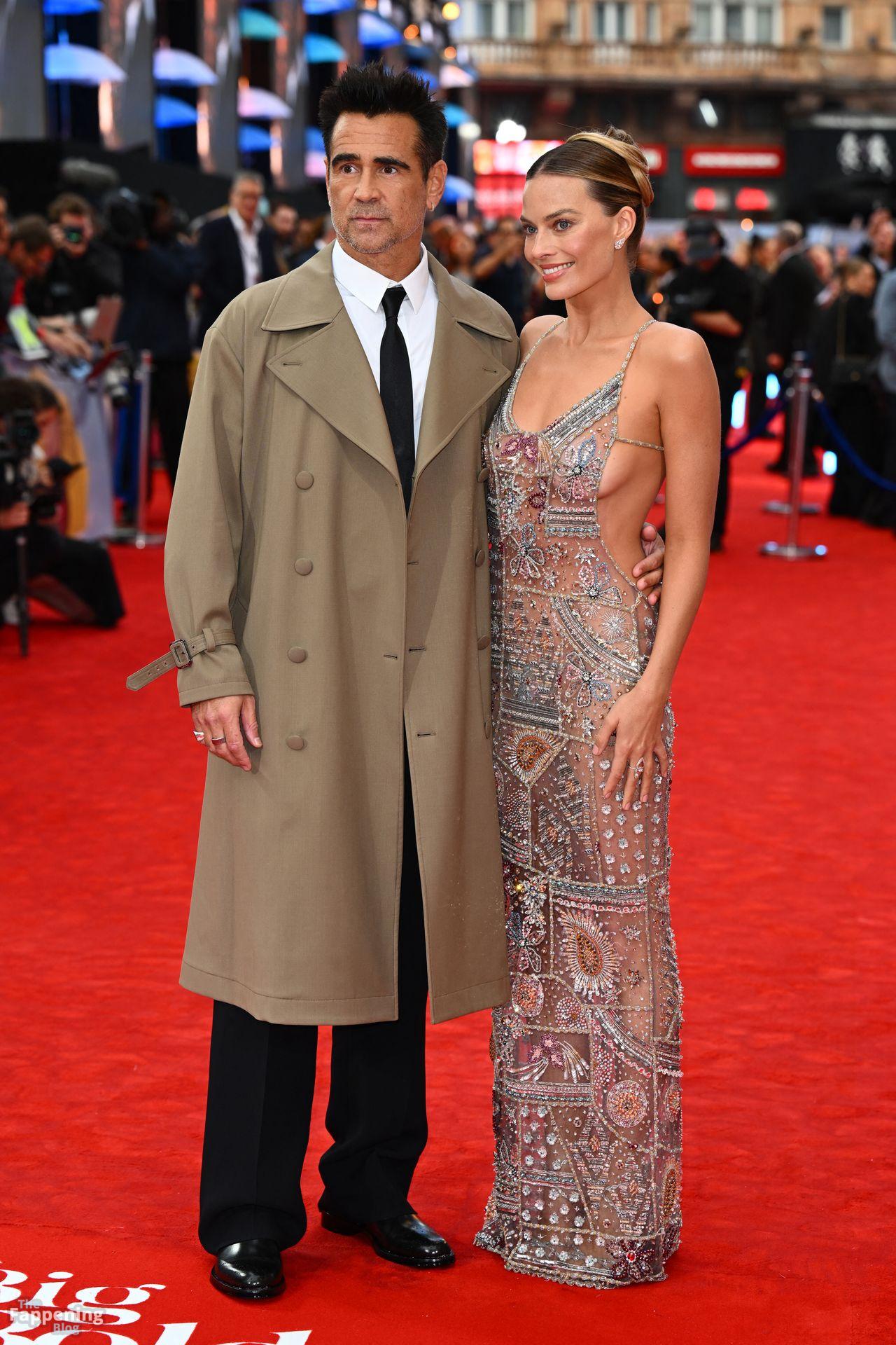 La actriz Margot Robbie lució espectacular con un vestido transparente mientras llegaba a la alfombra roja del estreno de “A Big Bold Beautiful Journey” en Londres.