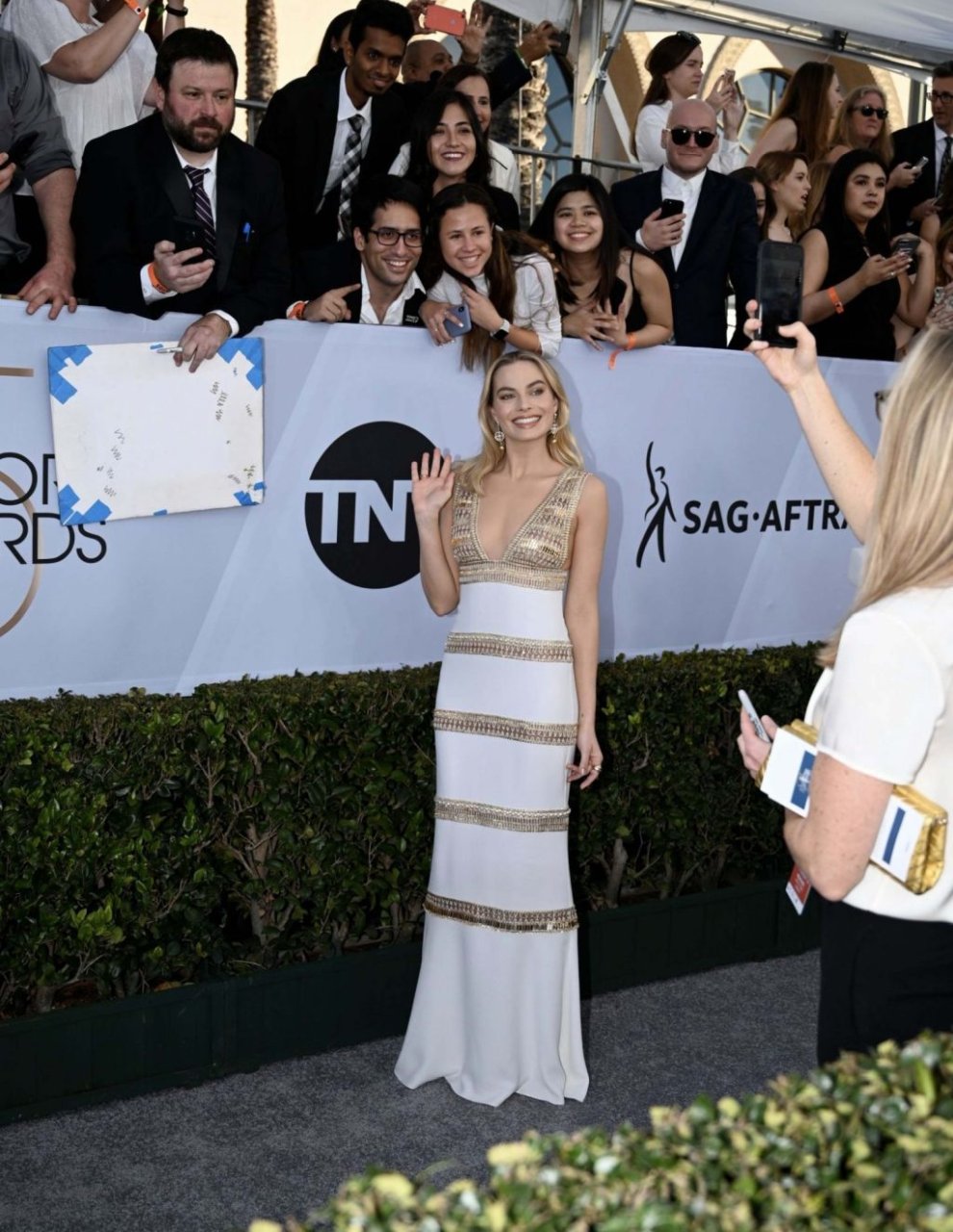 Margot Robbie fue vista en la 25ª Entrega Anual de los Premios del Sindicato de Actores de Pantalla en Los Ángeles, 27/01/2019. La actriz de 28 años mostró su escote con un vestido ajustado y una parte superior transparente en la alfombra roja.