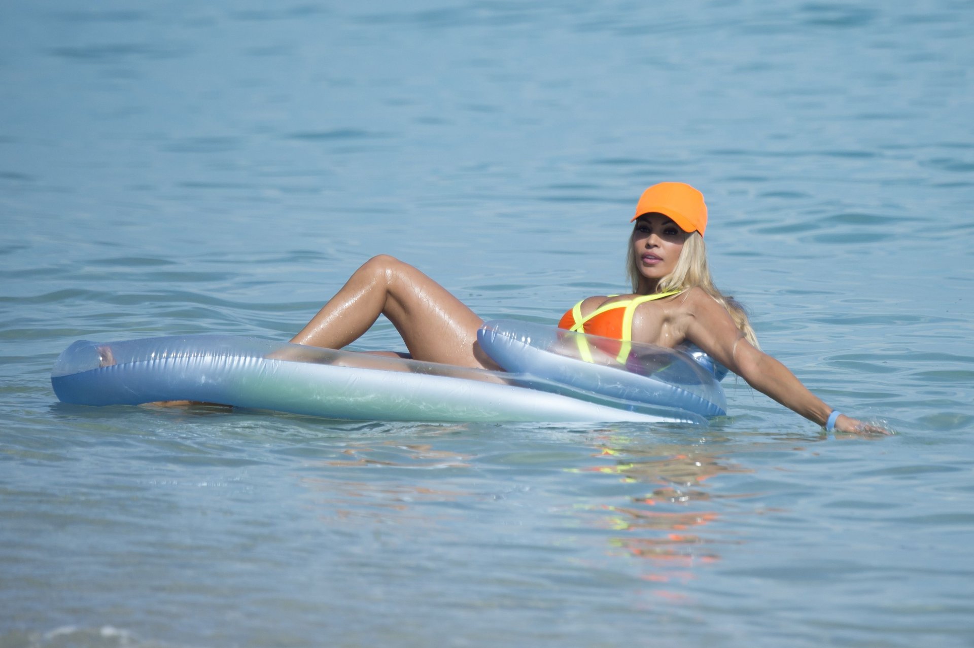 Maria Hering lleva un bikini neón en Miami Beach, 25/01/2017. ¡Se asoma una pequeña areola! Maria Hering (Yota) es una modelo alemana. Edad: 28.