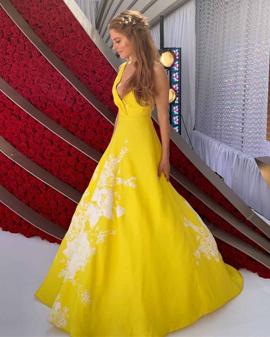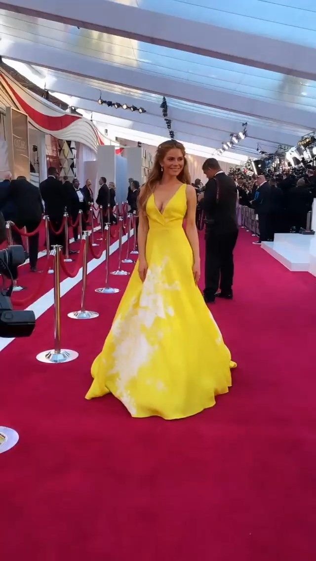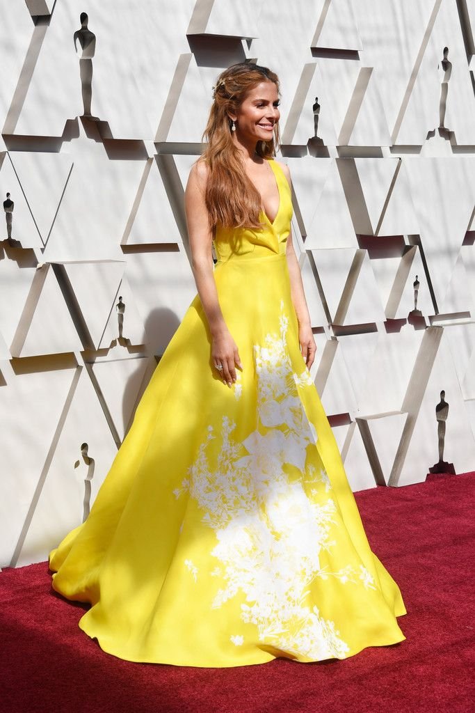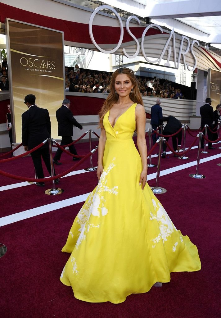 Actriz Maria Menounos (40) muestra su escote vistiendo un vestido amarillo en la 91ª Entrega Anual de los Premios de la Academia en Hollywood, 24/02/2019.