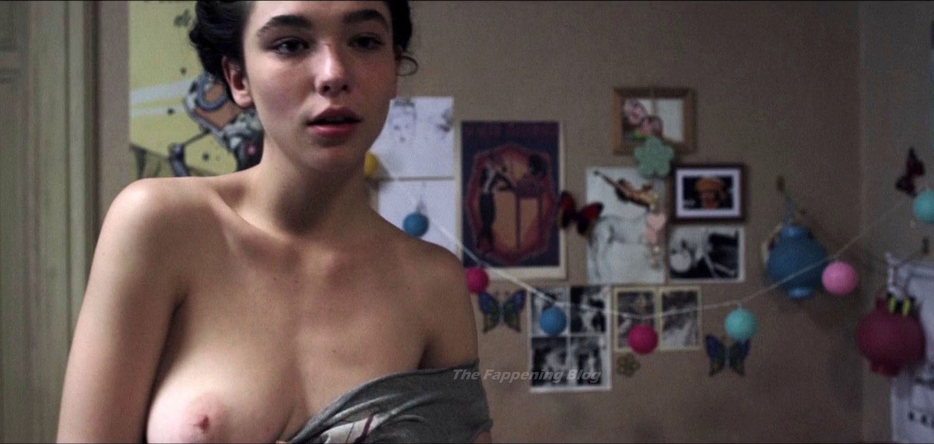 Matilda De Angelis realiza un baile sexy usando una camiseta de hombros descubiertos que se sube hasta casi exponer sus pechos antes de hacerlo realmente cuando deja caer la camiseta, guiñando un ojo mientras está topless. Se está quitando la camiseta para quedar topless, juntando sus pechos con las manos mientras baila un poco frente a una webcam. Luego se sienta frente a la cámara y vemos un poco más de sus pechos cuando mira la pantalla de su computadora a las personas que la están viendo y riendo. Después apaga la pantalla y se vuelve a poner la camiseta.