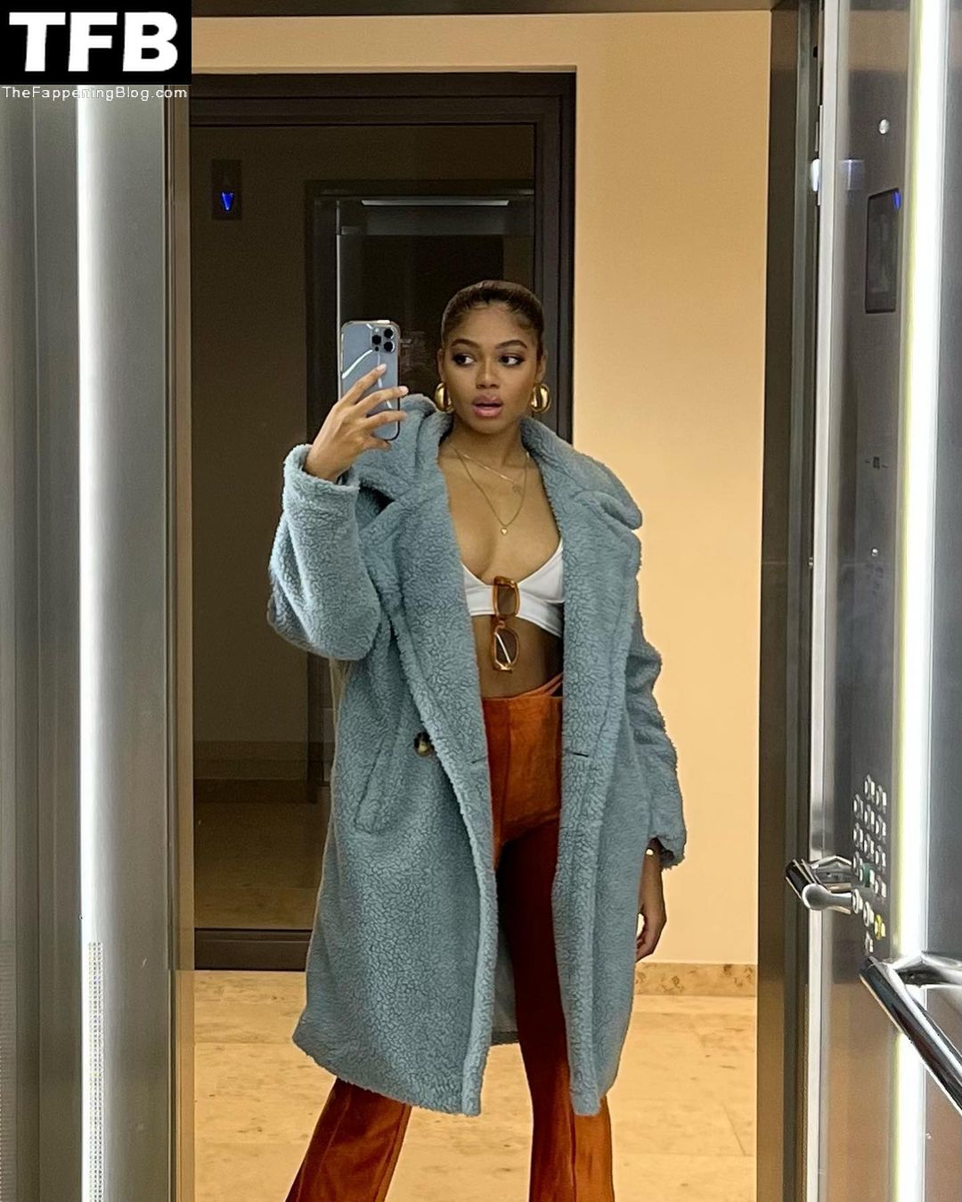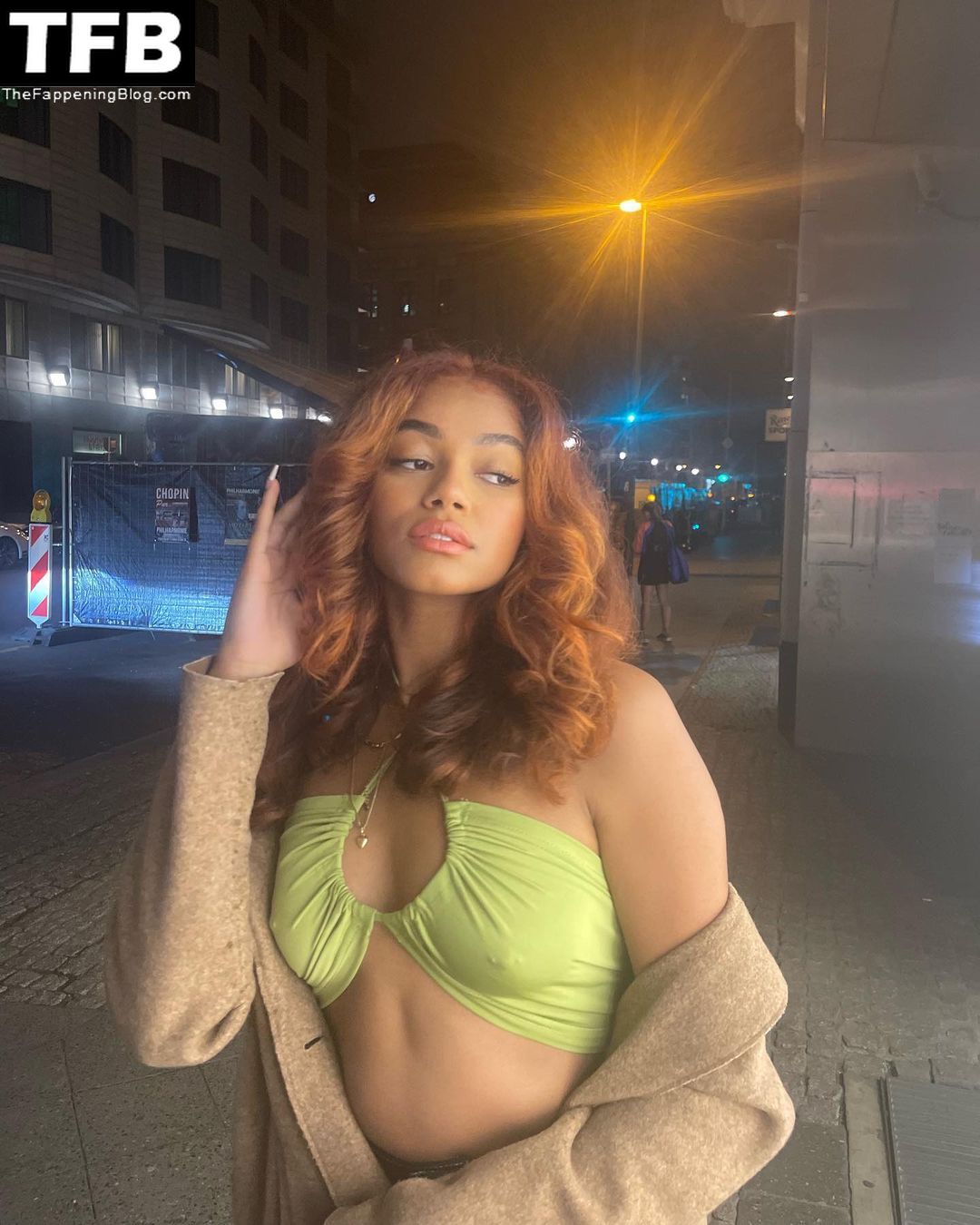 Mira las fotos de modelaje y redes sociales de Maureen Ugodi, mostrando sus piernas y pechos sexys con un pezón perforado.
