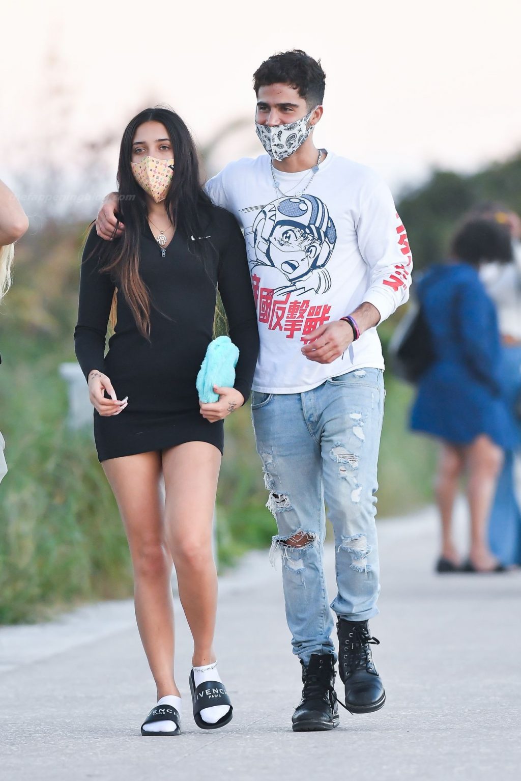 El ex prometido de Demi Lovato, Max Ehrich, y su nueva y atractiva novia Mariah Angeliq dan un paseo al atardecer en Miami Beach, 27/11/2020.