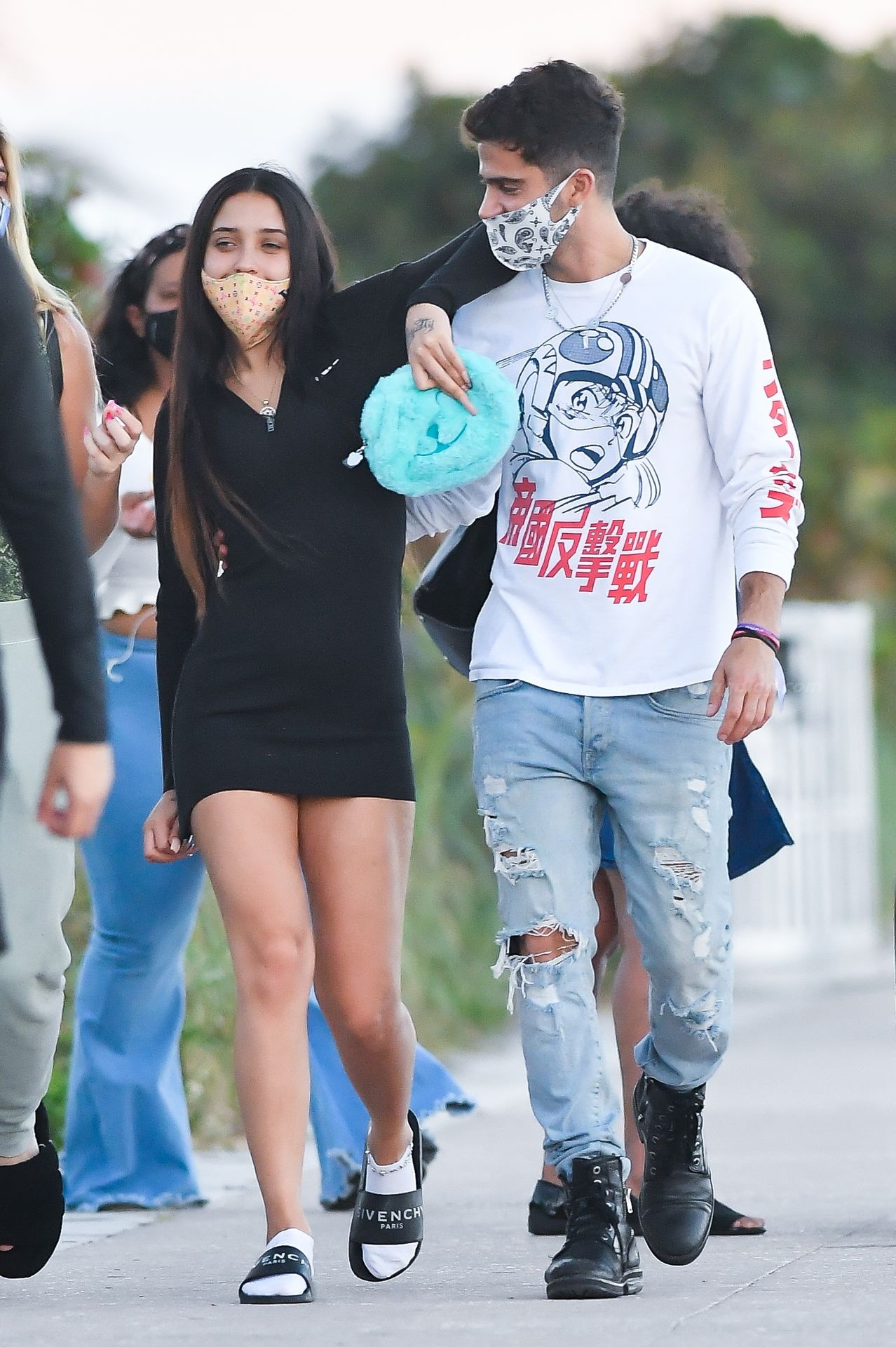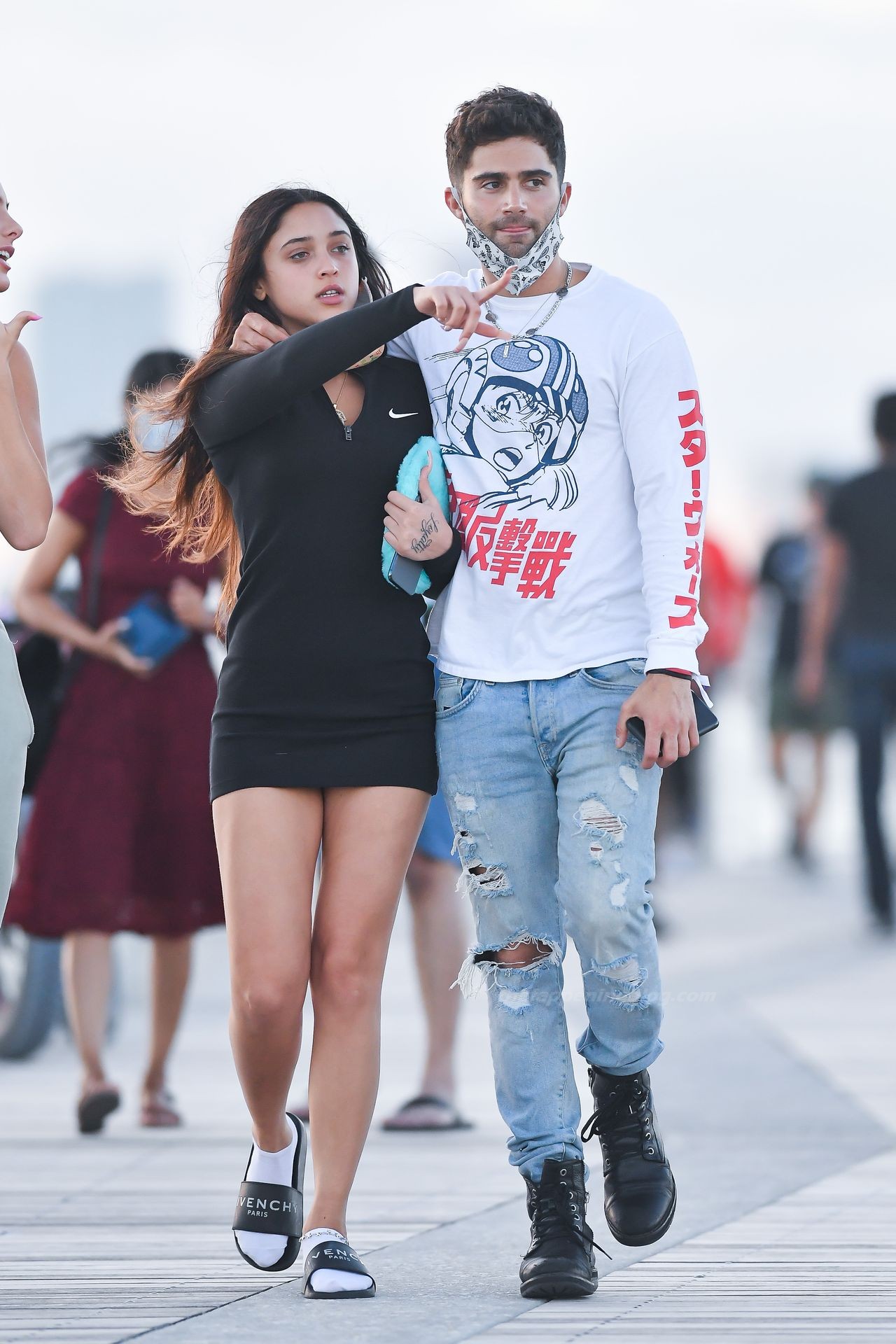 El ex prometido de Demi Lovato, Max Ehrich, y su nueva y atractiva novia Mariah Angeliq dan un paseo al atardecer en Miami Beach, 27/11/2020.