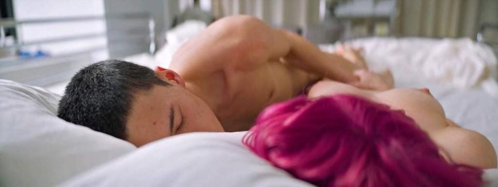 Mira la nueva escena de sexo desnuda de Maxime D.-Pomerleau en “Prends-moi” (también conocido como Take Me, 2014), donde puedes ver a esta actriz con cabello rosa acostada completamente desnuda junto a su amante, y están durmiendo. Después de un rato, él toca los grandes pechos de Pomerleau con pezones duros. ¡Luego ella toma su mano y se frota su vagina peluda con ella!