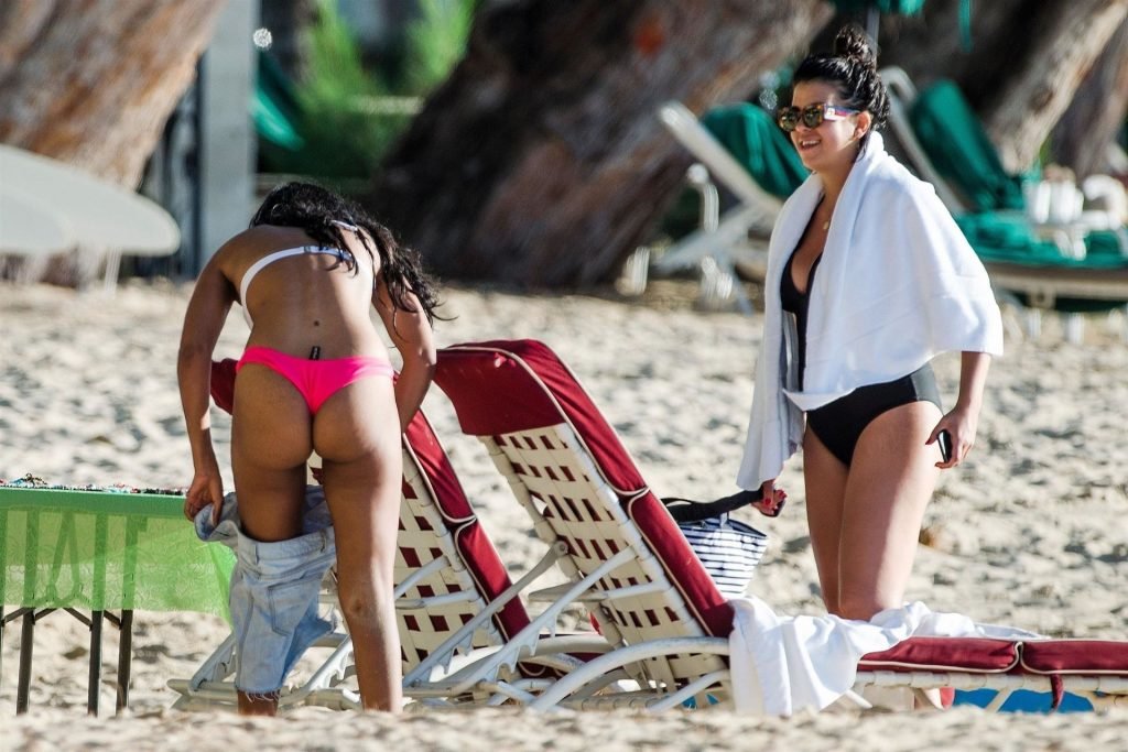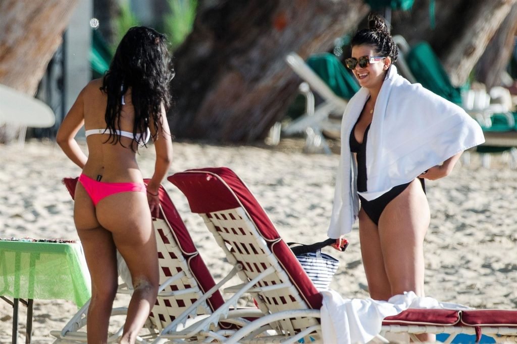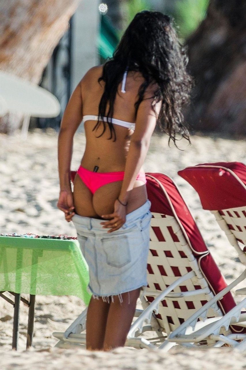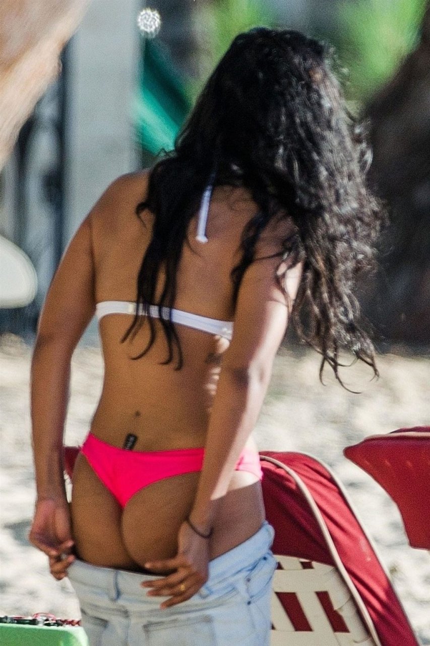 Presentadora británica Maya Jama fue vista disfrutando de un día en la playa con una amiga mientras estaba de vacaciones en Barbados, 12/06/2018. Maya mostró su cuerpo tonificado con un top de bikini blanco y pantalones rosas.