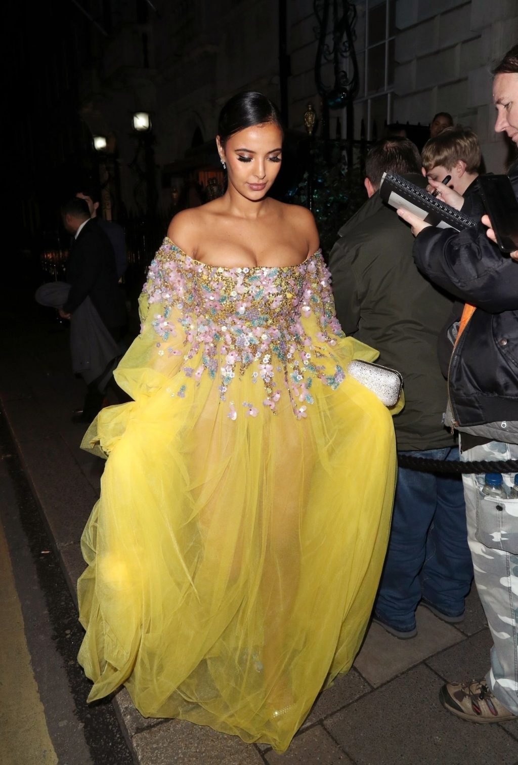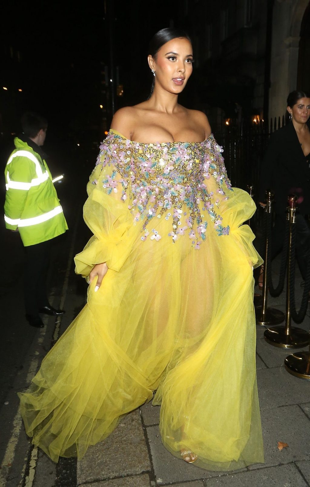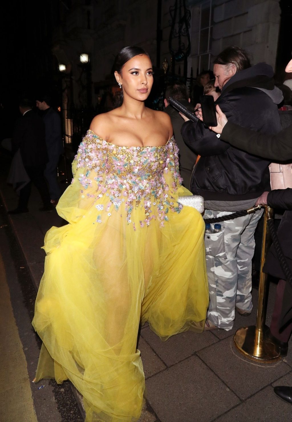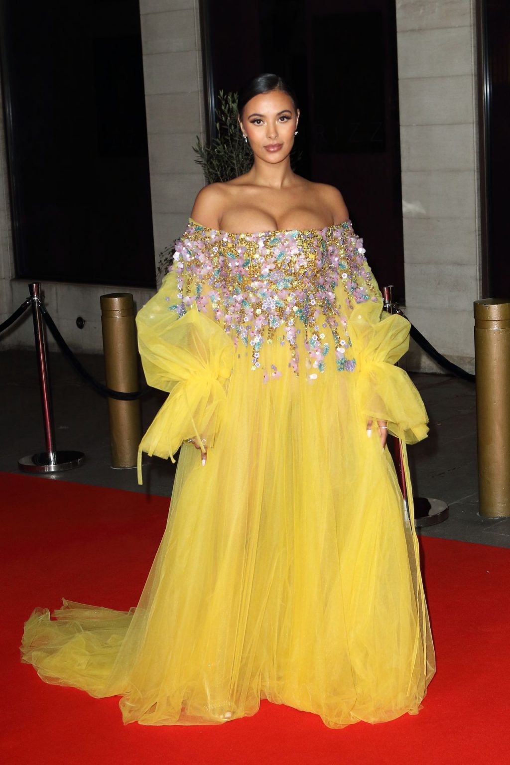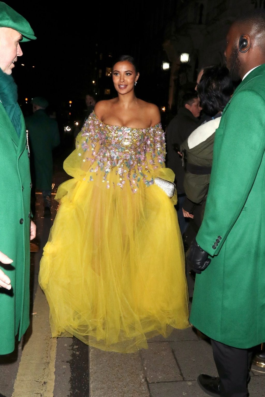 La presentadora de televisión con busto Maya Jama fue fotografiada mientras asistía a la fiesta Celebrate Fashion and Film de British Vogue y Tiffany & Co. en Annabel’s en Londres, 02/02/2020.