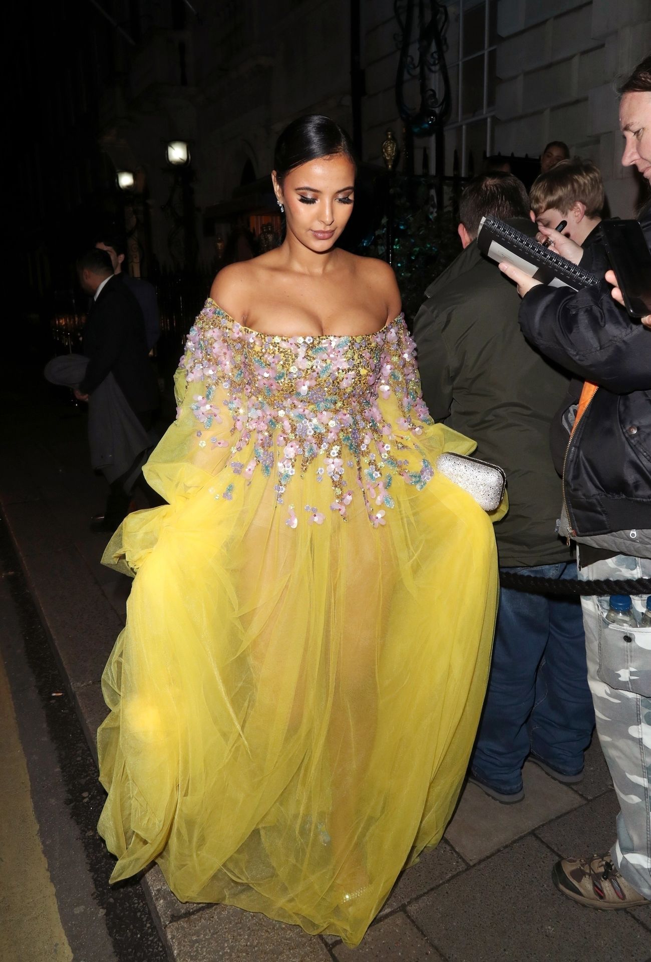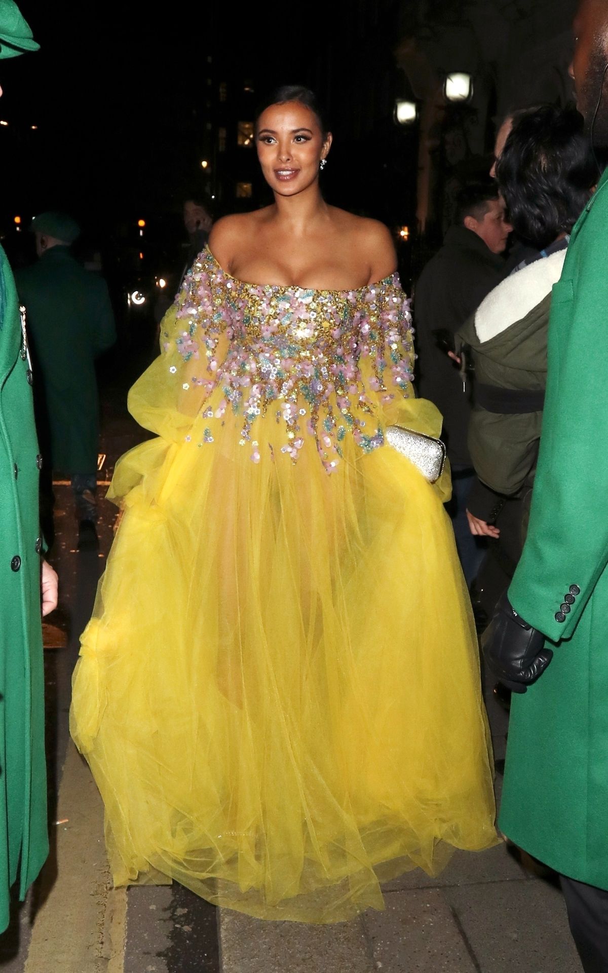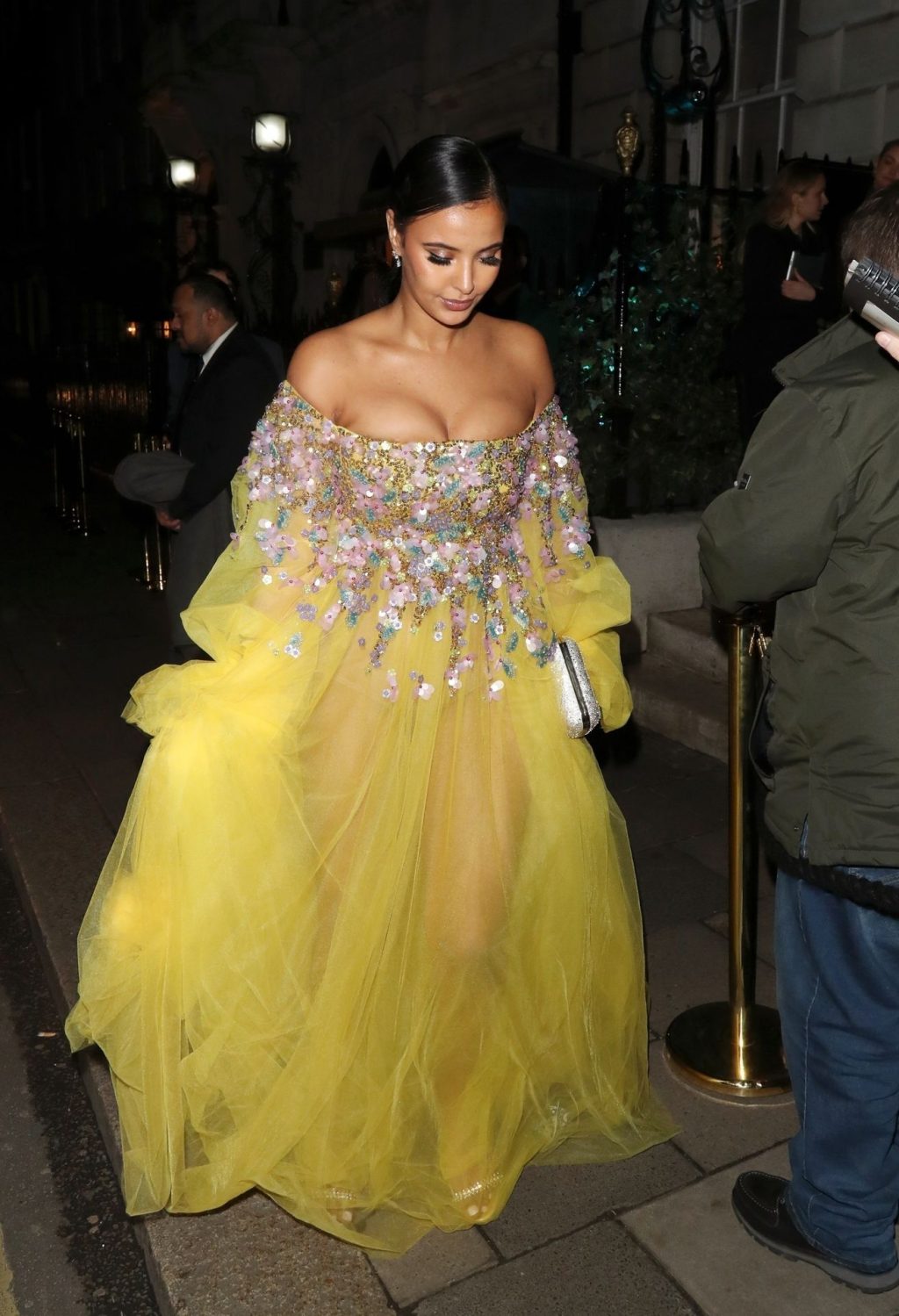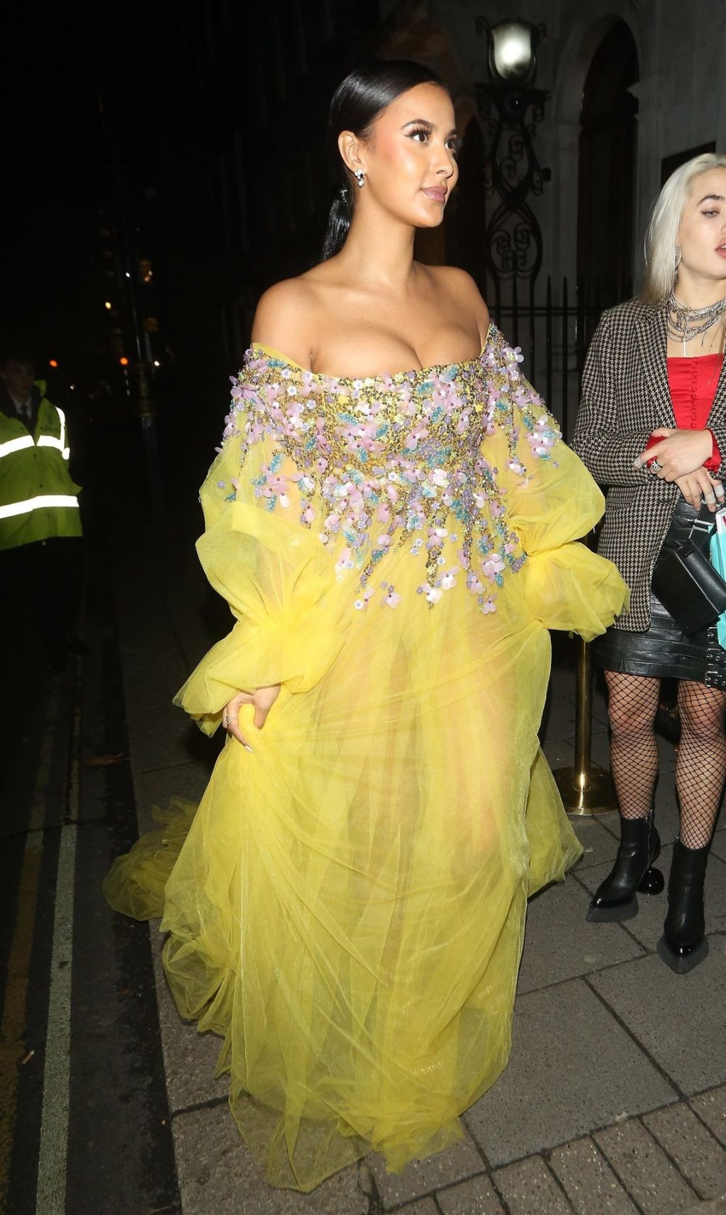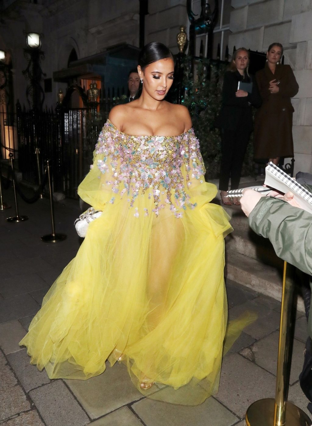 La presentadora de televisión con busto Maya Jama fue fotografiada mientras asistía a la fiesta Celebrate Fashion and Film de British Vogue y Tiffany & Co. en Annabel’s en Londres, 02/02/2020.