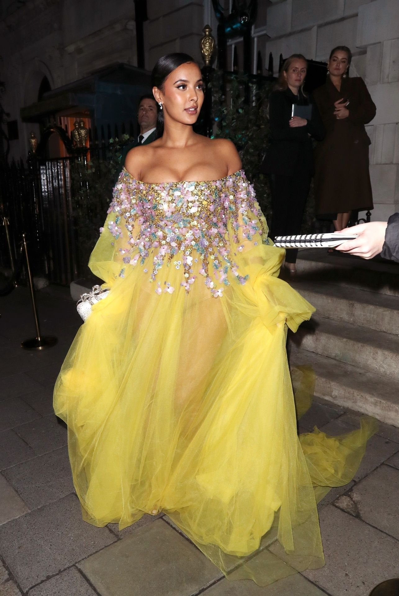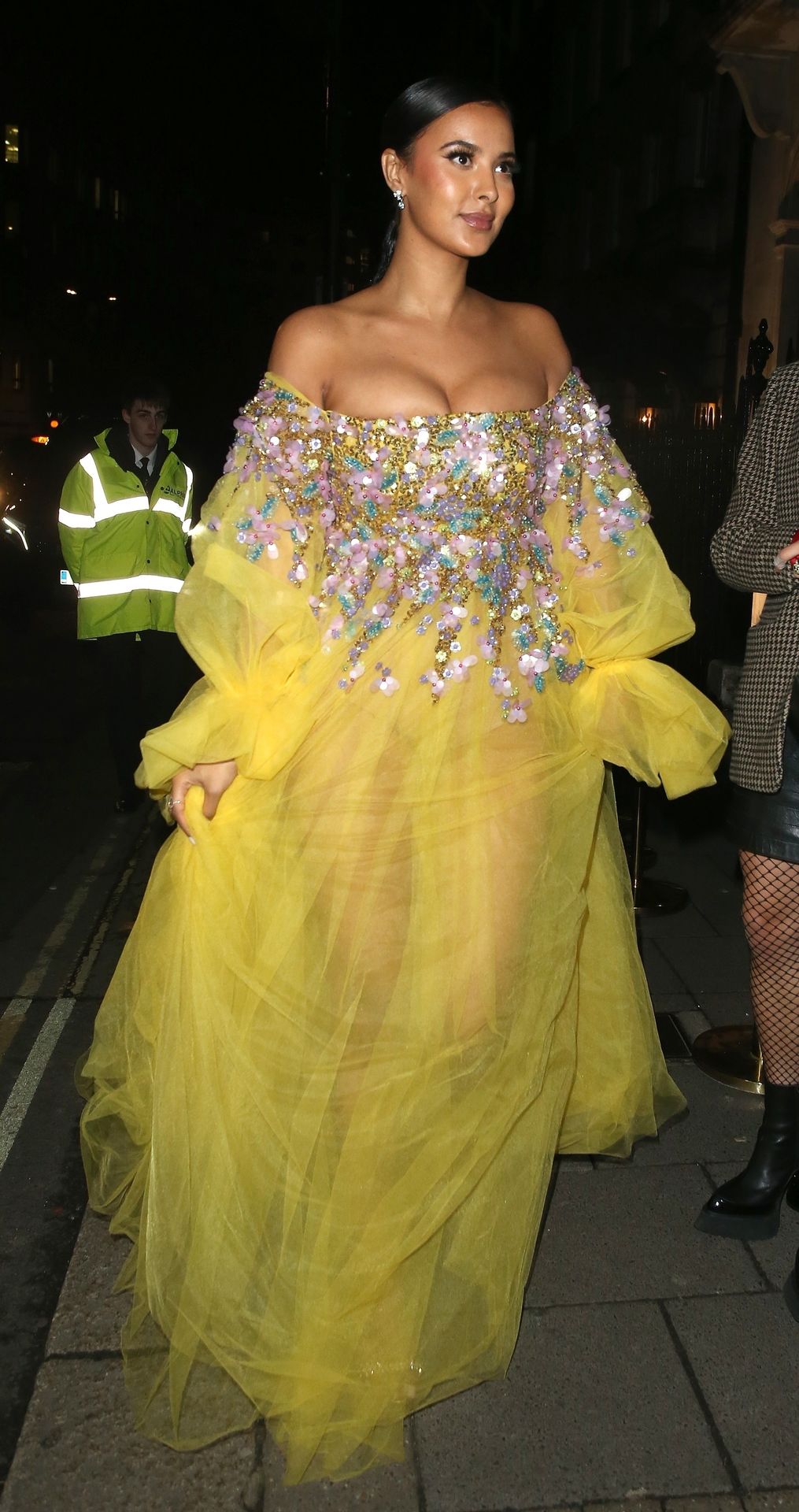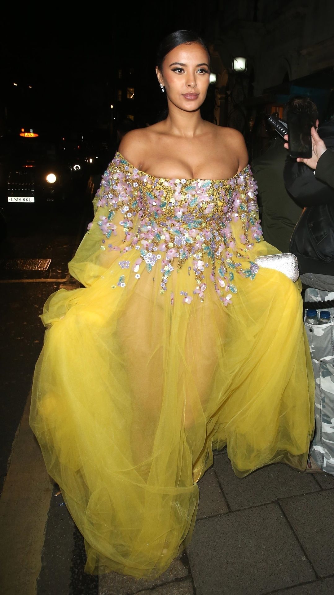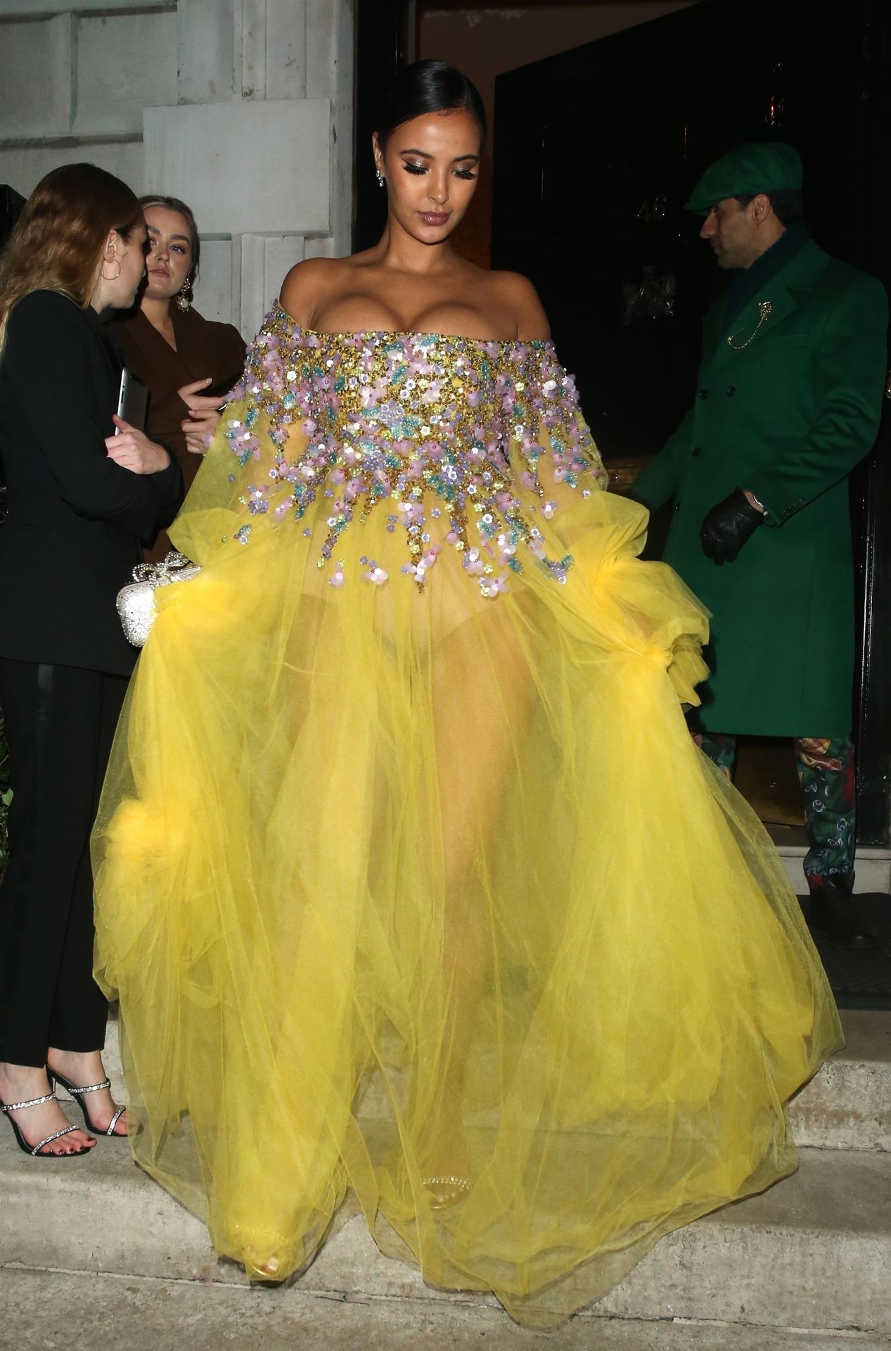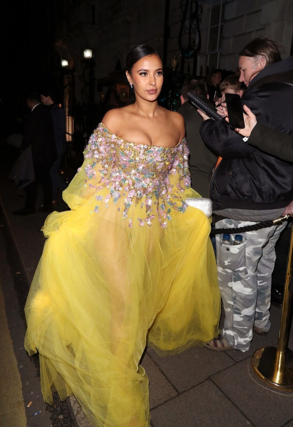 La presentadora de televisión con busto Maya Jama fue fotografiada mientras asistía a la fiesta Celebrate Fashion and Film de British Vogue y Tiffany & Co. en Annabel’s en Londres, 02/02/2020.