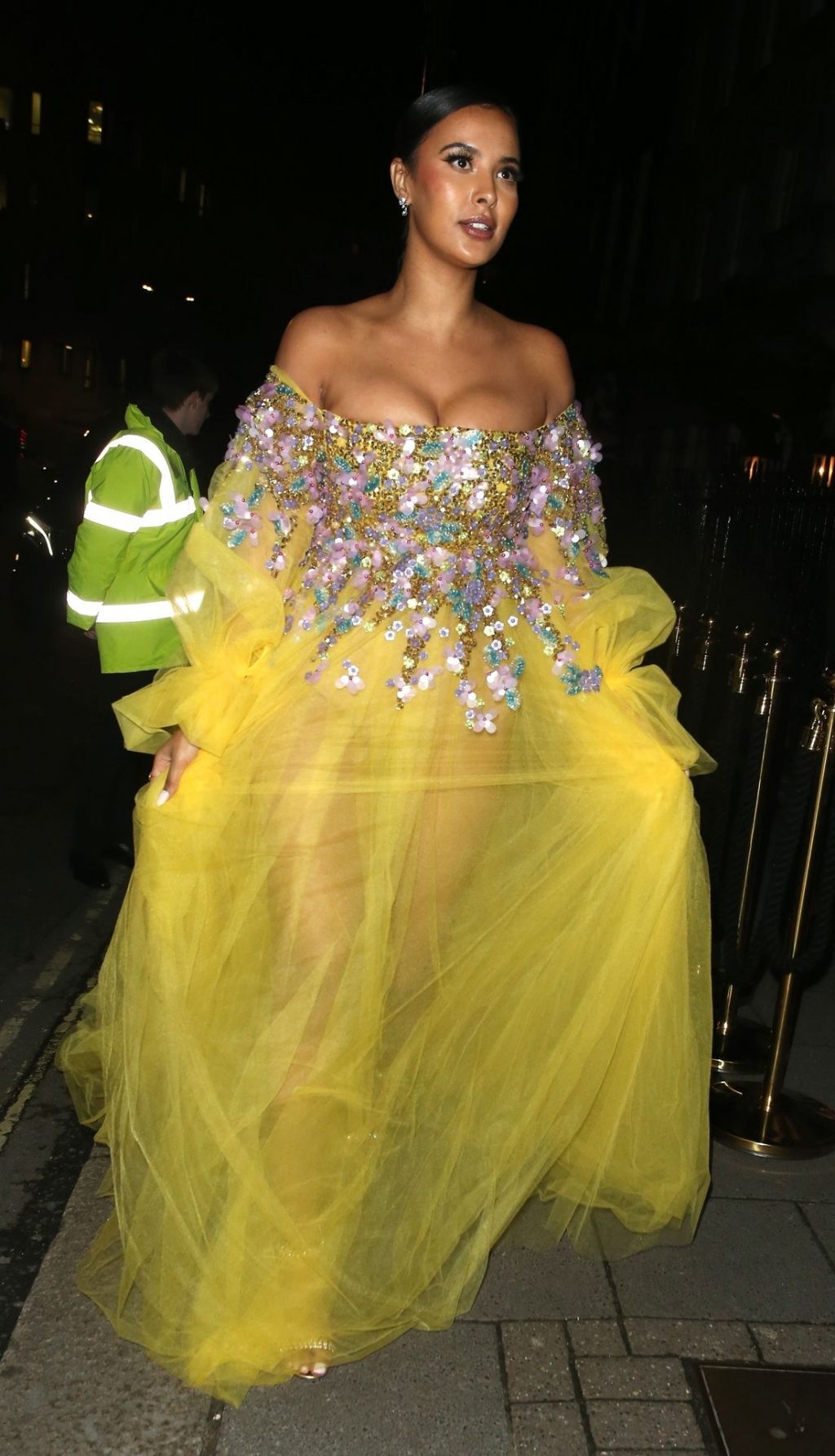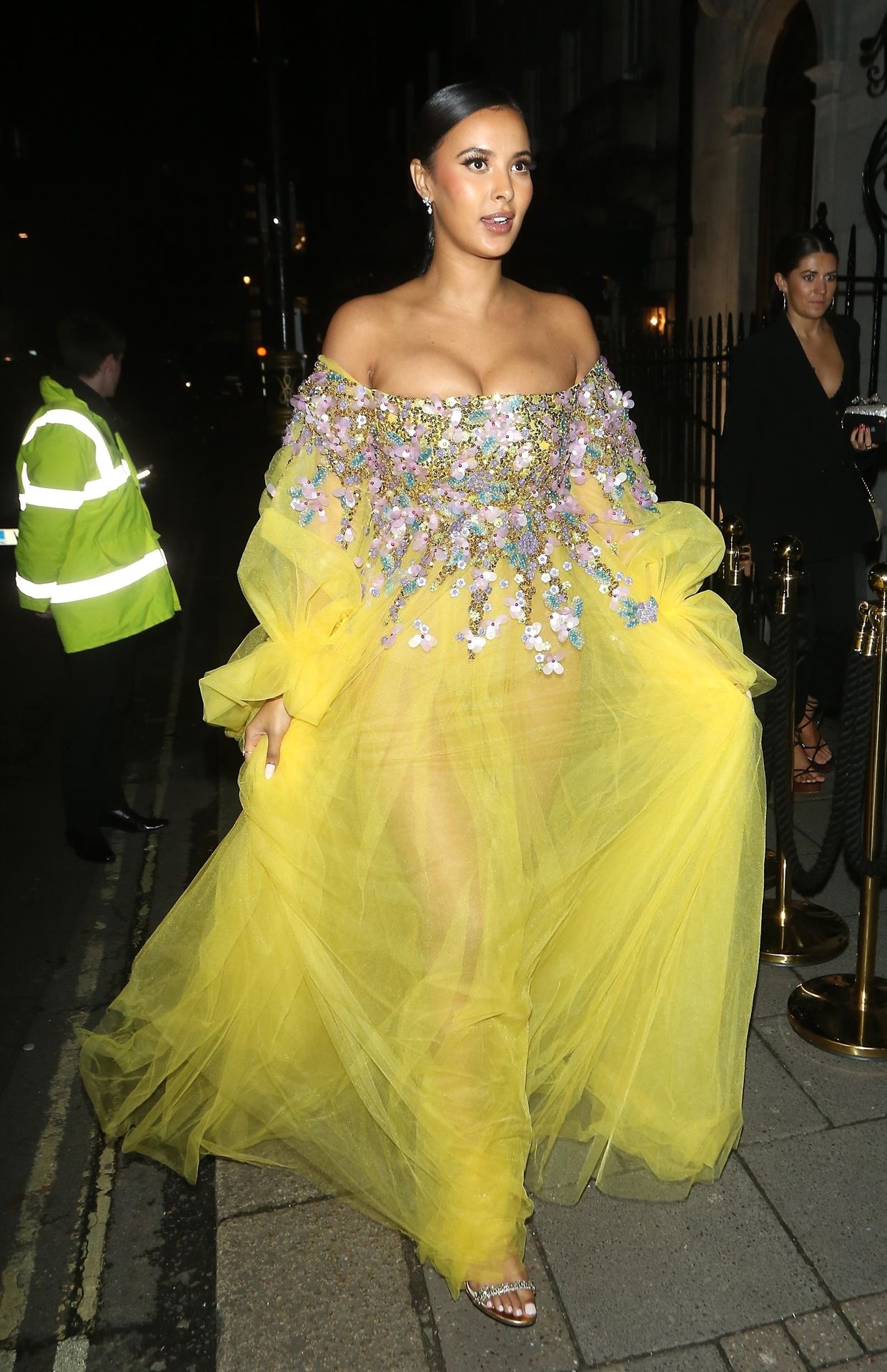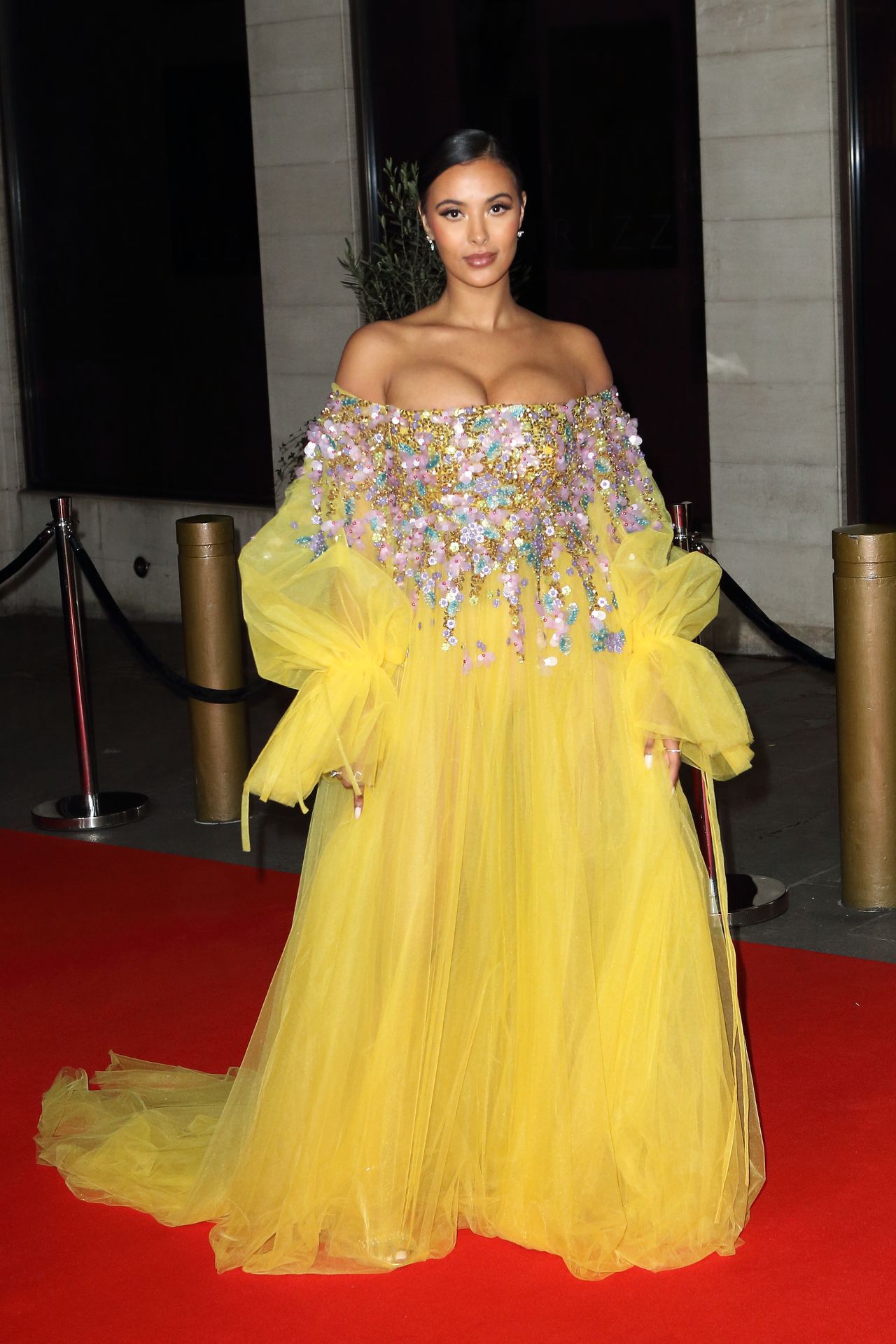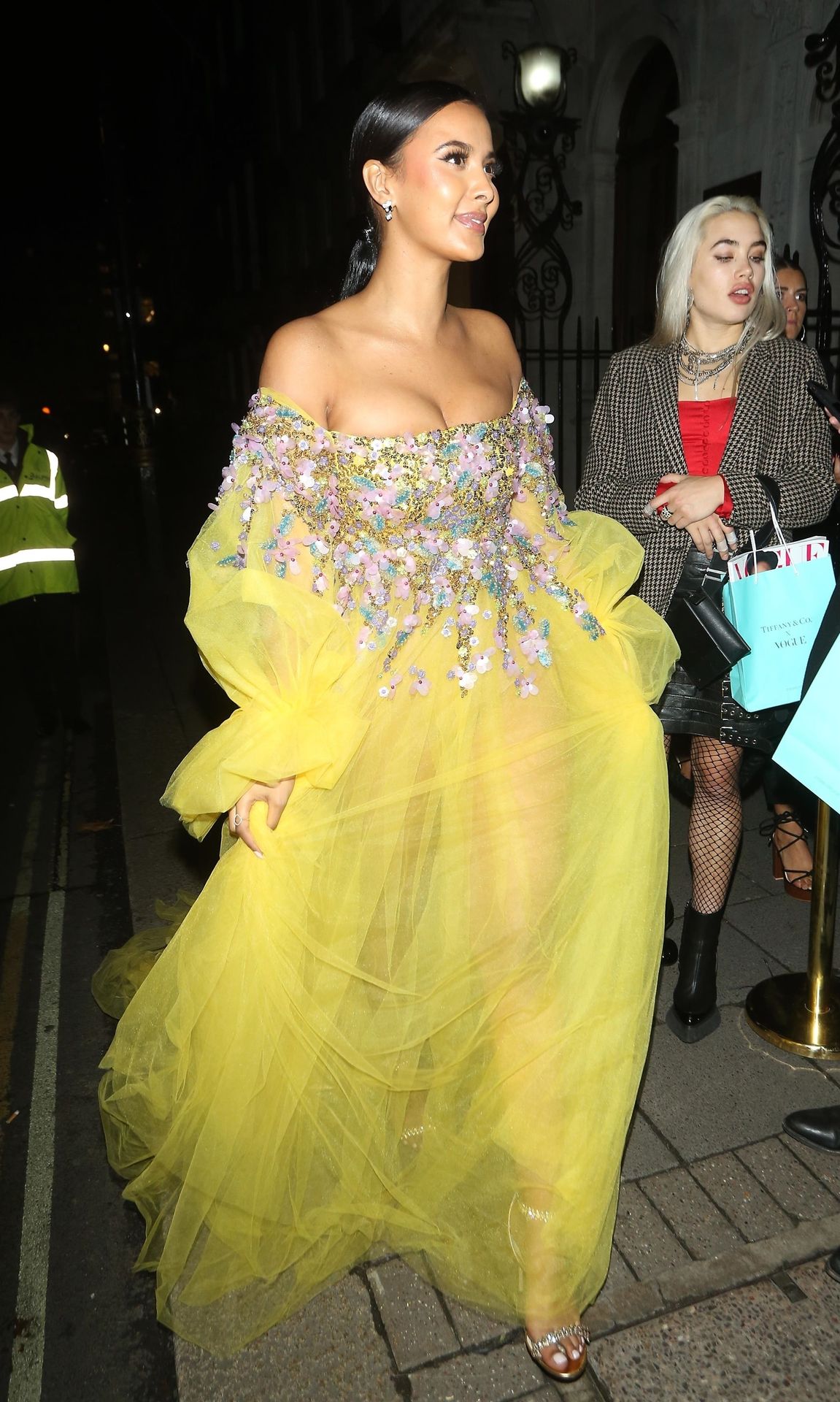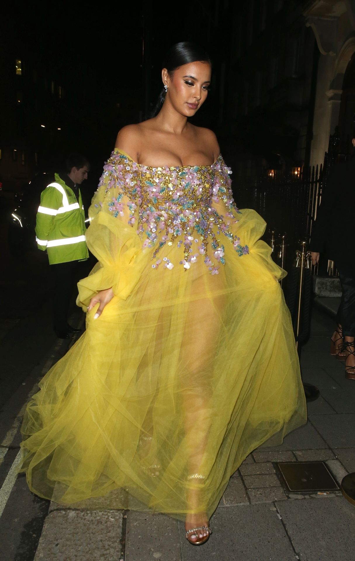 La presentadora de televisión con busto Maya Jama fue fotografiada mientras asistía a la fiesta Celebrate Fashion and Film de British Vogue y Tiffany & Co. en Annabel’s en Londres, 02/02/2020.