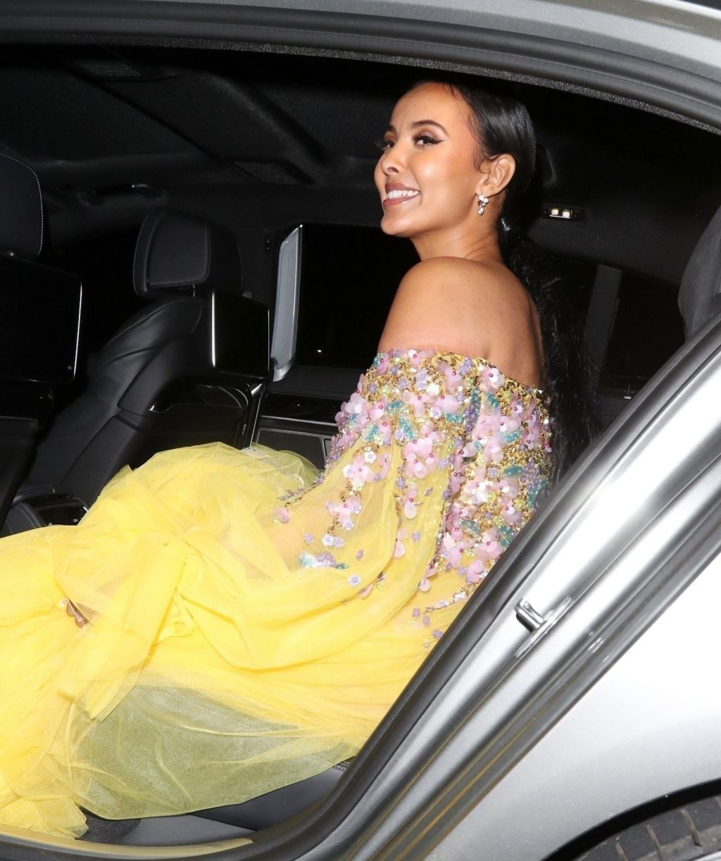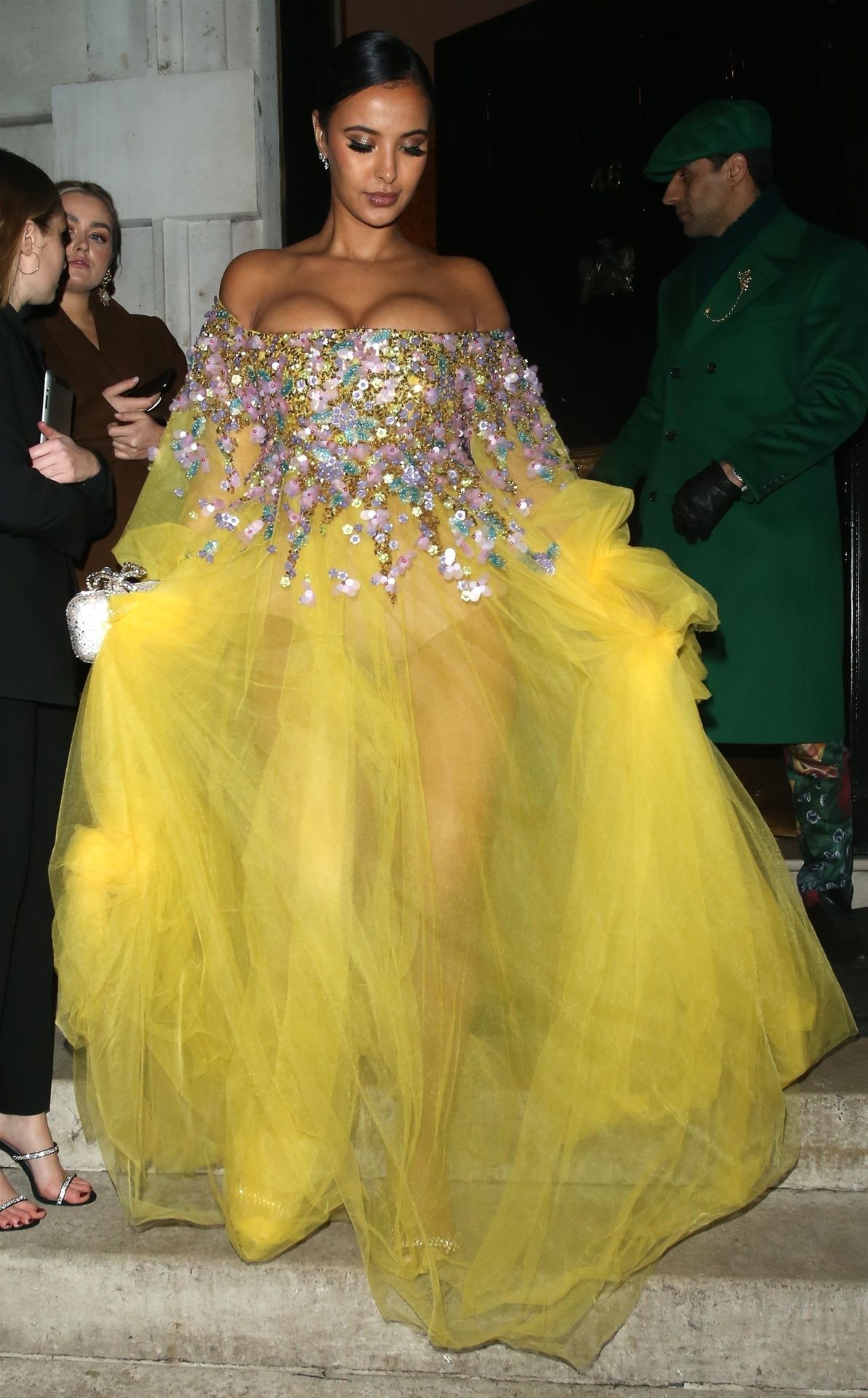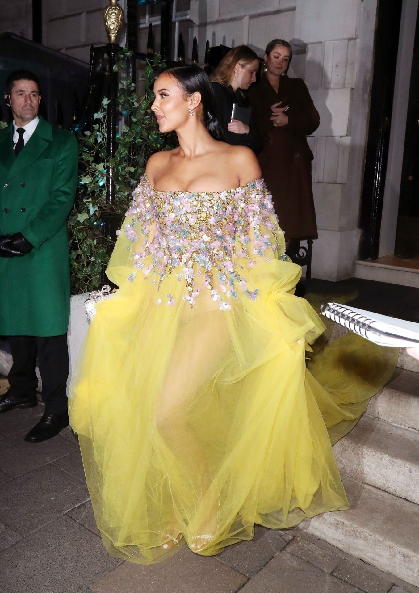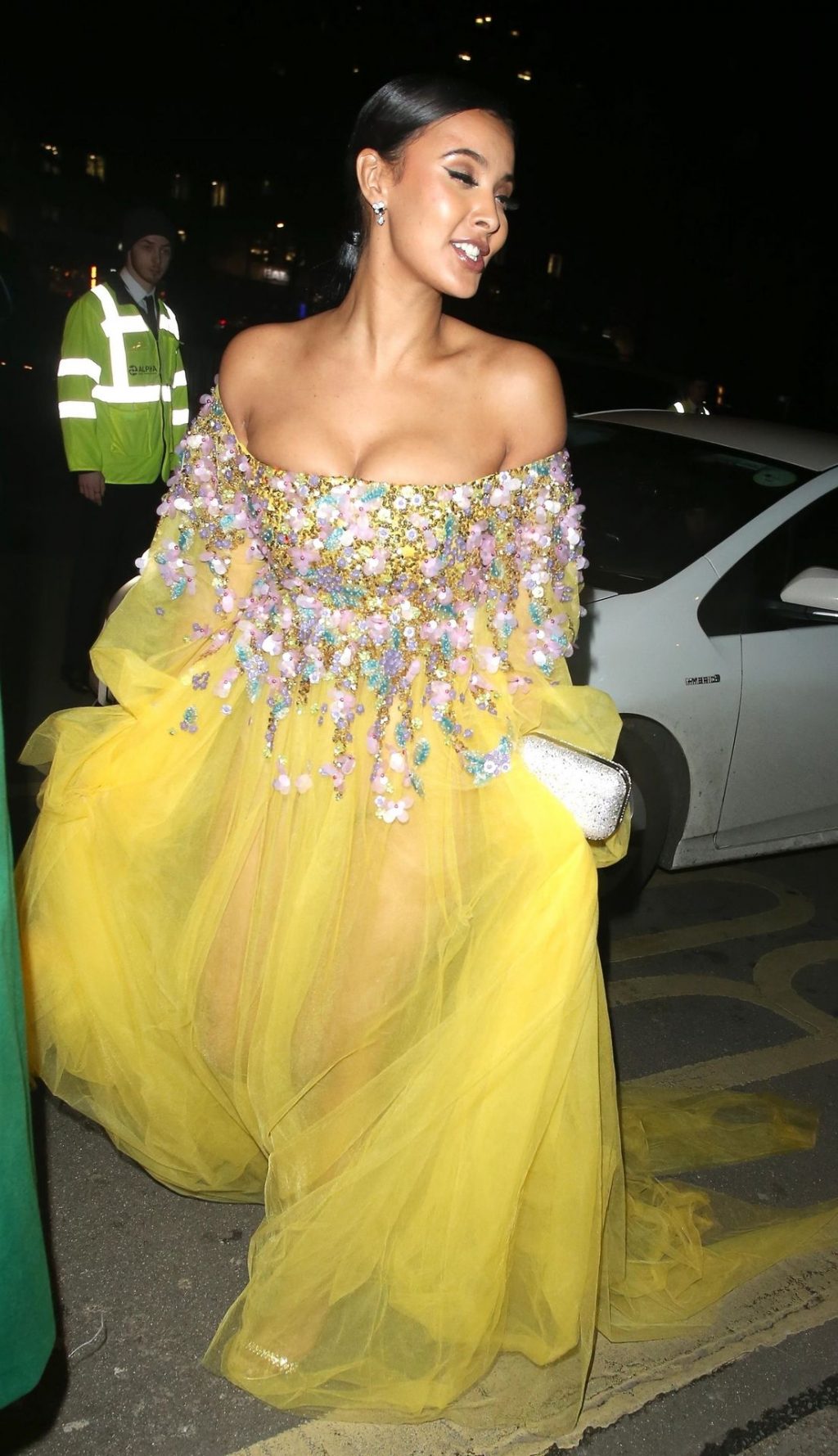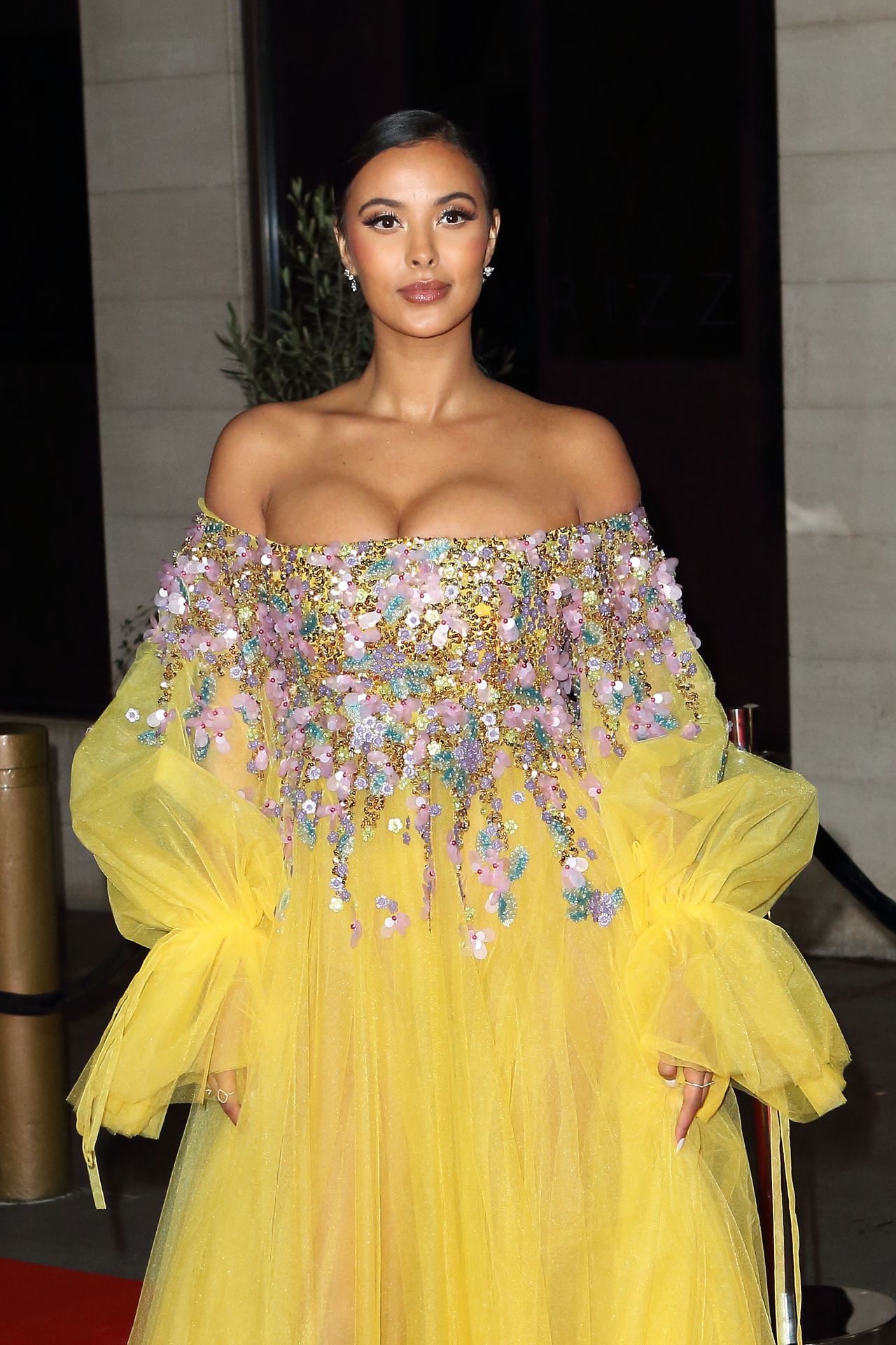 La presentadora de televisión con busto Maya Jama fue fotografiada mientras asistía a la fiesta Celebrate Fashion and Film de British Vogue y Tiffany & Co. en Annabel’s en Londres, 02/02/2020.