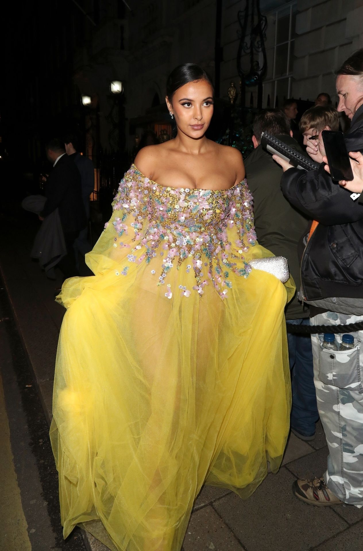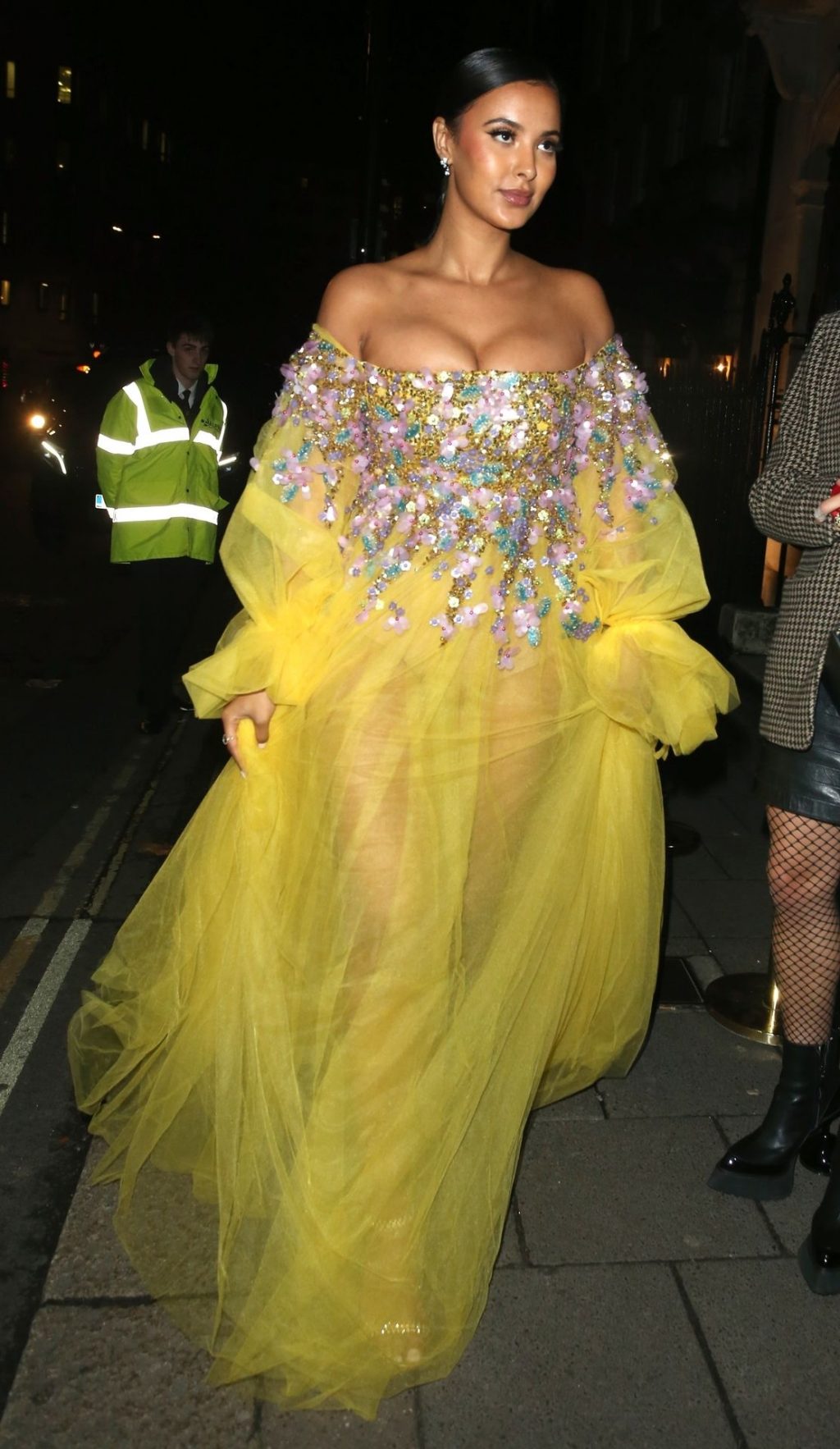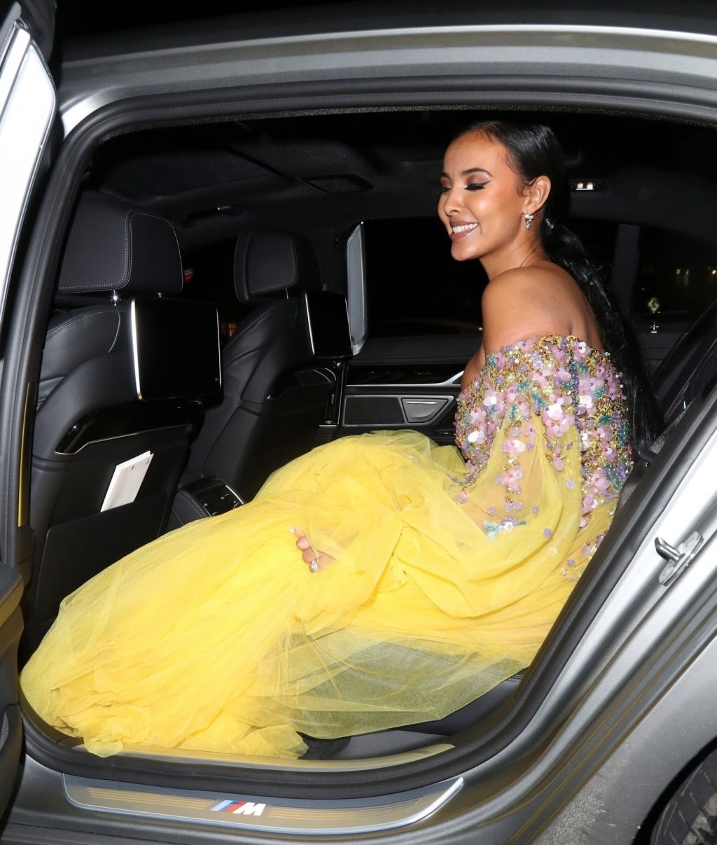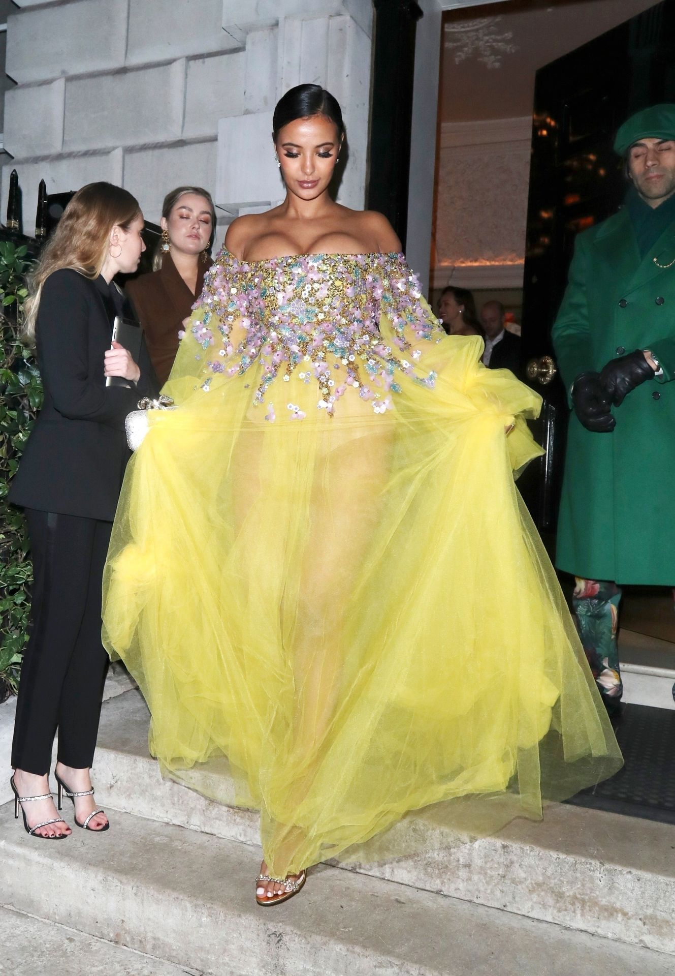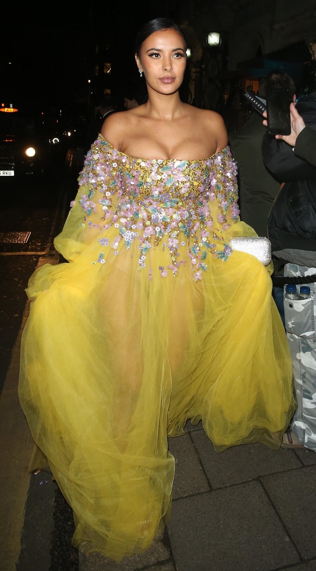 La presentadora de televisión con busto Maya Jama fue fotografiada mientras asistía a la fiesta Celebrate Fashion and Film de British Vogue y Tiffany & Co. en Annabel’s en Londres, 02/02/2020.
